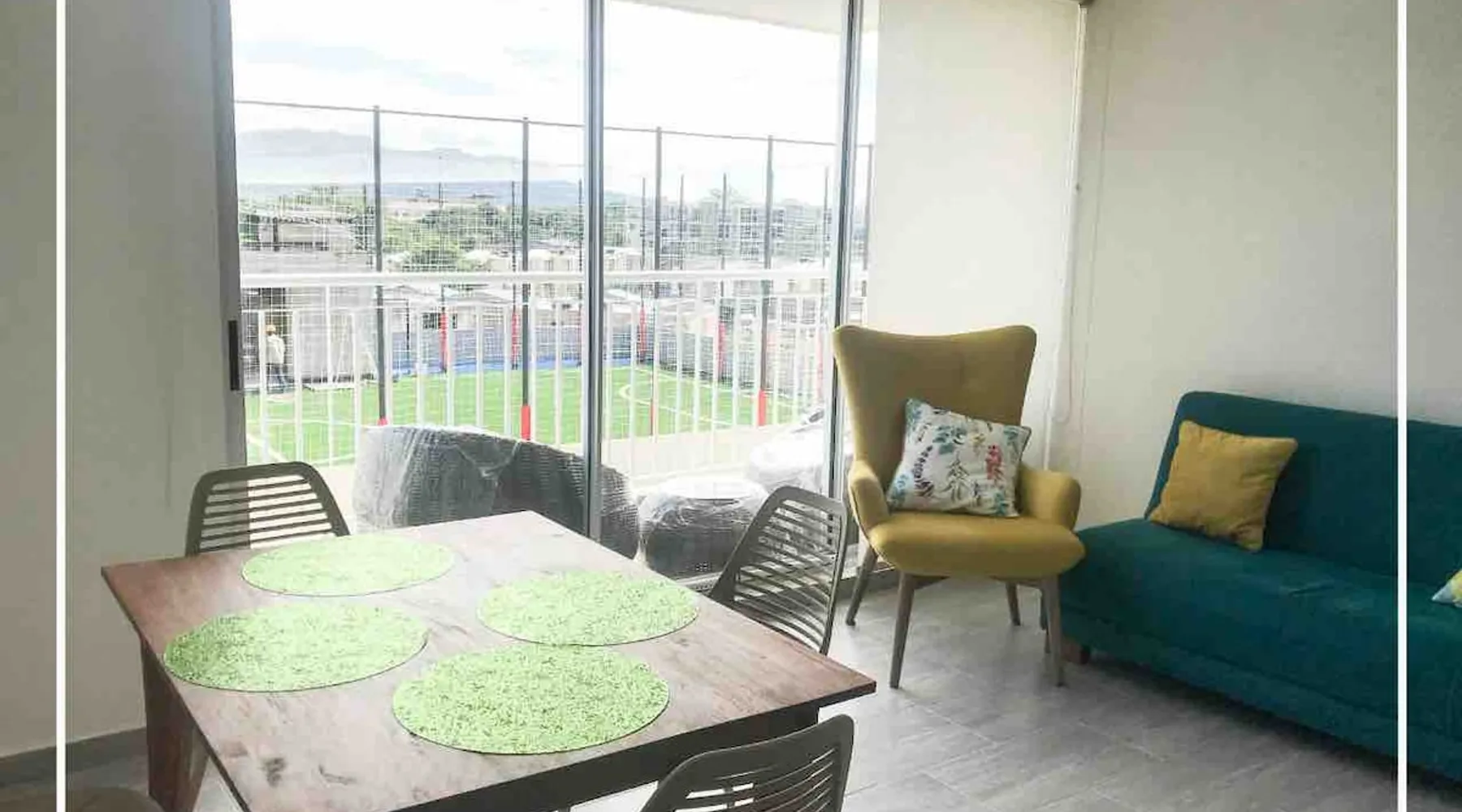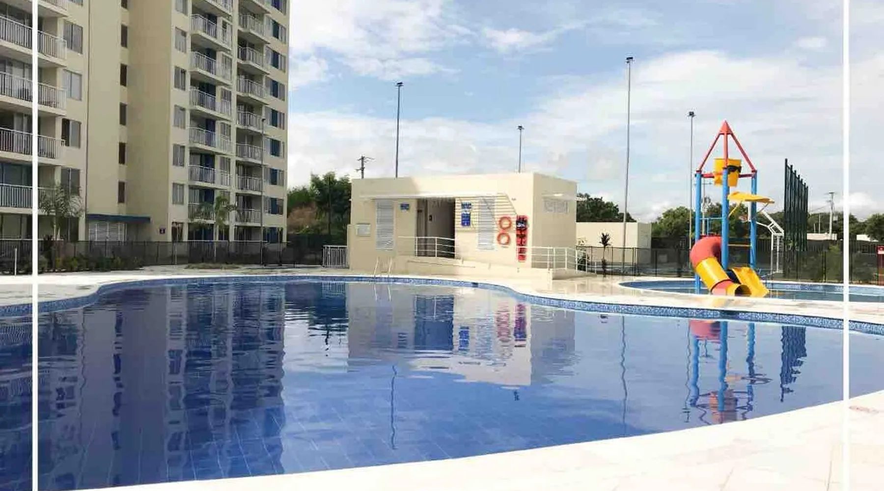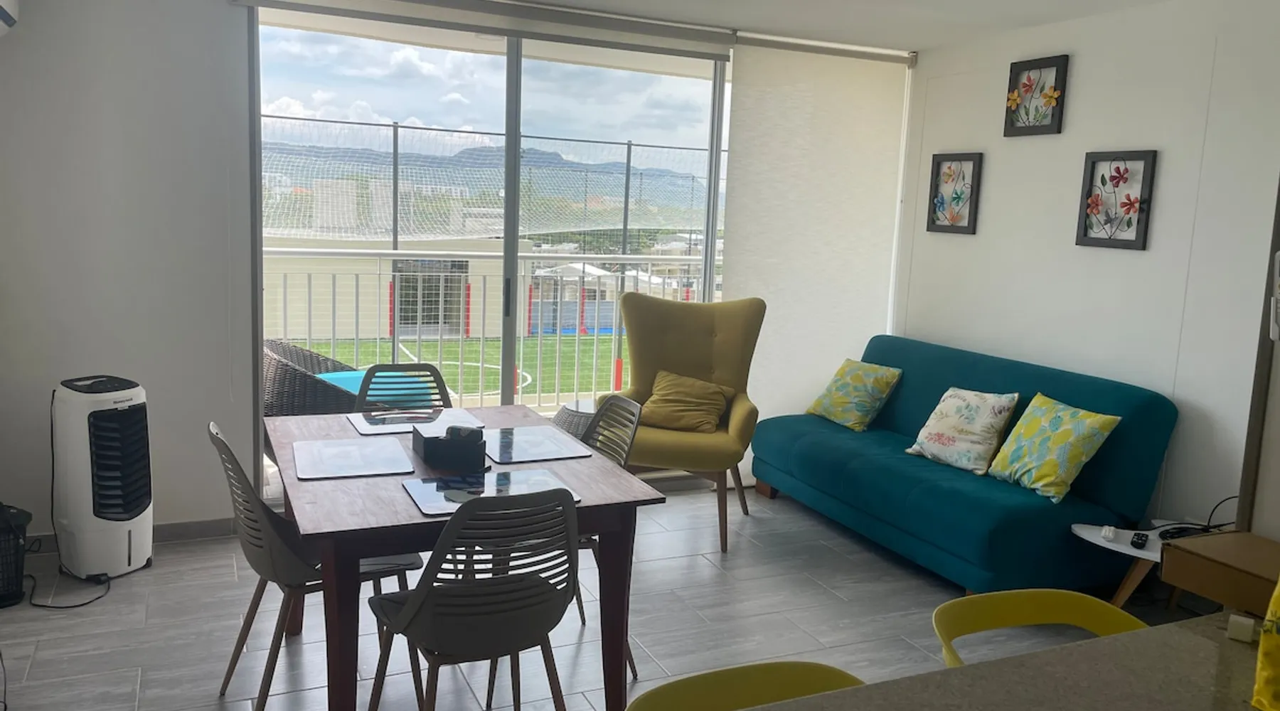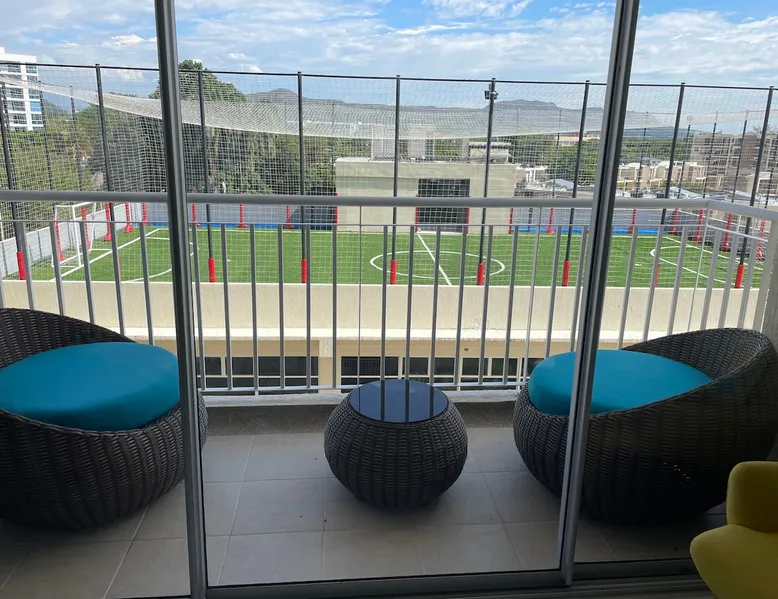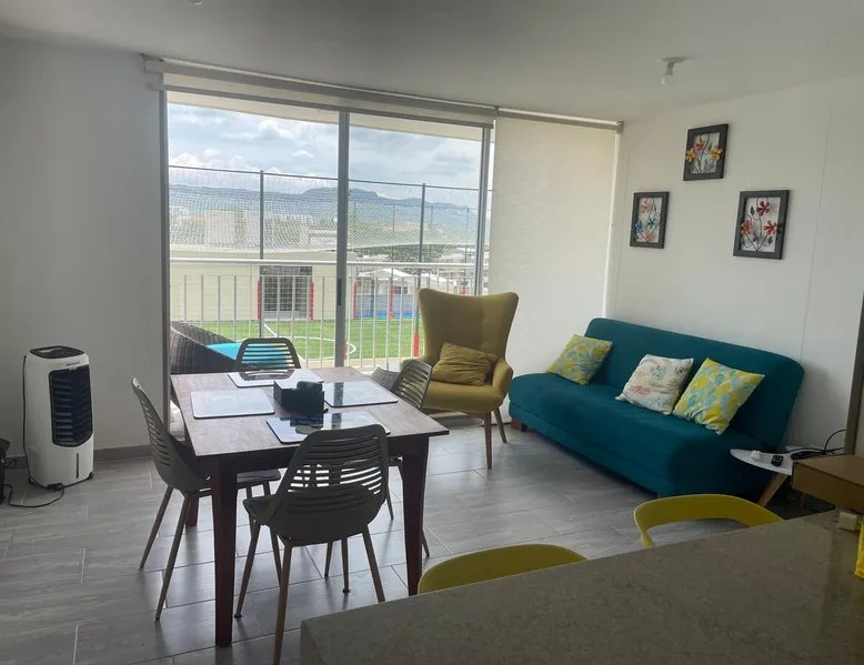 A spectacular apartment ideal for taking a few days off, located in Ricaurte, Cundinamarca. The apartment has 3 bedrooms, 1 sofa bed, 2 bathrooms, a dining room, laundry area and balcony, a kitchen equipped with utensils, a microwave oven, a refrigerator, 2 air conditioners, 3 fans, and 1 room cooler. In the complex you will find 2 swimming pools for adults, 2 for children, a BBQ area, a basketball court, a beach volleyball court, a 5-a-side soccer field, a clubhouse and a gym Registration Details 129044