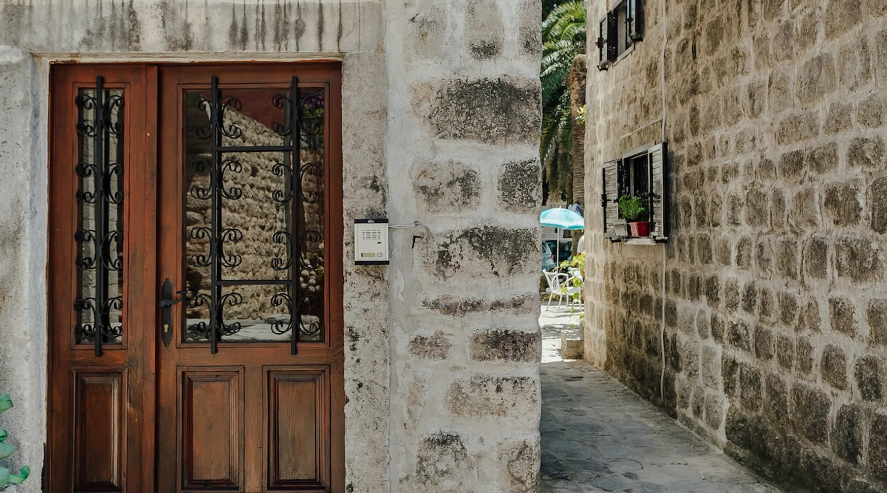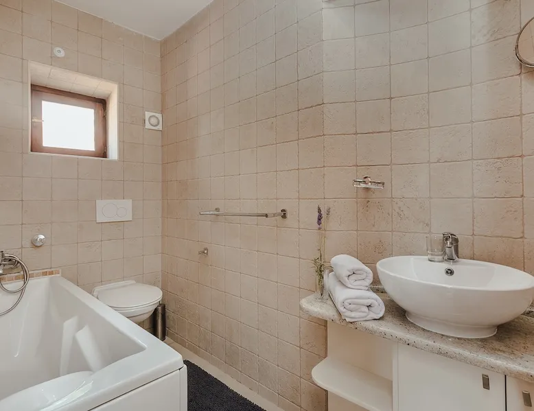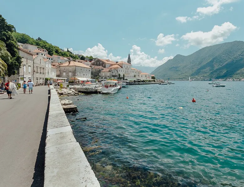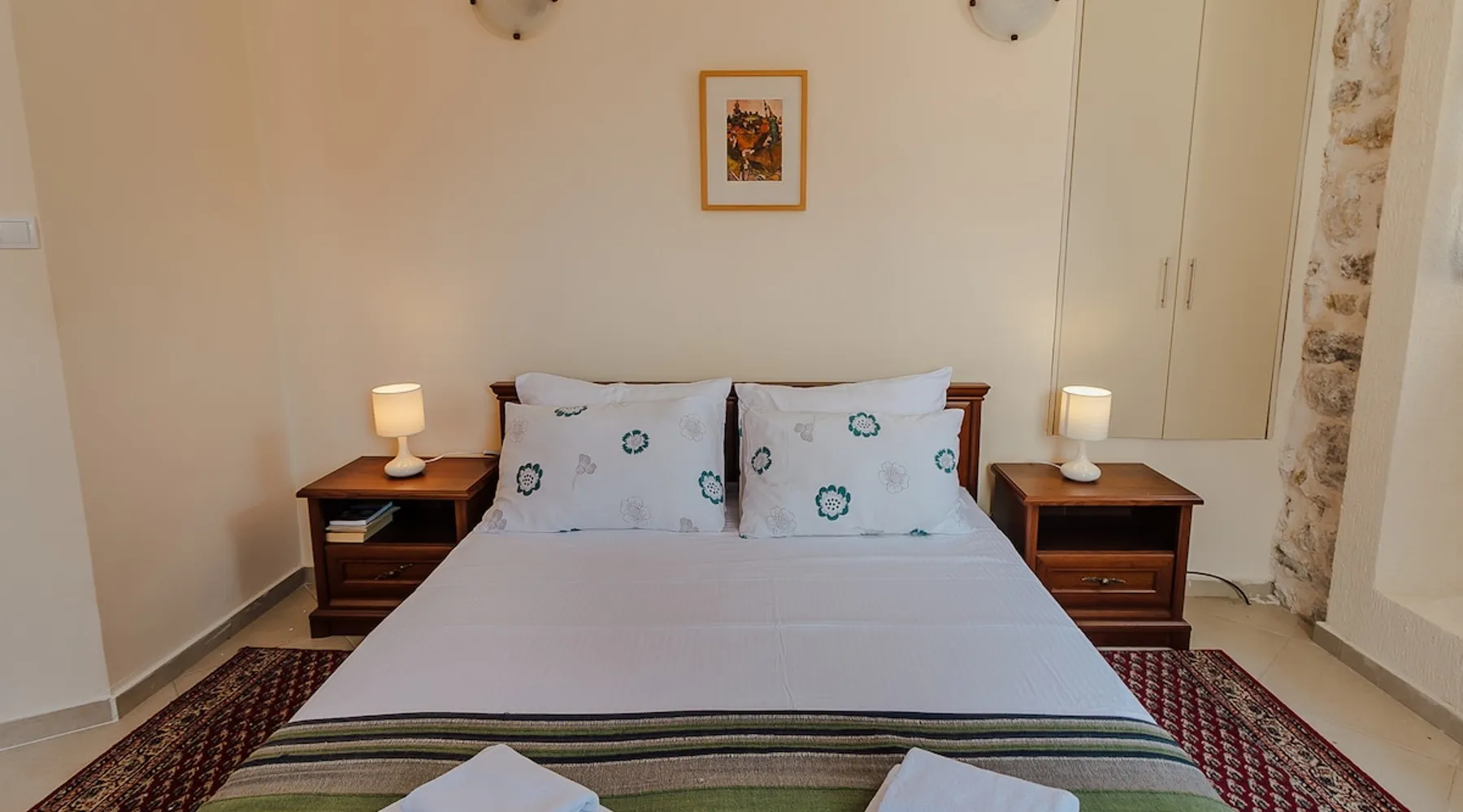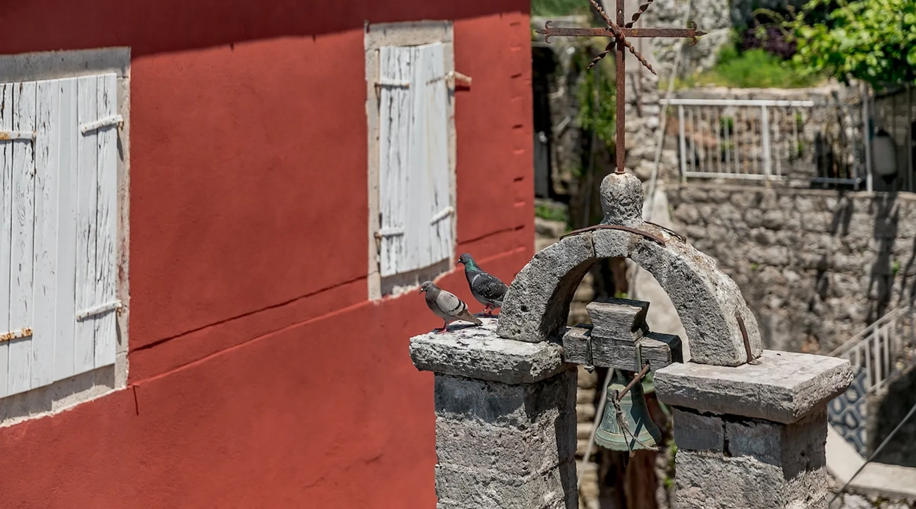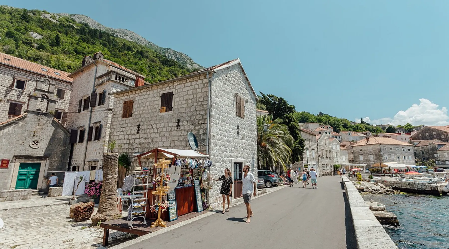 The house which is literally ten steps away from the sea. Inside the spiral staircase leads to the top floor living area, which lead to an open terrace with a view looking directly to the Island ‘lady of the rock’ Public transport: bus service between Kotor and Risan The nearest airport is Tivat in Montenegro (about half hour drive from Perast) There are many restaurants along the Riviera. The space You enter the house from the main town sea Riviera just past the museum building approaching from the Risan parking end. There is a small but famous Orthodox church next to the house. The main entrance door leads into the kitchen and dining area with original stone walls, stone tiled floor with a utility room behind and under the stone steps. This includes a washing machine, dryer, sink unit, and storage for cleaning materials. The kitchen dining area contains a fitted kitchen with hob, oven, dishwasher large integrated fridge freezer and sink set in a polished granite worktop; and dining table with seating for four comfortably but six at a push. Straight ahead are the original stone spiral steps to the first floor with purpose designed alcove with background light. There are two fold away directors’ chairs which can be used to sit outside the house and enjoy the quiet square used by other local residents and shaded with a large palm tree. The square is set down slightly from the Riviera road which gives it a discrete and private feel. From the square three steps takes you to the ponta and sea From the first floor landing is a fully fitted family shower room with stone tile floor and walls which contains shower, wall mounted WC, and granite worktop mounted WHB and vanity cupboard under. Set in the wall is a tall utility cupboard and window. Ahead is the second double bedroom with twin beds with bedside table and lamp. A large fitted cupboard unit containing the hot water boiler for both shower/bathrooms gives ample space for clothes storage. The original stone walls are a quiet backdrop for the period design dressing table chair and mirror. A period Persian rug lies between the twin beds. The spiral staircase continues to the second floor now with a window view of the side of the church and rises into the landing leading directly to the master double bedroom. Within the bedroom access to fully fitted bathroom with stone tiled walls and floor bath/shower, WC and granite worktop mounted WHB and vanity cupboard under. The bedroom contains a period bed with two bedside tables and lamps. The original stone walls are a quiet backdrop for the period design dressing table chair and mirror. Two period Persian rugs lay either side of the bed. The spiral staircase leads to the top floor living area which has maintained the original timber pitched roof and stone walls. The large sliding panoramic glass doors lead to a small stone floor open terrace with stunning view looking directly to the Island ‘lady of the rock’ and famous entrance to the Boka Kotorski Bay. There is an outside weather table and chairs with retractable overhead awning. Interestingly, an external drop-rope and pulley, is available for easy access to the ground kitchen to haul up and down teas and meals and anything else. Within the enclosed living room is a double sofa and two comfortable arm chairs beside an open high level fireplace. A small fridge is installed in the recess under the fireplace. The living room is serviced with internet access and television with many channels available. The area is supported with a good sized table on a period Persian rug All bedrooms, the second floor sitting room, and ground floor are air conditioned and these units can also provide warm air heating as well as the wood burning top floor fireplace. There is an intercom system on each level allowing access to the front door. A child’s cot is available. Guest access whole house is available for occupation Other things to note Parking: Perast has been assigned as a non-drive through zone for years now and only properties with private parking have parking places secured. Tourists and visitors can park at the end of each side of the village. The Risan side that is very close to the house is owned by a Conte Hotel. That is the side guests should park if possible since it is very close to the house. The parking charge is changing every year.