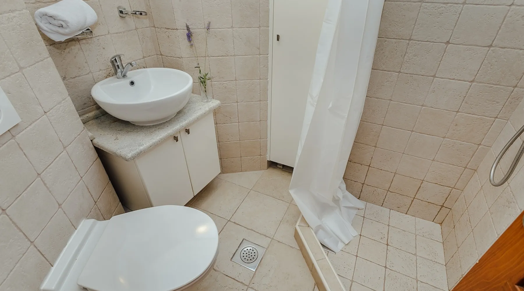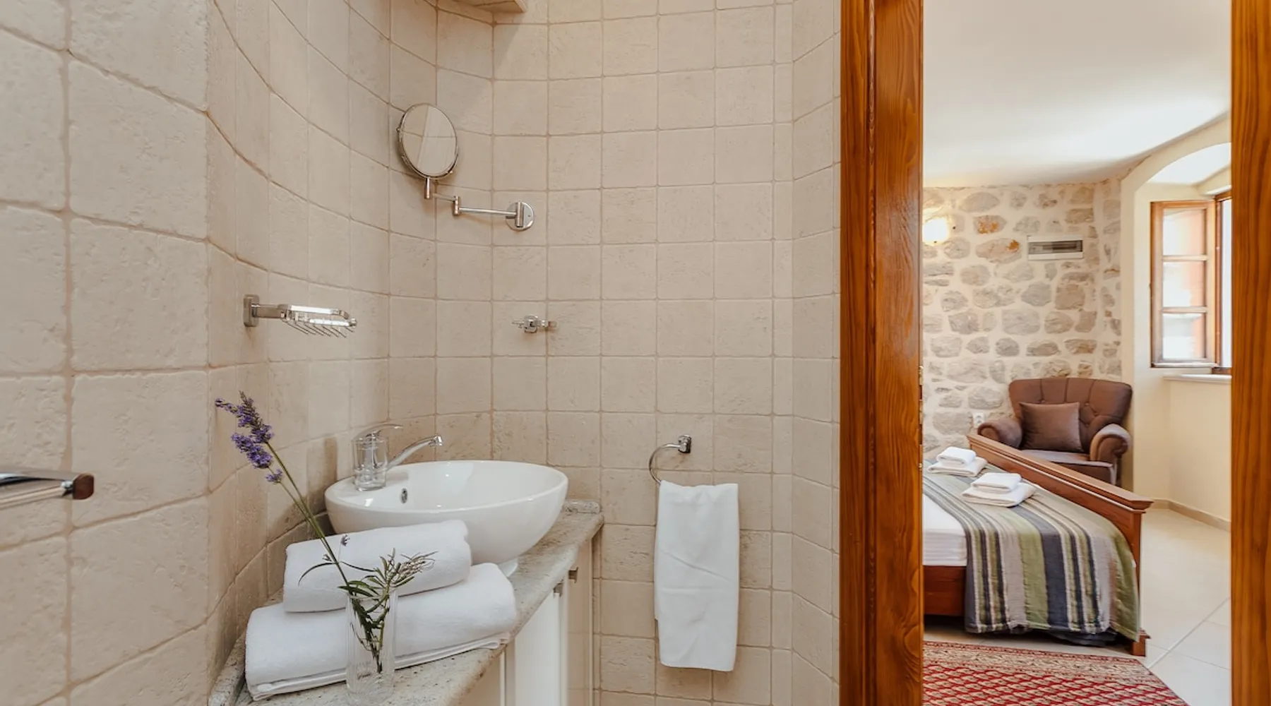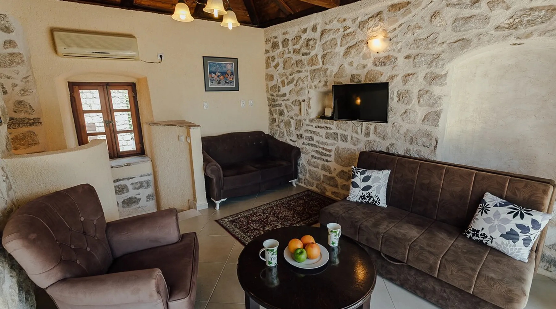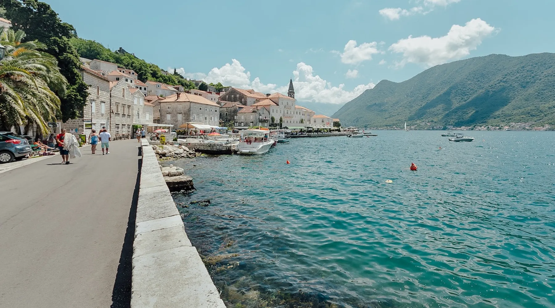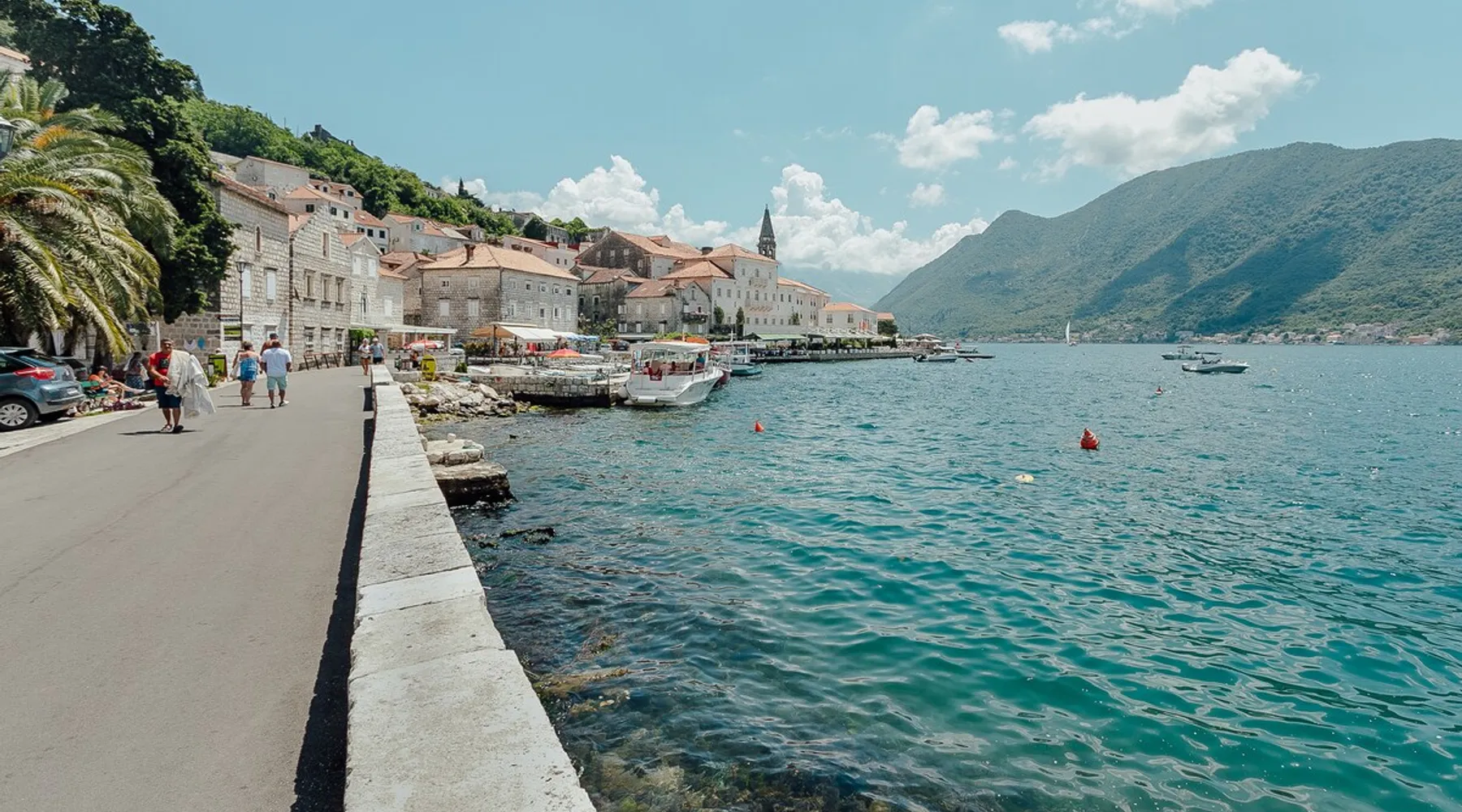 The house which is literally ten steps away from the sea. Inside the spiral staircase leads to the top floor living area, which lead to an open terrace with a view looking directly to the Island ‘lady of the rock’ Public transport: bus service between Kotor and Risan The nearest airport is Tivat in Montenegro (about half hour drive from Perast) There are many restaurants along the Riviera. The space You enter the house from the main town sea Riviera just past the museum building approaching from the Risan parking end. There is a small but famous Orthodox church next to the house. The main entrance door leads into the kitchen and dining area with original stone walls, stone tiled floor with a utility room behind and under the stone steps. This includes a washing machine, dryer, sink unit, and storage for cleaning materials. The kitchen dining area contains a fitted kitchen with hob, oven, dishwasher large integrated fridge freezer and sink set in a polished granite worktop; and dining table with seating for four comfortably but six at a push. Straight ahead are the original stone spiral steps to the first floor with purpose designed alcove with background light. There are two fold away directors’ chairs which can be used to sit outside the house and enjoy the quiet square used by other local residents and shaded with a large palm tree. The square is set down slightly from the Riviera road which gives it a discrete and private feel. From the square three steps takes you to the ponta and sea From the first floor landing is a fully fitted family shower room with stone tile floor and walls which contains shower, wall mounted WC, and granite worktop mounted WHB and vanity cupboard under. Set in the wall is a tall utility cupboard and window. Ahead is the second double bedroom with twin beds with bedside table and lamp. A large fitted cupboard unit containing the hot water boiler for both shower/bathrooms gives ample space for clothes storage. The original stone walls are a quiet backdrop for the period design dressing table chair and mirror. A period Persian rug lies between the twin beds. The spiral staircase continues to the second floor now with a window view of the side of the church and rises into the landing leading directly to the master double bedroom. Within the bedroom access to fully fitted bathroom with stone tiled walls and floor bath/shower, WC and granite worktop mounted WHB and vanity cupboard under. The bedroom contains a period bed with two bedside tables and lamps. The original stone walls are a quiet backdrop for the period design dressing table chair and mirror. Two period Persian rugs lay either side of the bed. The spiral staircase leads to the top floor living area which has maintained the original timber pitched roof and stone walls. The large sliding panoramic glass doors lead to a small stone floor open terrace with stunning view looking directly to the Island ‘lady of the rock’ and famous entrance to the Boka Kotorski Bay. There is an outside weather table and chairs with retractable overhead awning. Interestingly, an external drop-rope and pulley, is available for easy access to the ground kitchen to haul up and down teas and meals and anything else. Within the enclosed living room is a double sofa and two comfortable arm chairs beside an open high level fireplace. A small fridge is installed in the recess under the fireplace. The living room is serviced with internet access and television with many channels available. The area is supported with a good sized table on a period Persian rug All bedrooms, the second floor sitting room, and ground floor are air conditioned and these units can also provide warm air heating as well as the wood burning top floor fireplace. There is an intercom system on each level allowing access to the front door. A child’s cot is available. Guest access whole house is available for occupation Other things to note Parking: Perast has been assigned as a non-drive through zone for years now and only properties with private parking have parking places secured. Tourists and visitors can park at the end of each side of the village. The Risan side that is very close to the house is owned by a Conte Hotel. That is the side guests should park if possible since it is very close to the house. The parking charge is changing every year.