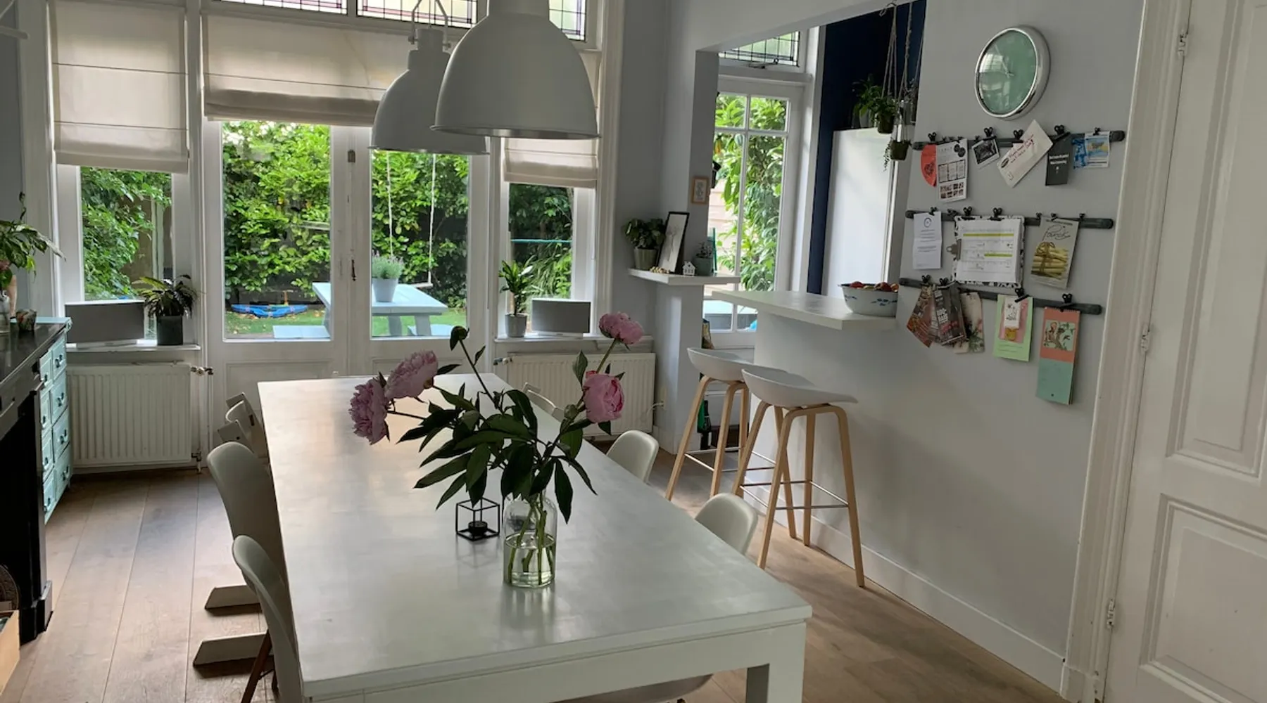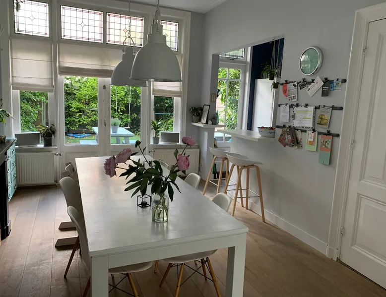 The space Nice family house situated just a 1,5 km walk of the centre of Haarlem and 8 km from the beaches. The house is perfect for families - it has 4 bedrooms: a master bedroom and three rooms in which kids will feel at home easily. Alternatively, it can accommodate four adults and four/five kids at a time. Groundfloor: -Living room with sofa and dining area. Large table with 3 childseats (stokke). -Fully equiped kitchen (oven, dishwasher, nespresso coffee machine) -Hall with toilet -Entrance to garden (38 m2). The garden has a sofa, toys to play and a small sandpit. First floor: -Master bedroom with double bed (2.00 x 1.80) and television. -Big bedroom with single bed (2.00 x 90) and pull-out guestbed (1.90 x 80). -Bathroom with toilet and shower Second floor: -Bedroom with cute house-style bunkbed -Bedroom with childbed (1.50 x 70) and sleeping sofa (1.80 x 1.20) -Bathroom with bath and toilet -Small room with Washingmachine and dryer -Stairways to the roofterrace Roofterrace -Fantastic view of Haarlem (Bavo Cathedral and big Church) -BBQ -Lounge sofa and dining possibility There is cable television, free wifi and a sonos systeem to play your favourite music. Guest access Guest have full access to the entire house, except for a small room in which we will store belongings to provide you more space in the other rooms. Bed linen and towels are available. Extra child cod also available. Registration Details 0392 5825 7CDA 3F63 CA8A