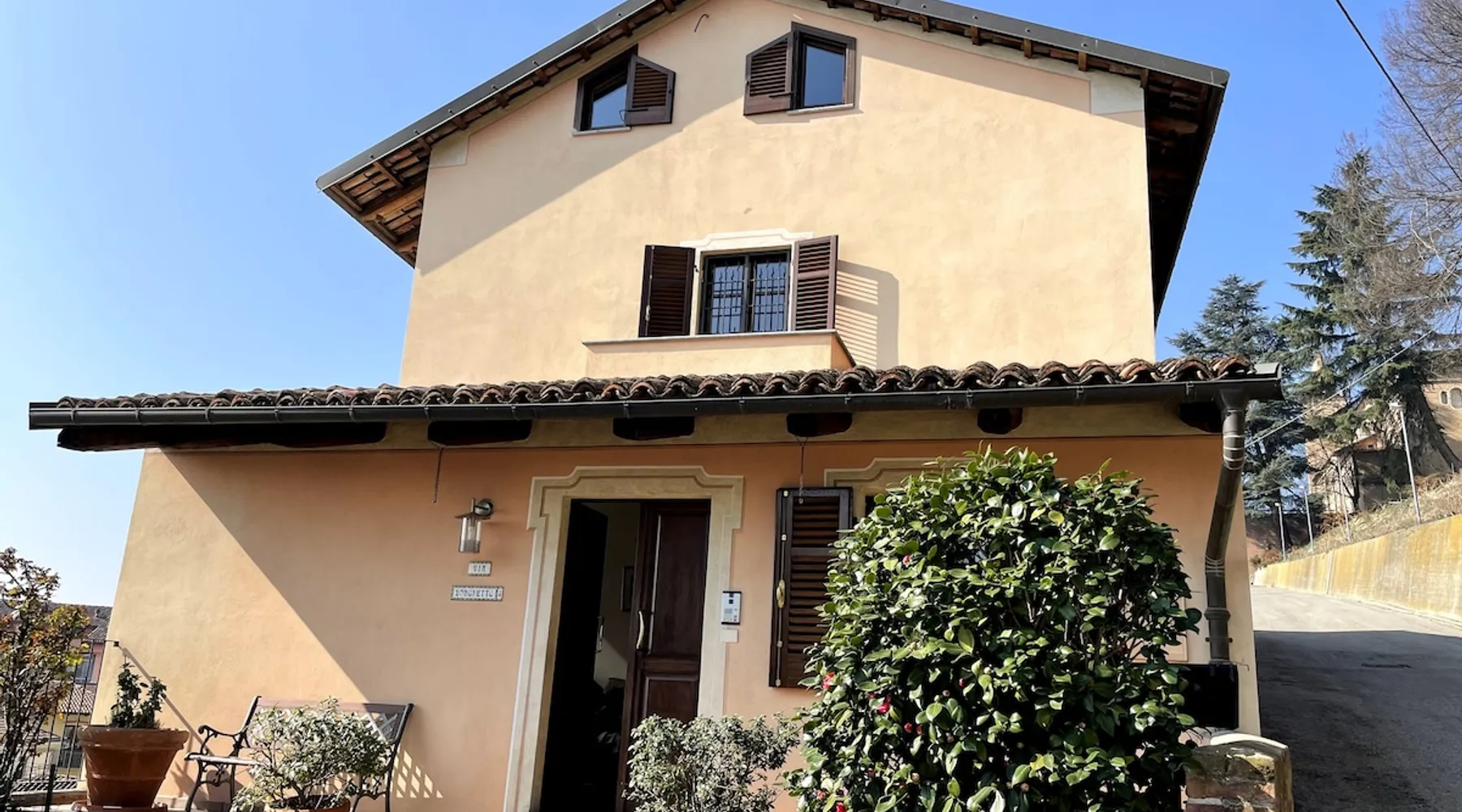 It was the first elementary school in Monticello, the home of Maestra Bice, a house full of history. The house has 3 bedrooms with double bed and each its own private bathroom (whirlpool tub and whirlpool shower) and balconies with wonderful views of the Langhe and the Alps. The house includes a well equipped kitchen with the possibility to dine or have breakfast on the patio terrace. It is 9 km from Alba and 8 from Bra (no public transport), everything is close by car. The space We would like to point out that the house is in complete use by Airbnb guests. There is also a room at the entrance set up as an at-home office, for the business person! Also, there is a private spa and a small swimming pool 100 m from our house (they require reservation and payment). Information on specific requests. Guest access Private parking for up to two cars is provided in front of the house. The upper village is not served by public transport so it is necessary to travel by car at least as far as the Borgo (the lower village) where a bus connects with Alba. Other things to note For the moment, our municipality does not require the payment of the tourist tax ;) This house adheres to the project Love Sustainability Registration Details IT004142C2BY6TCVR2