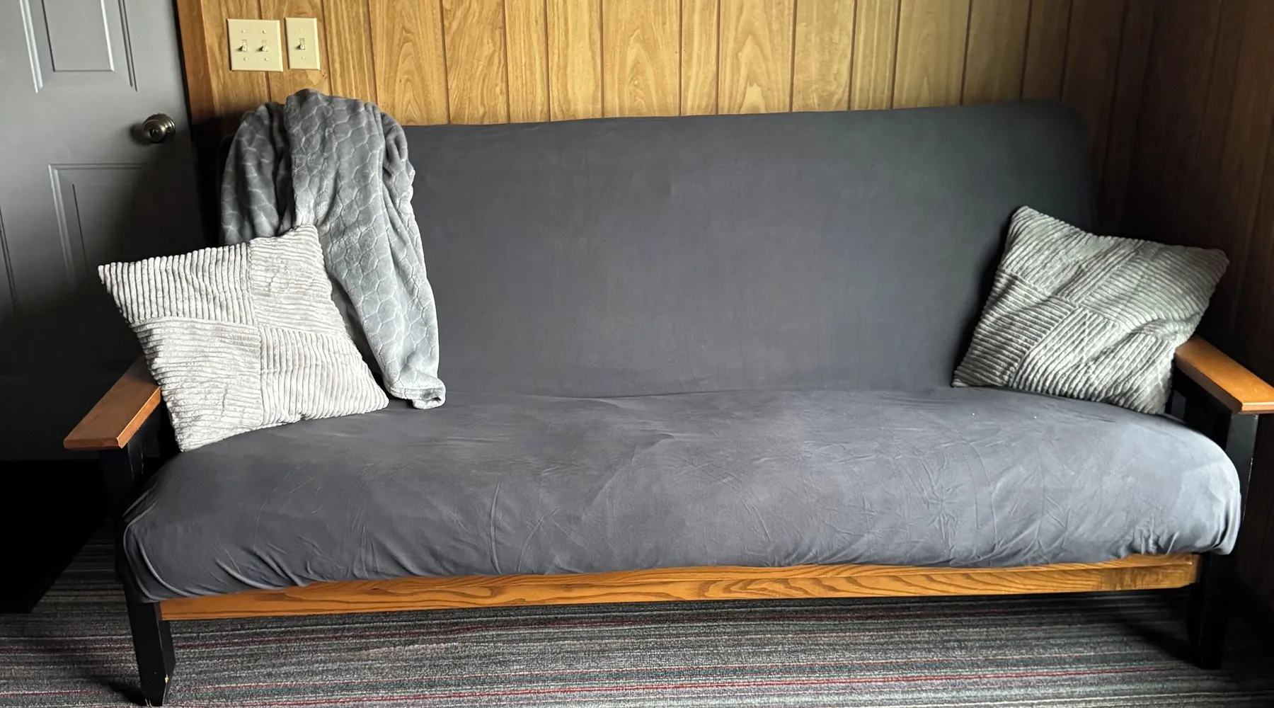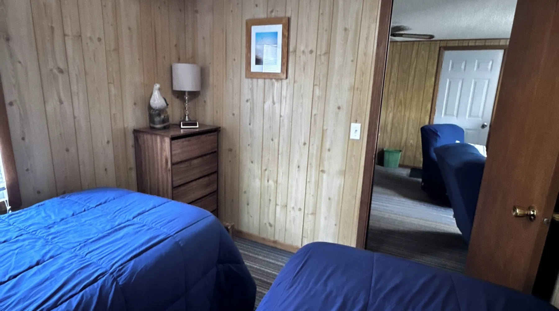It's all in the details...Nostalgic beach decor throughout this 2 bedroom 1 bath cabin on the beach fully furnished for your next getaway! Yes it really is just outside your window! King size plush pillow top bed in one room over looking the beach and 2 single beds in the other. Living room windows (and bedroom window) overlook the lake with clean beach about 2 feet beyond the window. Brand new windows throughout entire cabin. Lake breezes fill the cabin when you open up the windows. Central air and gas furnace, bathroom includes toilet/sink/shower and contains all towels. Full kitchen with blender, electric skillet, toaster, microwave, coffee pot, refrigerator, oven/stove, pots/pans and dishes. Iron and ironing board provided. Seating for 4 in kitchen, as well as additional dining room table with 4 chairs. Home away from home. Twelve foot gazebo has electricity so you can stay up in the evening enjoying the breeze and playing games without the bugs. (Table and 8 chairs in gazebo). Fire pit also on property with plenty of fire wood. Over 200 feet of dock for your enjoyment all summer long! WIFI available if you choose, or else unplug and get away!