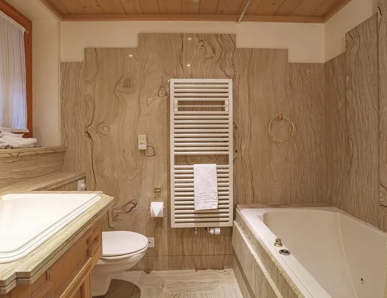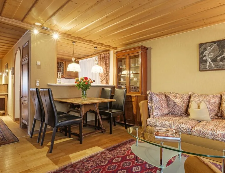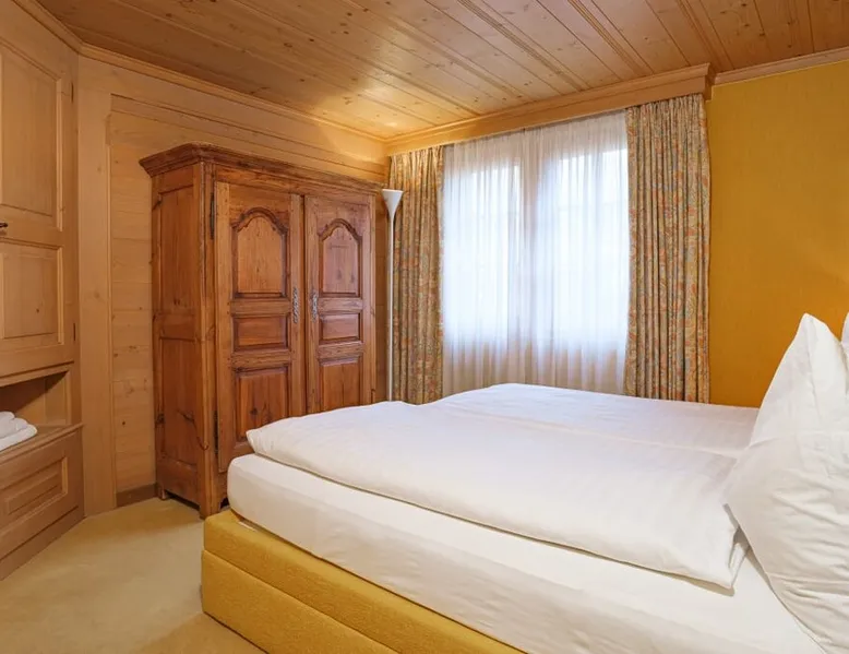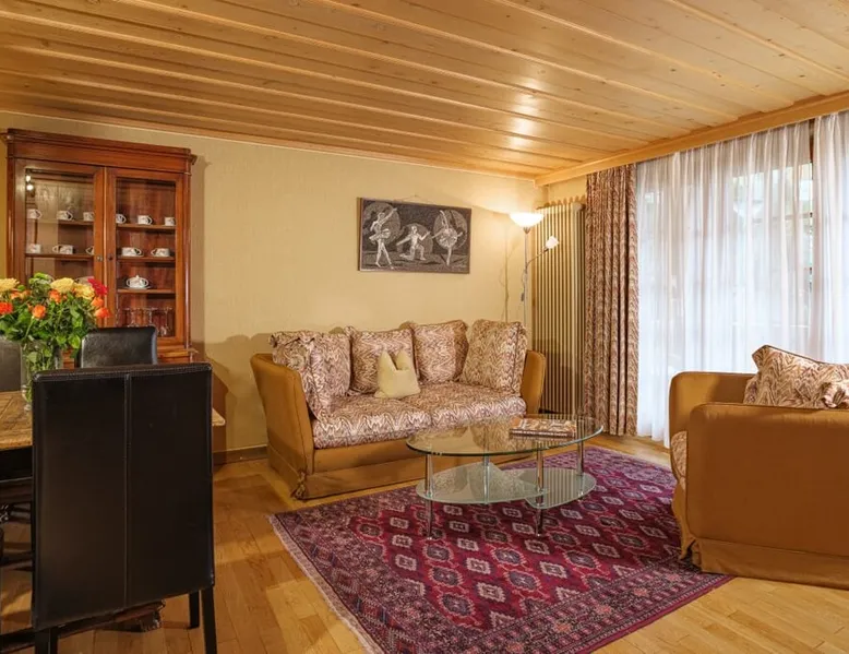 Located on the first floor of Chalet Kisseye, the 2 bedroom Apartment Alpenrose offers modern comfort and stunning views of the Matterhorn. With space to accommodate up to four guests, this apartment is perfect for a relaxing alpine getaway. The bedrooms are furnished for two people. In one bedroom there is a king size double bed (180x200 cm), in the other there is a queen size double bed (160x200 cm). Bed linen is provided for both bedrooms. There are two bathrooms in the apartment. One bathro The space Comfortable 2 bedroom apartment for 4 persons. There is one marble bathroom with a whirlpool and one bathroom with shower/WC. The fireplace gives the living room a cosy atmosphere with cable TV and free WIFI. In addition, you can enjoy a wonderful view of the Matterhorn from the balcony. The kitchen with glass ceramic hob, oven, dishwasher, refrigerator with freezer, kettle, "Delizio" capsule coffee machine, toaster and fondue leaves nothing to be desired. For the first rental day a starter set with garbage bag, coffee capsules, soap and shampoo is provided. 1 King Size Bed 180 x 200 cm 1 Queen Size Bed 160 x 200 cm Cot and high chair on request Bed and bath linen are provided Free WIFI Fondue Balcony with garden furniture Matterhorn view Fireplace The unique Chalet Kisseye is located in a quiet, elevated situation in the Steinmatte district about 10 minutes from the village center with its bars, shops and restaurants. The bus stop for the red line is just a 3-minute walk from the house and you can take the bus into the village center or to the ski lifts from there. Coming from the bus stop or street, you can reach the house vis a small steep pathway that is only accessible on foot. Chalet Kisseye has a heated ski room. All apartments are non-smoking, and pets are not allowed.