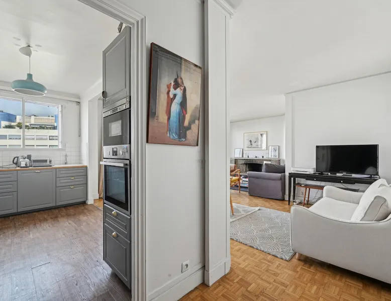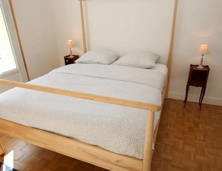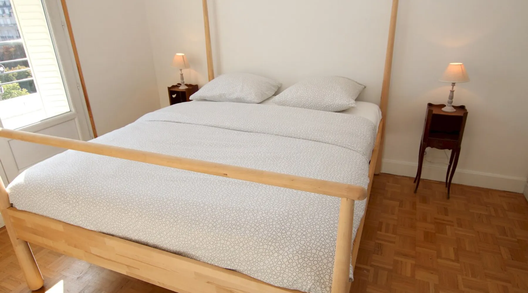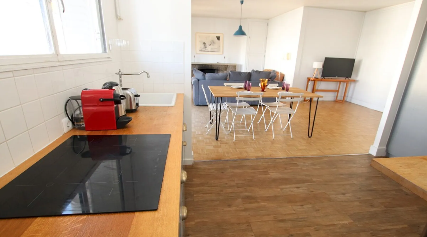 Composition: kitchen, 2x bedroom, bathroom, WC, living room Amenities: iron & ironing board, 3x bed linen & towels, 2x washing machine, dishwasher,... The space This 93 sqm unit is perfect for a big family wishing to spend a comfortable tourist or business stay. The spacious living room is bathed in sunlight and features a sofa, a large flat TV screen, and a coffee table, creating a cozy and relaxing atmosphere. The dining area is conveniently located near an open gallery type fully equipped kitchen, allowing for easy meal preparation and enjoyable dining experiences. The two bedrooms are designed with the utmost comfort in mind, offering a double bed with a comfortable mattress for a restful night's sleep. Additionally, the bedroom includes a well-appointed bathroom for your convenience. In terms of accommodation suitability, this unit is ideal for couples, whether they are traveling alone or with young children. The well-designed layout and amenities ensure a comfortable and enjoyable stay, catering to the needs of both adults and little ones. One of the highlights of the apartment is its opening to a balcony, providing a refreshing outdoor space where you can enjoy the surrounding views and a breath of fresh air. Other things to note The check-in assistant will meet the guests at the property on the day of their arrival. In exchange for the keys, guests are required to pay the check-in fee in cash. 3PM to 10PM - 35€ 10PM to 12AM - 60€ (upon request) ## Services Tailoring each visit to our guest’s needs, our mission is to make your stay unique and memorable, and to give you the best possible experience. Our team will be happy to help you with any specific requests or additional service. Registration Details Available with a mobility lease only ("bail mobilité")