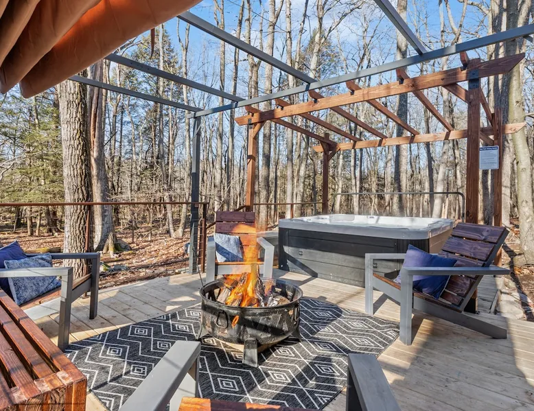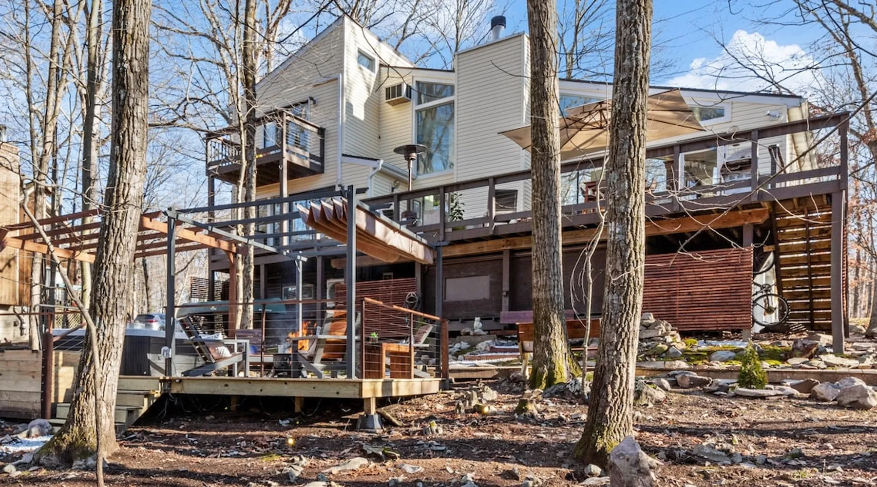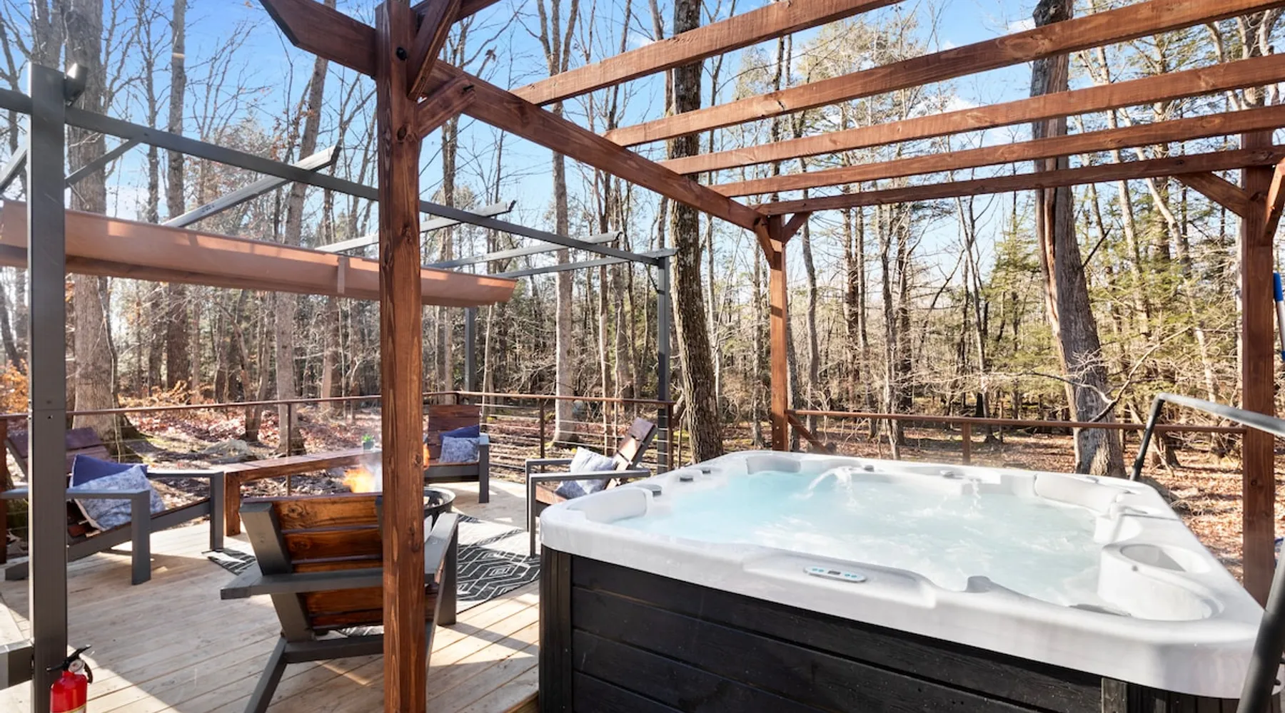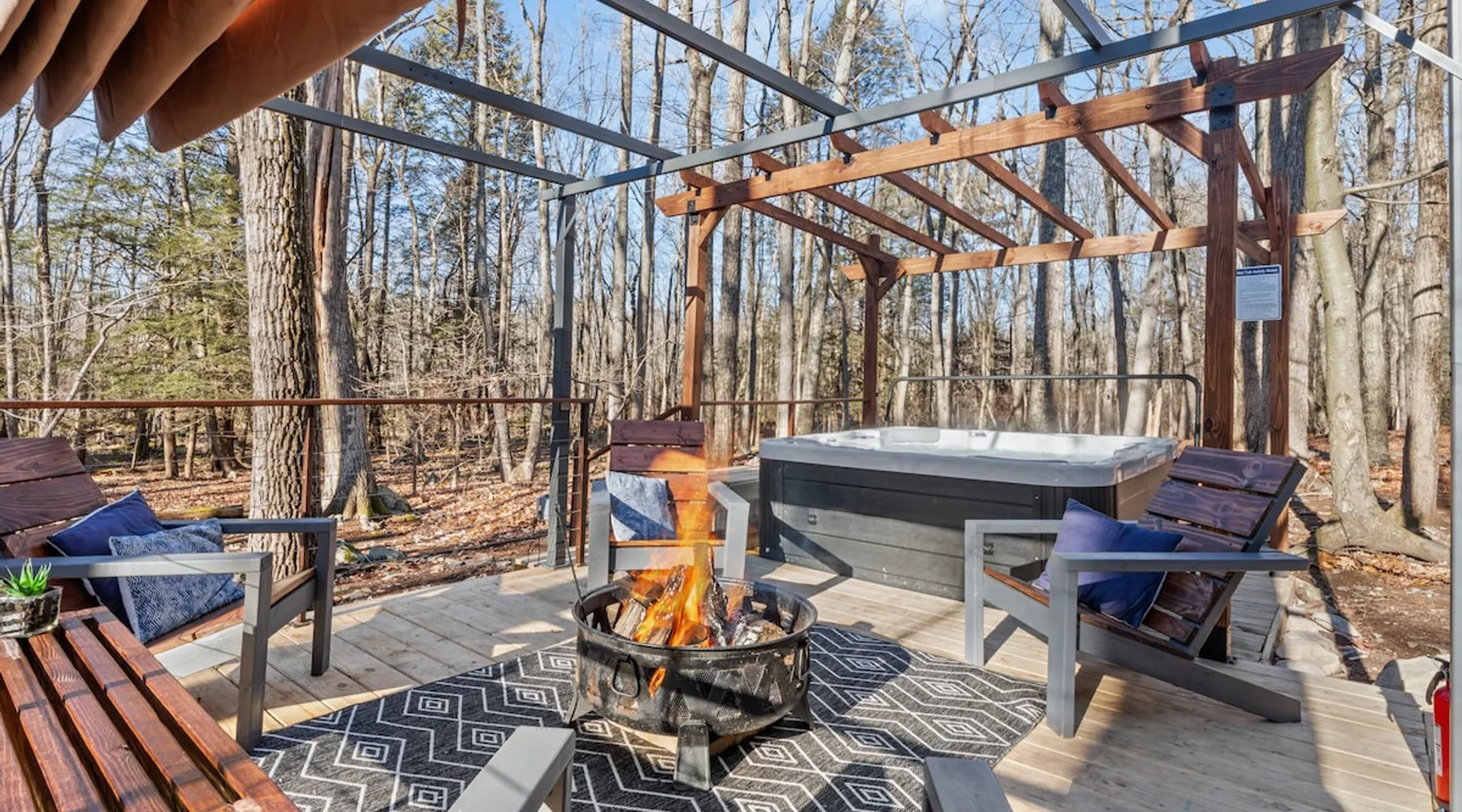 Welcome to the Luxury Sanctuary, your serene retreat in the heart of the picturesque Pocono Mountains. Whether you're seeking a thrilling adventure or a peaceful retreat, our location provides many opportunities for hiking, biking, skiing, and more. Enjoy morning coffee on the spacious deck. Book your escape today and create memories to last a lifetime amidst the beauty of this natural paradise. The space You're greeted by a warm and inviting atmosphere. The spacious living area features cozy furniture and a crackling fireplace, creating the ideal relaxing spot after a day of adventure. The kitchen has everything you need to whip up delicious meals, which you can enjoy in the adjacent dining area. The house boasts multiple bedrooms, each tastefully decorated and offering a peaceful retreat at the end of the day. Outside, a deck patio provides the perfect setting for al fresco dining or simply soaking up the forest views. Inside, you'll find an open and spacious layout that combines the living room, dining area, and kitchen. The interiors are bright and airy, with stylish decorations that blend well with the natural surroundings. The house has two full bathrooms and can comfortably accommodate up to six guests. The living area features a cozy fireplace, ideal for evening get-togethers, and a Family room with a top-of-the-line entertainment system. You can enjoy a 75" Smart UHD Smart screen TV with a 500-watt Surround Sound System, including installed apps such as MAX, Netflix, Amazon Prime, Disney+, and more. You'll be able to log in with your credentials. A 6-person hot tub is located in the backyard, perfect for relaxing and unwinding after exploring the nearby woods. The retreat includes a Game Room with a Pool Table, a Foosball table, and a Ping-Pong Table for entertainment. For those focused on wellness, there's a dedicated Yoga area, a Static Bicycle, and a treadmill to help you stay fit during your stay. With so many attractions nearby, including hiking paths, Camelback & Kalahari Water Parks, The Delaware Water Gap, Crossings Premium Outlet Shopping Mall, Lodge Wolf Resort, Bushkill Falls, the Appalachian Trail, Mount Tammany, and Minsi, there's no shortage of things to see and do. Whether you're seeking outdoor adventures or want to relax and unwind in a beautiful setting, this house offers the perfect home base for your Pocono getaway. Guest access Experience unparalleled convenience with our advanced keypad lock. Enter your unique PIN for seamless, keyless entry—no more fumbling for keys or worrying about whether the door is secure. The lock automatically reengages behind you, ensuring the property is always protected. During your stay, you’ll enjoy unrestricted access to the house, except for designated maintenance and supply areas. Upon check-out, your access code is immediately deactivated, guaranteeing both your privacy and security. Other things to note Bedroom linens and Bathroom towels: We will provide clean and washed sheets and towel sets for each guest. The beds will also be ready. Bedroom linens are provided but not exchanged during your stay. Guestbook Manual: A guestbook binder with the most essential information about the house will be on the kitchen table. Please take a moment to review it upon arrival—an envelope containing four badges to access the swimming pools during the summer season. Please ensure that you return them when checking out. Beach, Lake, and Pool towels will not be provided during your stay. Please bring your own. Please do not make loud noises outside after 10 p.m. and do not drive over the posted speed limits in the development (25 Mph Max speed); the community police will issue tickets if there are violations, and you will be held responsible. The cost/value of your reservation is automatically created when you select your dates and the total number of guests, including pets. The security deposit is charged only if there are damages, with no upfront fees or charges. A start-up set of garbage bags, toilet tissue, paper towels, shampoo, conditioner, and hand soap will be provided, but will not be replenished during your stay. We take the comfort and well-being of our guests seriously. Our property undergoes regular professional pest control to ensure a clean and pest-free environment, allowing you to relax and enjoy your stay with peace of mind. Important Disclaimer: By renting our home, you acknowledge and accept the natural conditions of the surrounding area, including the presence of insects and wildlife such as deer, raccoons, bears, squirrels, ants, spiders, etc., throughout the year. Due to the proximity to The Cranberry Preserve Bog, occasional encounters with bugs are inevitable and cannot be grounds for complaint or refund on Airbnb. We encourage our guests to notify us of any issues or concerns as soon as possible. We value open communication and believe it is the most effective way to address and resolve any issues promptly. We can't fix something that we do not know.