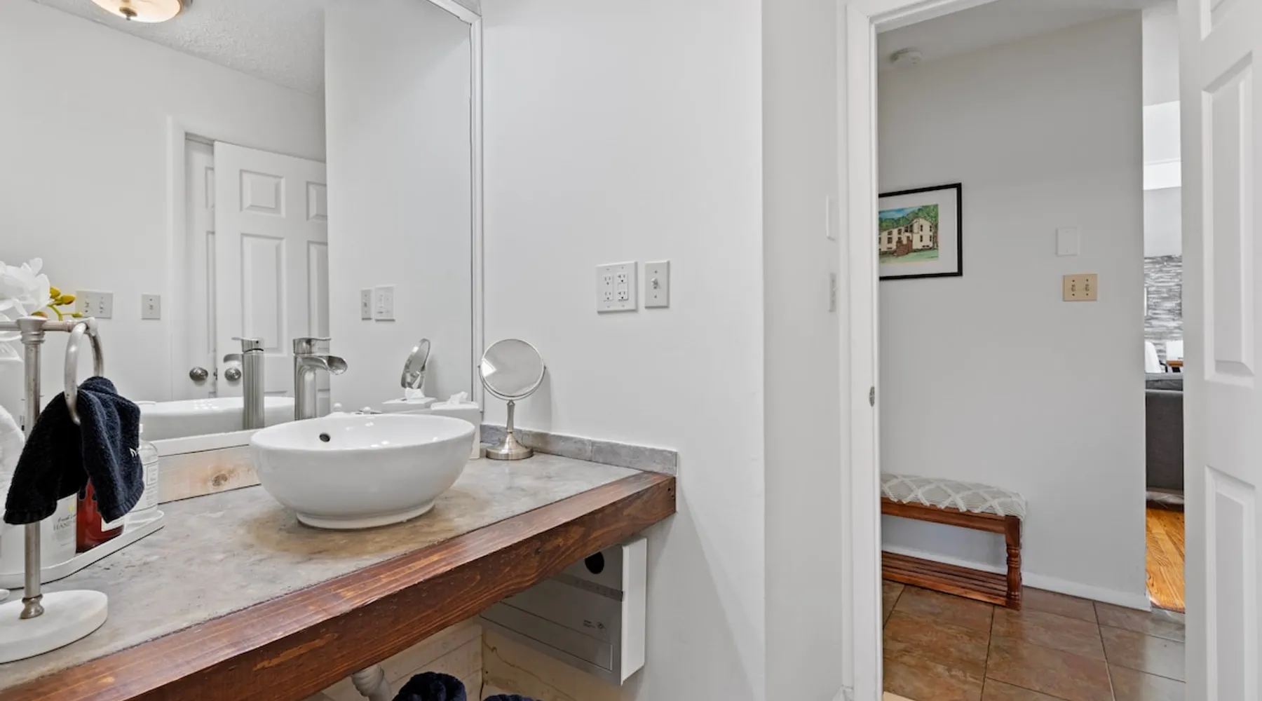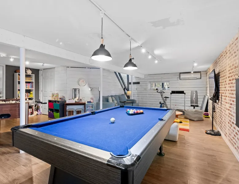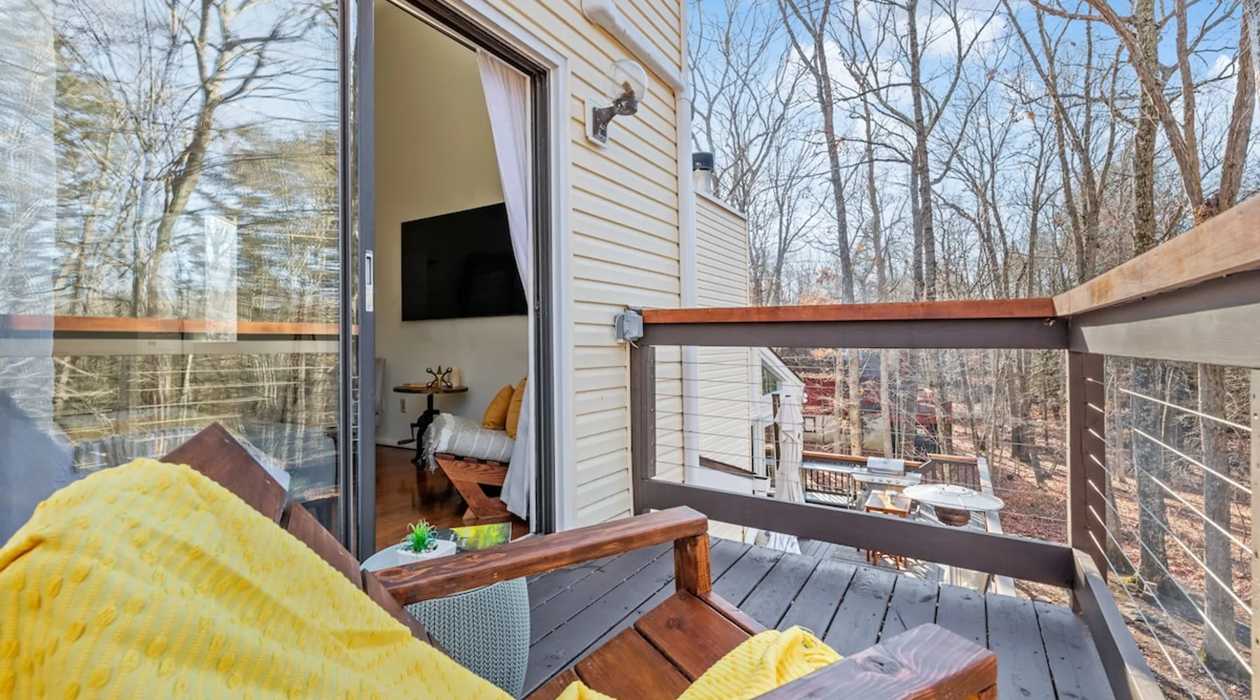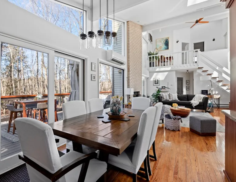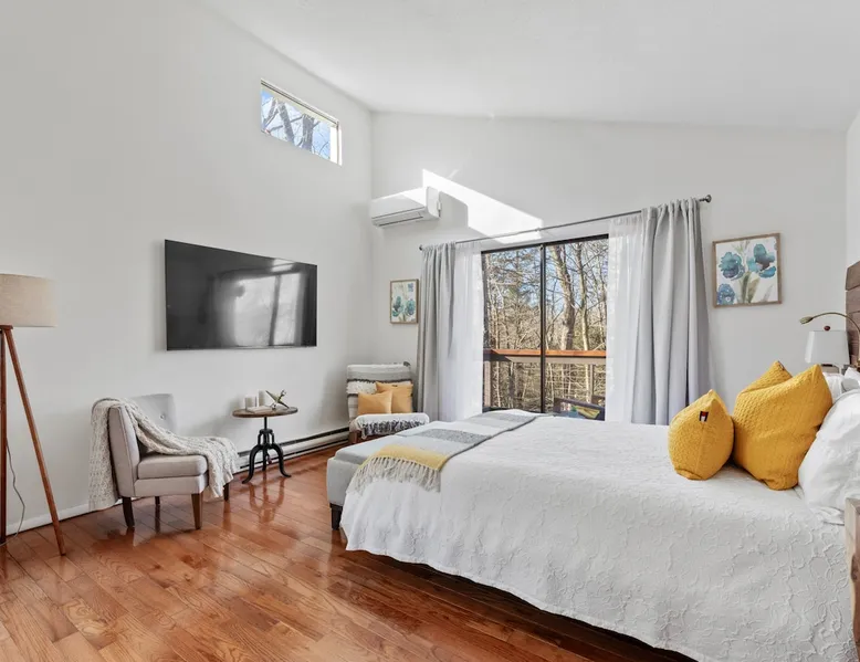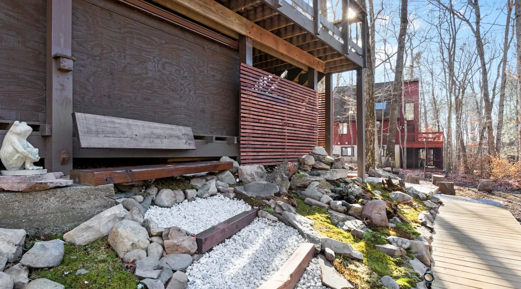 Welcome to the Luxury Sanctuary, your serene retreat in the heart of the picturesque Pocono Mountains. Whether you're seeking a thrilling adventure or a peaceful retreat, our location provides many opportunities for hiking, biking, skiing, and more. Enjoy morning coffee on the spacious deck. Book your escape today and create memories to last a lifetime amidst the beauty of this natural paradise. The space You're greeted by a warm and inviting atmosphere. The spacious living area features cozy furniture and a crackling fireplace, creating the ideal relaxing spot after a day of adventure. The kitchen has everything you need to whip up delicious meals, which you can enjoy in the adjacent dining area. The house boasts multiple bedrooms, each tastefully decorated and offering a peaceful retreat at the end of the day. Outside, a deck patio provides the perfect setting for al fresco dining or simply soaking up the forest views. Inside, you'll find an open and spacious layout that combines the living room, dining area, and kitchen. The interiors are bright and airy, with stylish decorations that blend well with the natural surroundings. The house has two full bathrooms and can comfortably accommodate up to six guests. The living area features a cozy fireplace, ideal for evening get-togethers, and a Family room with a top-of-the-line entertainment system. You can enjoy a 75" Smart UHD Smart screen TV with a 500-watt Surround Sound System, including installed apps such as MAX, Netflix, Amazon Prime, Disney+, and more. You'll be able to log in with your credentials. A 6-person hot tub is located in the backyard, perfect for relaxing and unwinding after exploring the nearby woods. The retreat includes a Game Room with a Pool Table, a Foosball table, and a Ping-Pong Table for entertainment. For those focused on wellness, there's a dedicated Yoga area, a Static Bicycle, and a treadmill to help you stay fit during your stay. With so many attractions nearby, including hiking paths, Camelback & Kalahari Water Parks, The Delaware Water Gap, Crossings Premium Outlet Shopping Mall, Lodge Wolf Resort, Bushkill Falls, the Appalachian Trail, Mount Tammany, and Minsi, there's no shortage of things to see and do. Whether you're seeking outdoor adventures or want to relax and unwind in a beautiful setting, this house offers the perfect home base for your Pocono getaway. Guest access Experience unparalleled convenience with our advanced keypad lock. Enter your unique PIN for seamless, keyless entry—no more fumbling for keys or worrying about whether the door is secure. The lock automatically reengages behind you, ensuring the property is always protected. During your stay, you’ll enjoy unrestricted access to the house, except for designated maintenance and supply areas. Upon check-out, your access code is immediately deactivated, guaranteeing both your privacy and security. Other things to note Bedroom linens and Bathroom towels: We will provide clean and washed sheets and towel sets for each guest. The beds will also be ready. Bedroom linens are provided but not exchanged during your stay. Guestbook Manual: A guestbook binder with the most essential information about the house will be on the kitchen table. Please take a moment to review it upon arrival—an envelope containing four badges to access the swimming pools during the summer season. Please ensure that you return them when checking out. Beach, Lake, and Pool towels will not be provided during your stay. Please bring your own. Please do not make loud noises outside after 10 p.m. and do not drive over the posted speed limits in the development (25 Mph Max speed); the community police will issue tickets if there are violations, and you will be held responsible. The cost/value of your reservation is automatically created when you select your dates and the total number of guests, including pets. The security deposit is charged only if there are damages, with no upfront fees or charges. A start-up set of garbage bags, toilet tissue, paper towels, shampoo, conditioner, and hand soap will be provided, but will not be replenished during your stay. We take the comfort and well-being of our guests seriously. Our property undergoes regular professional pest control to ensure a clean and pest-free environment, allowing you to relax and enjoy your stay with peace of mind. Important Disclaimer: By renting our home, you acknowledge and accept the natural conditions of the surrounding area, including the presence of insects and wildlife such as deer, raccoons, bears, squirrels, ants, spiders, etc., throughout the year. Due to the proximity to The Cranberry Preserve Bog, occasional encounters with bugs are inevitable and cannot be grounds for complaint or refund on Airbnb. We encourage our guests to notify us of any issues or concerns as soon as possible. We value open communication and believe it is the most effective way to address and resolve any issues promptly. We can't fix something that we do not know.