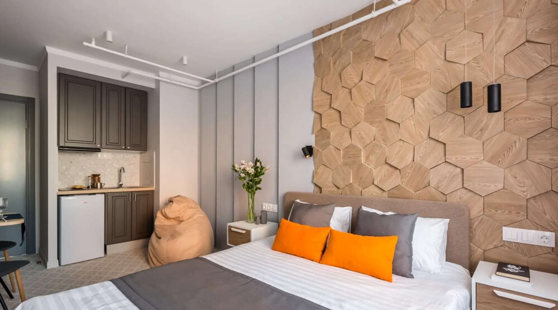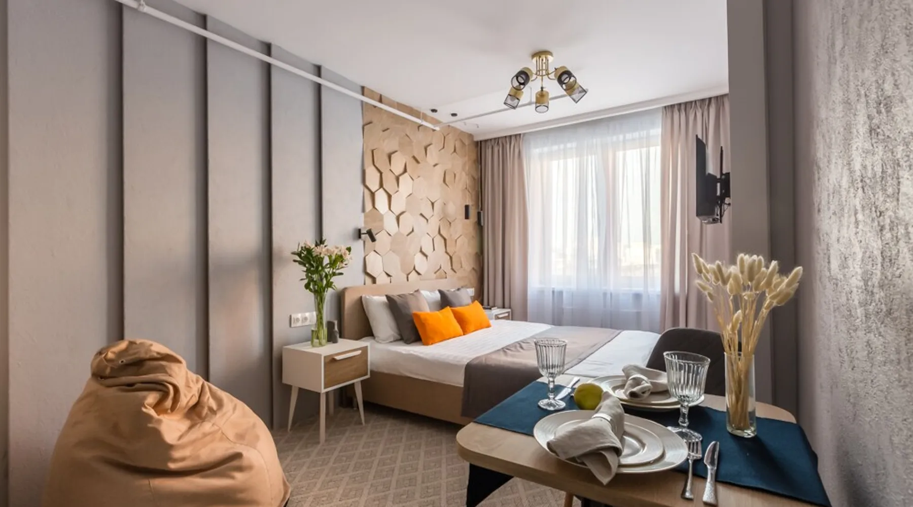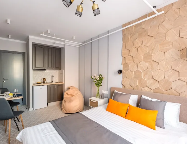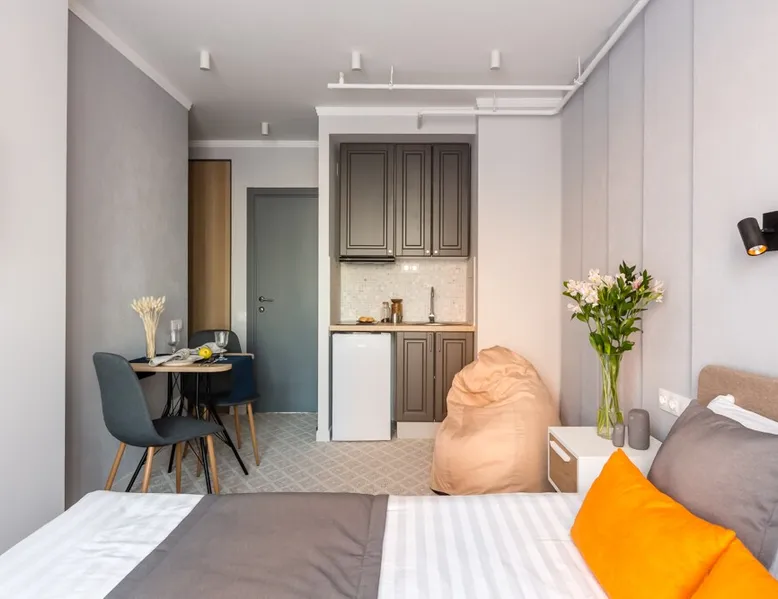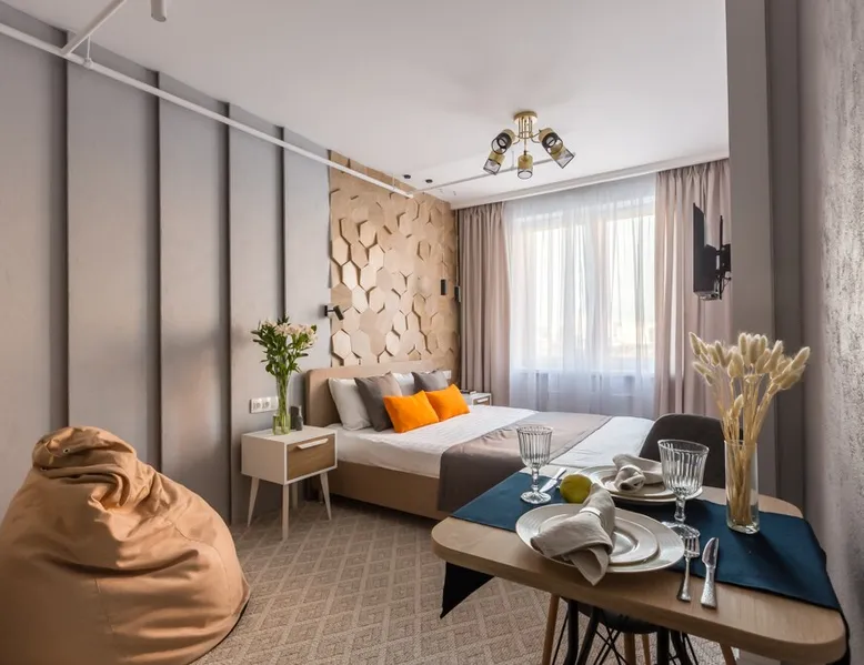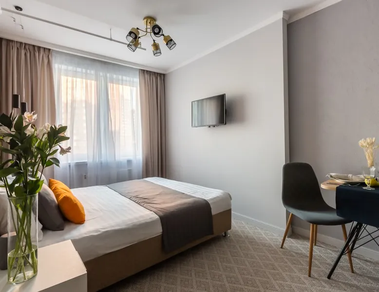 The apartment is located near the railway station of Lyubertsy The space Rent a modern studio in the residential estate "Clouds" with fresh designer repairs, just 300 meters from the railway station Lyubertsy-1( 3 min walk). The apartment is designed for a stay of 2 people, the apartment has a new comfortable double bed. Photographs of the apartment fully correspond to reality! Not far from the apartment there is a shopping and entertainment center, chain supermarket, beauty salon, fitness club,pharmacy, bank branches, Customs Academy. The studio is equipped with all necessary things for your comfortable stay. Household appliances: plasma TV, refrigerator, microwave, stove, iron, hair dryer ,washing machine, iron, board. All necessary utensils for cooking and other pleasant items are available. The price includes unlimited high-speed - internet, snow-white sets of linen and towels, as well as hygiene supplies. The apartment is regularly professionally cleaned. Check-in to the apartment is possible any time you want after 15.00 hours, check-out is before 10.00 o'clock. The apartment is rented out to strictly non-smoking guests! Guests older than 21 years! Guest access In the apartment you will find perfect cleanliness and everything you need for a comfortable stay: • Double bed • Sauna and hot tub right in the apartment! • Unlimited high-speed internet (Wi-Fi) • Kitchen is fully equipped for food preparation: tile, microwave, electric kettle, water filter,tableware, tea, sugar, salt, etc. • The bathroom also has everything you need: washing machine, hair dryer, hygiene supplies, laundry detergent, etc. • Bedding sets and terry towels, spotlessly clean and ironed • TV • Iron, Iron • Shoe cleaners, slippers and other nice little things :) All photos are true. Professional cleaning is carried out before each race. The final cleaning of the apartment is included in the price. If you come to us for more than 10 days, every 7 days you will have free professional cleaning. In addition, cleaning is available at extra cost whenever you like. Other things to note Self check-in is possible at night hours (from 23:00 to 06:30) Please note that we don't host guests under 21.