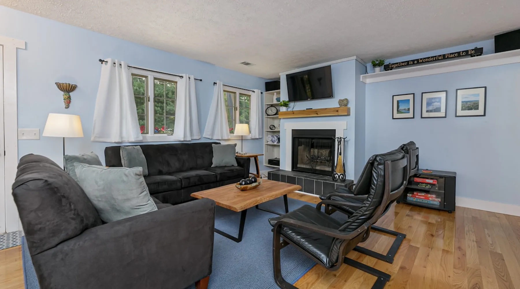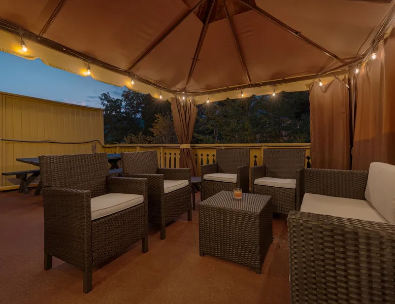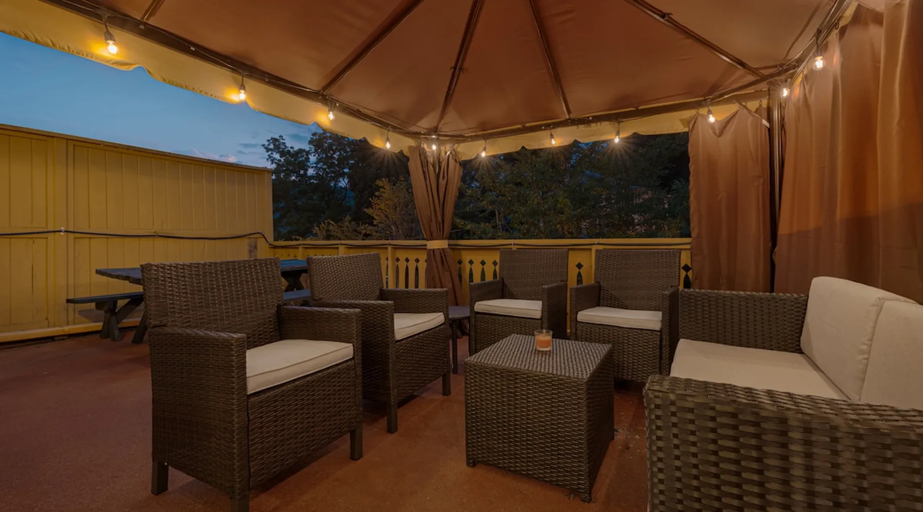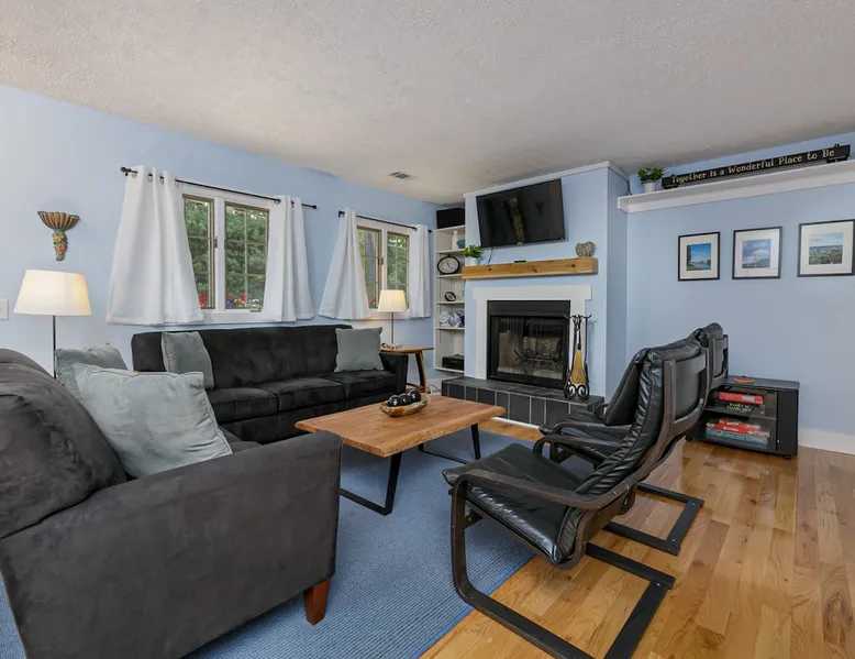 Das Heart of Helen Haus is located right in the heart of the Bavarian Alpine village of Helen, Georgia. Within a short walk is the excitement of German restaurants and beer gardens, European shops, river tubing, and the Festhalle where the annual Oktoberfest is held each September and October. This Bavarian-style townhome is just across the street from Unicoi Hill Park with a playground, and one block off Main Street. Feel the energy from your private retreat in the city! The space Welcome to Das Heart of Helen Haus, nestled in the heart of the charming Bavarian Alpine village of Helen, Georgia. Immerse yourself in the vibrant atmosphere just steps away from German restaurants, beer gardens, quaint European shops, and the excitement of river tubing. Experience the renowned Oktoberfest at the nearby Festhalle, held annually in September and October. This Bavarian-style townhome offers the perfect blend of convenience and serenity, located just across from Unicoi Hill Park and a block from Main Street. Indulge in the comfort of your private retreat after a day of exploring Helen. Spread out across three stories, this townhome features a basement room with a day bed and a large screen TV for entertainment. The kitchenette provides all the essentials, including a full refrigerator, microwave, and sink, while the adjacent laundry room houses a washer and dryer for added convenience. Upstairs, the main bedroom boasts a balcony overlooking White Strasse and the city park, a walk-in closet, luxurious log-style queen bed, and a private bathroom. Share a shower tub with the second bedroom, which also offers its own private bathroom, cozy queen bed, and walk-in closet. On the main floor, relax by the wood-burning fireplace or whip up a meal in the fully stocked kitchen. Step outside to the back balcony and savor the mountain air while grilling on the propane BBQ under the lighted gazebo. End your day with a refreshing beverage on the balcony, soaking in the ambiance of this charming Alpine village. Other things to note 25+ age requirement for lead guest. No exceptions. This property is not pet-friendly. No exceptions. Digital rental agreement will be required to sign and complete after property is booked. 3 parking spots provided. (2 in back parking lot + 1 in front of unit on the street) Fireplace is decorative only and does not heat with gas or wood.