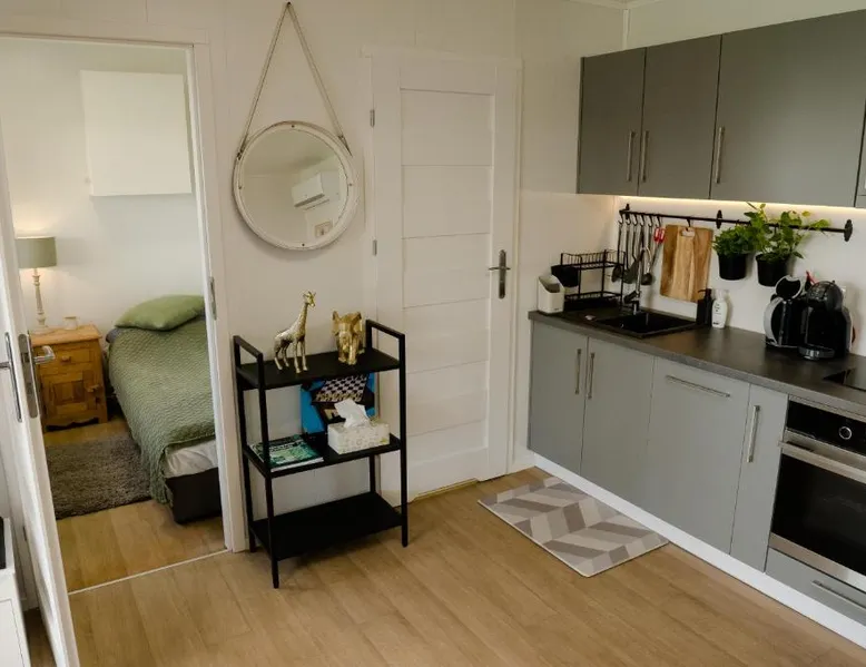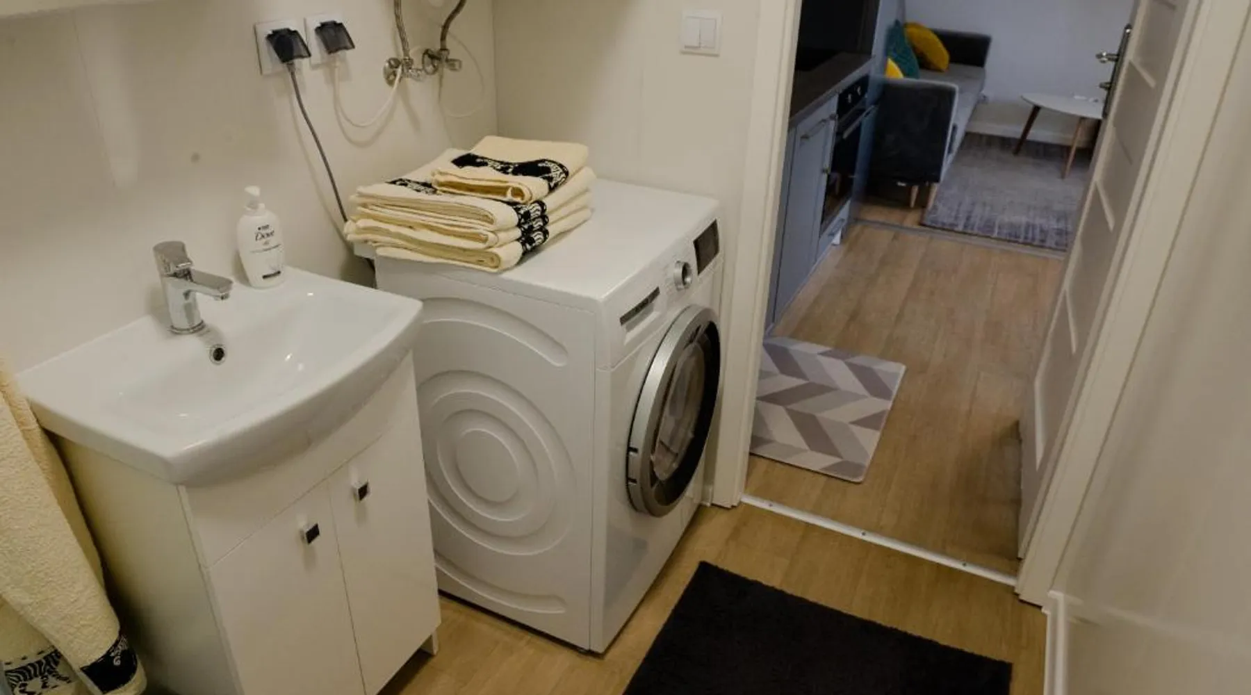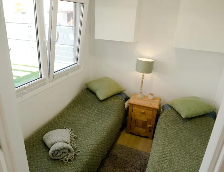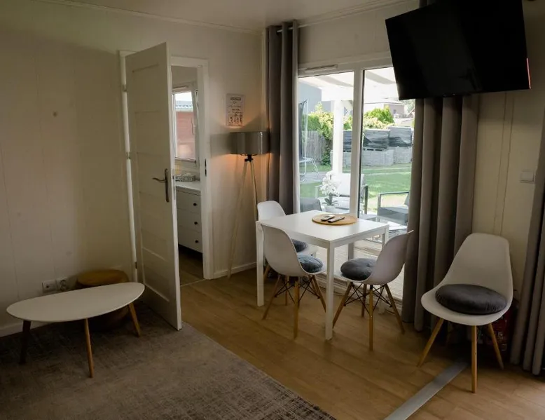 Comfortable Accommodations: Apartament Domek Romi w Augustowie offers a holiday home in Augustów, Poland. The property features two bedrooms, a living room, and a bathroom. Guests enjoy a sun terrace, garden, and free WiFi. Convenient Facilities: The holiday home provides free use of bicycles, a shared kitchen, and a lounge. Additional amenities include air-conditioning, a balcony, and a washing machine. Free on-site private parking is available. Local Attractions: Marina Augustow is a 14-minute walk away, while The Augustów Canal lies less than 0.6 mi from the property. Olsztyn-Mazury Airport is 104 mi distant. Nearby activities include fishing, cycling, and hiking. Boasting a private entrance, this air-conditioned holiday home includes 1 living room, 2 separate bedrooms and 1 bathroom with a shower and a hairdryer. Guests will find a stovetop, a refrigerator, a dishwasher and kitchenware in the well-equipped kitchen. The holiday home also features a barbecue. Featuring a terrace with garden views, this holiday home also offers a washing machine and a flat-screen TV with streaming services. The unit has 4 beds.