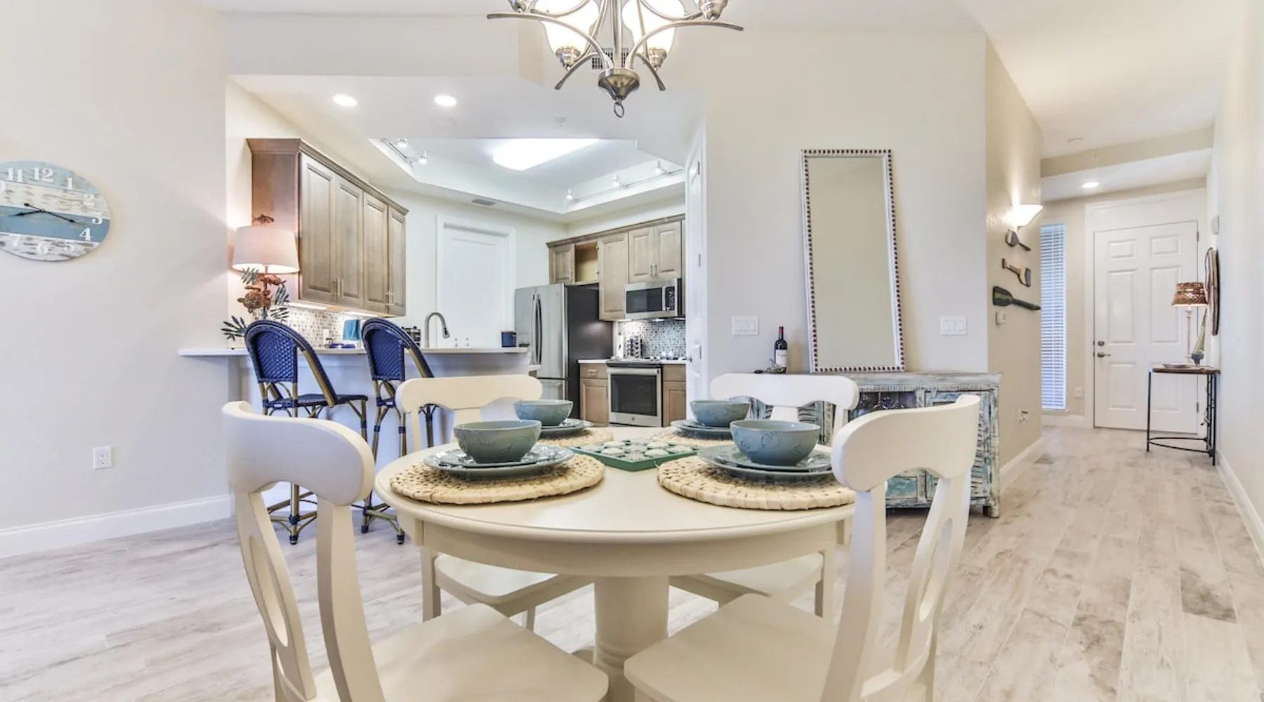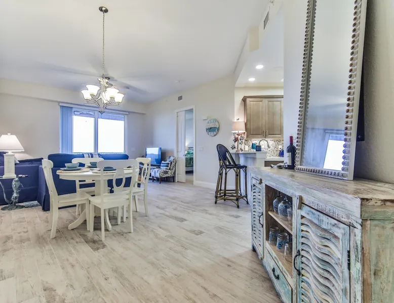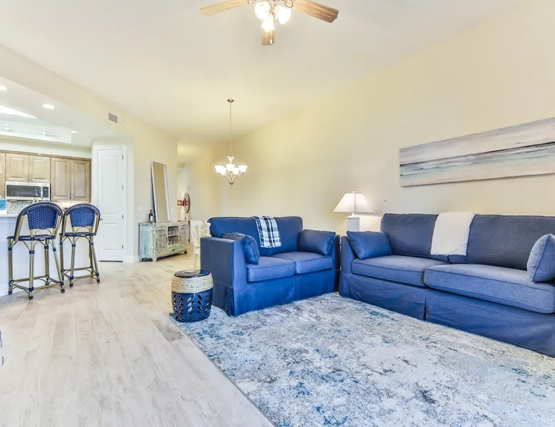 Riverwalk is where you deserve to be in this furnished penthouse level condo you've always wanted! The space An alluring urban energy blends seamlessly with the comfort and ease of resort living. There's always something to do in NSB! We have the best of both worlds. Our welcoming path along the intracoastal is perfect for a jog, enjoying your morning coffee, or simply watching the water flow by after a busy workday. This penthouse level condo offers a spacious master bedroom and brand-new kitchen that makes your daily routine more enjoyable. When combined with its own washer and dryer in laundry room, private patio, generous closets, and underground parking that makes arriving home hassle-free. Riverwalk condos offers a welcoming embrace where you can soak up some rays on the relaxing sun deck, immerse yourself in our refreshing resort pool, or renew your senses in our spa and personal fitness center. brand new build and never lived in Riverwalk Condo ready for you to start living the NSB lifestyle! ALL UTILITIES INCLUDED, NO PETS. GUESTS HAVE ACCESS TO ALL RIVERWALK AMENITIES. Riverwalk condos is tucked between the mainland and the Atlantic Ocean in the heart of beautiful New Smyrna Beach. This beautiful and new resort offers a welcoming embrace where you can soak up some rays on the relaxing sun deck, immerse yourself in our refreshing resort pool, or renew your senses in the spa and personal fitness center. Other amenities include recreation and entertainment at the clubhouse—which features the fitness room, theater room, gathering room, and an outdoor covered patio overlooking the river with a pool, hot tub, and barbecue area. Riverwalk Condos offers luxurious vacationing at its finest!