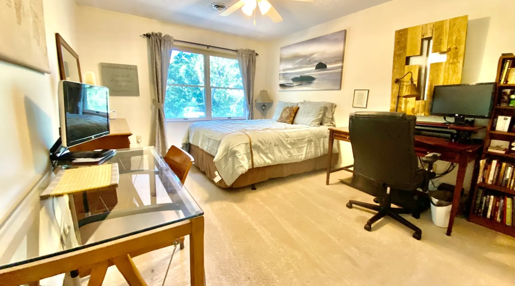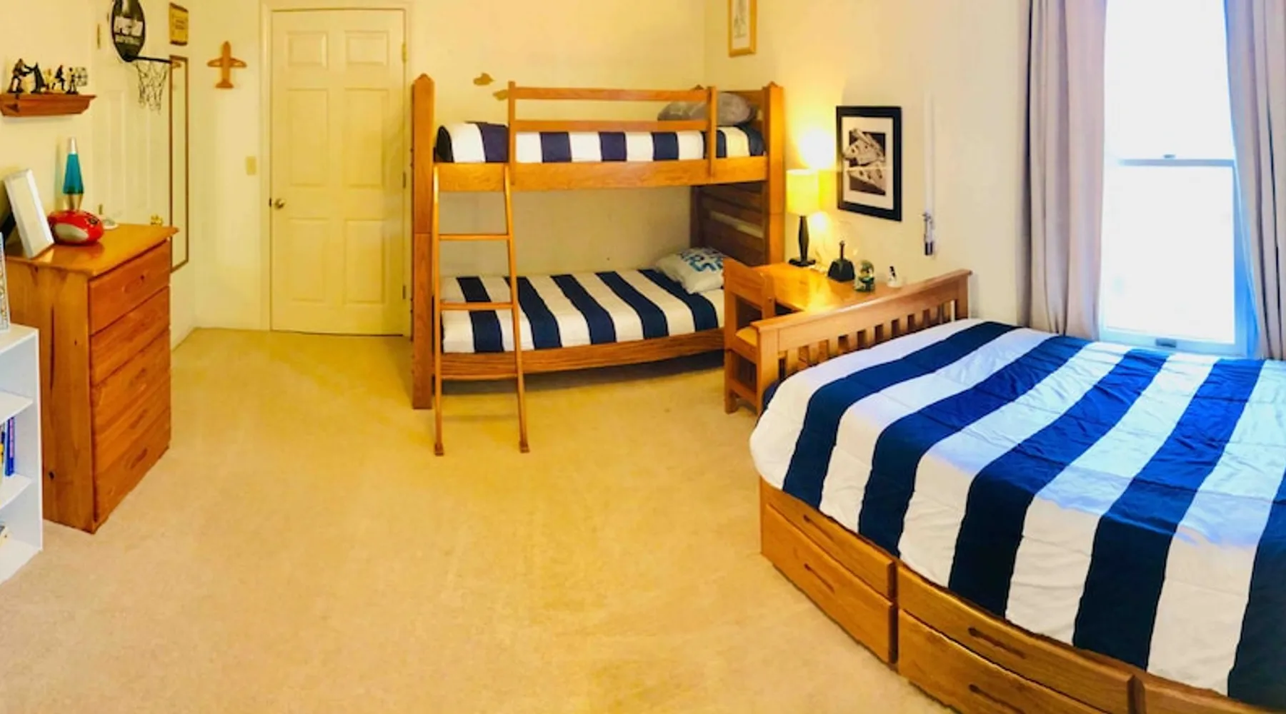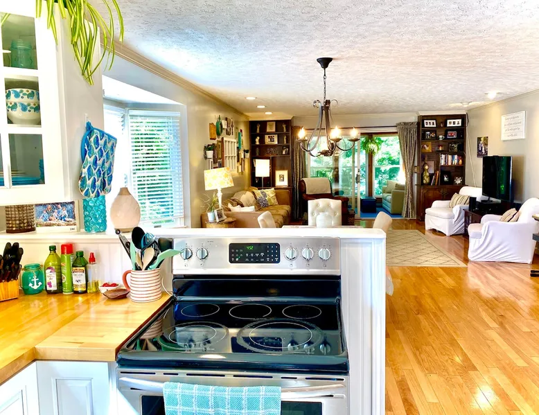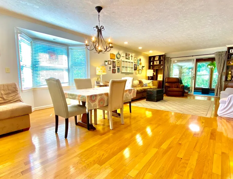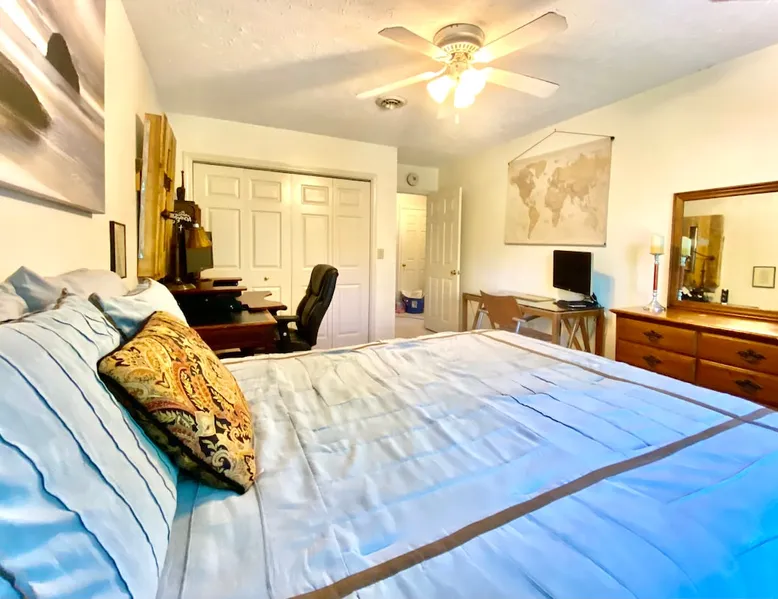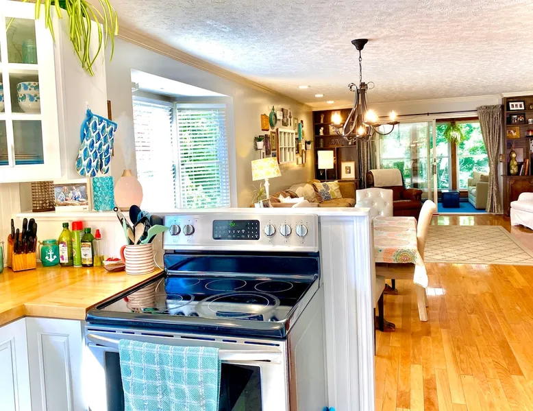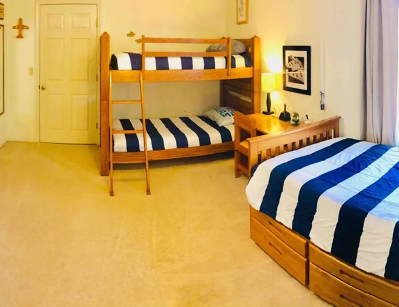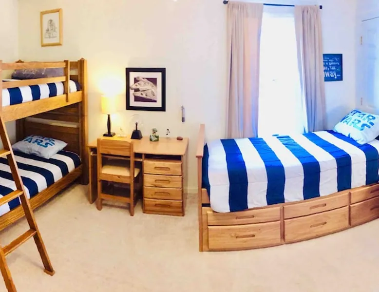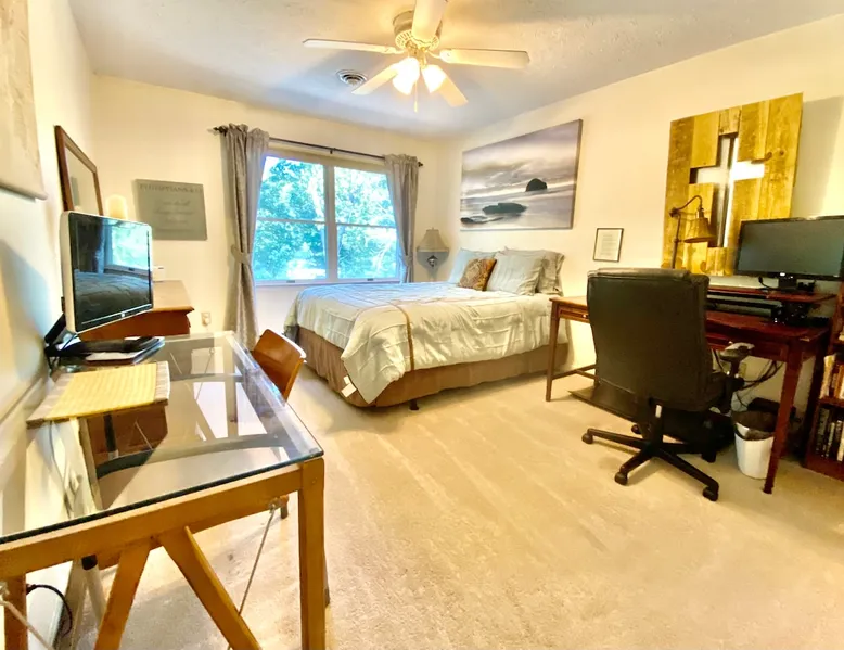 Our spacious and beautiful 4 bedroom, 2.5 bath townhome offers plenty of room for your whole group to relax and enjoy your stay. Perfect for multi-family VT football weekend, RU or VT graduation, or a relaxing getaway. 20 mins to Lane Stadium, 1 mile to RU, 5 mins to I81, and 5 mins to the New River. The space UPPER TWO LEVELS (4 bedroom, 2.5 bath, sleeps 14+) The Master Bedroom - Large room with huge king size bed, 42" flat screen Smart TV w/ built in WIFI, BlueRay player, attached full bath, sliding door leading out to a large sunroom. Located on the main level. Bedroom 2 - Located on the upper level, contains a queen bed and chest of drawers. Bedroom 3 - Located on the upper level, contains a full bed and a set of bunk beds. Bedroom 4 - Also located on the upper level, this room contains two loft beds and plenty of floor space for additional air mattresses. Sun Porch (Bonus Bedroom) - This private and relaxing sanctuary stretches the entire width of our home offering serene wooded views. This room currently has a full-size sleeper sofa, a large sofa, and a game table with poker set. Main Level Kitchen - Large eat-in kitchen with plenty of fridge and pantry space. Has everything you'd need, including a, toaster-oven and Keurig coffee station. Main Level Livingroom - Wide open living room/dining room furnished with an oversized sectional sofa, plenty of extra seating, a large flat screen smart TV, DVD/BlueRay player, and surround sound system. Guest access This listing describes and offers the upper two levels of our home. If you need anything, my mom, who occupies the mother-in-law suite on the bottom level will be happy to assist you. Other things to note Come ready to relax and make memories with this huge home suited for groups and multiple families.