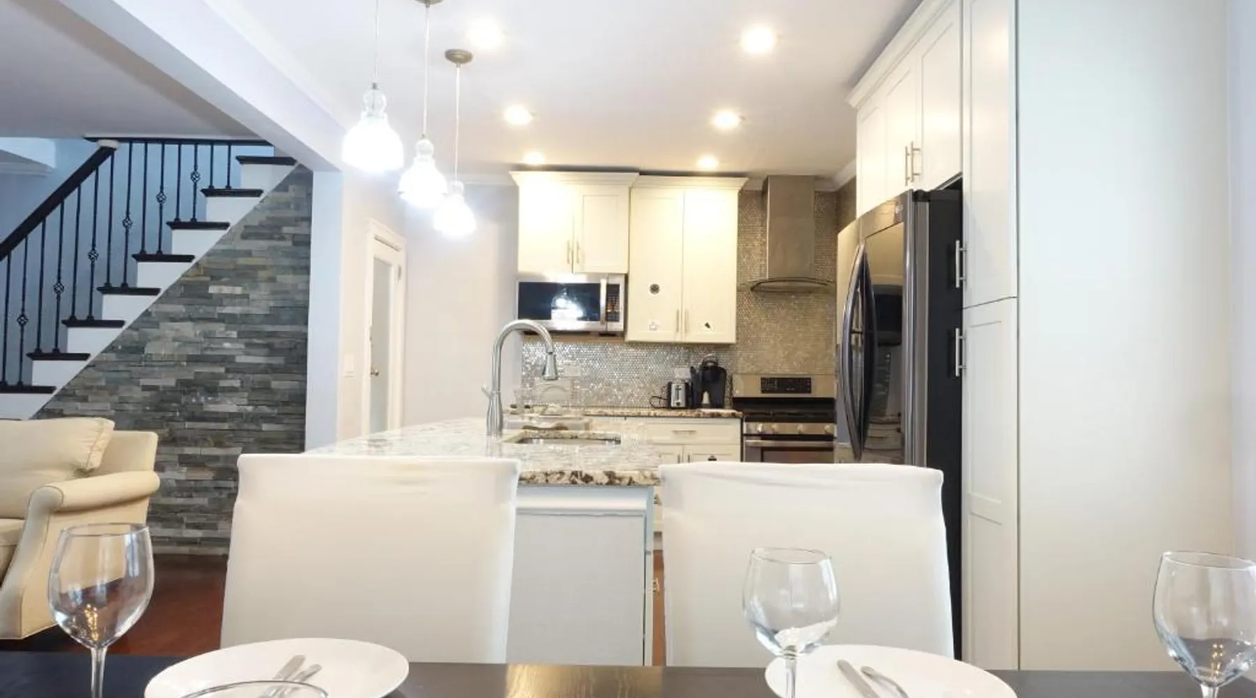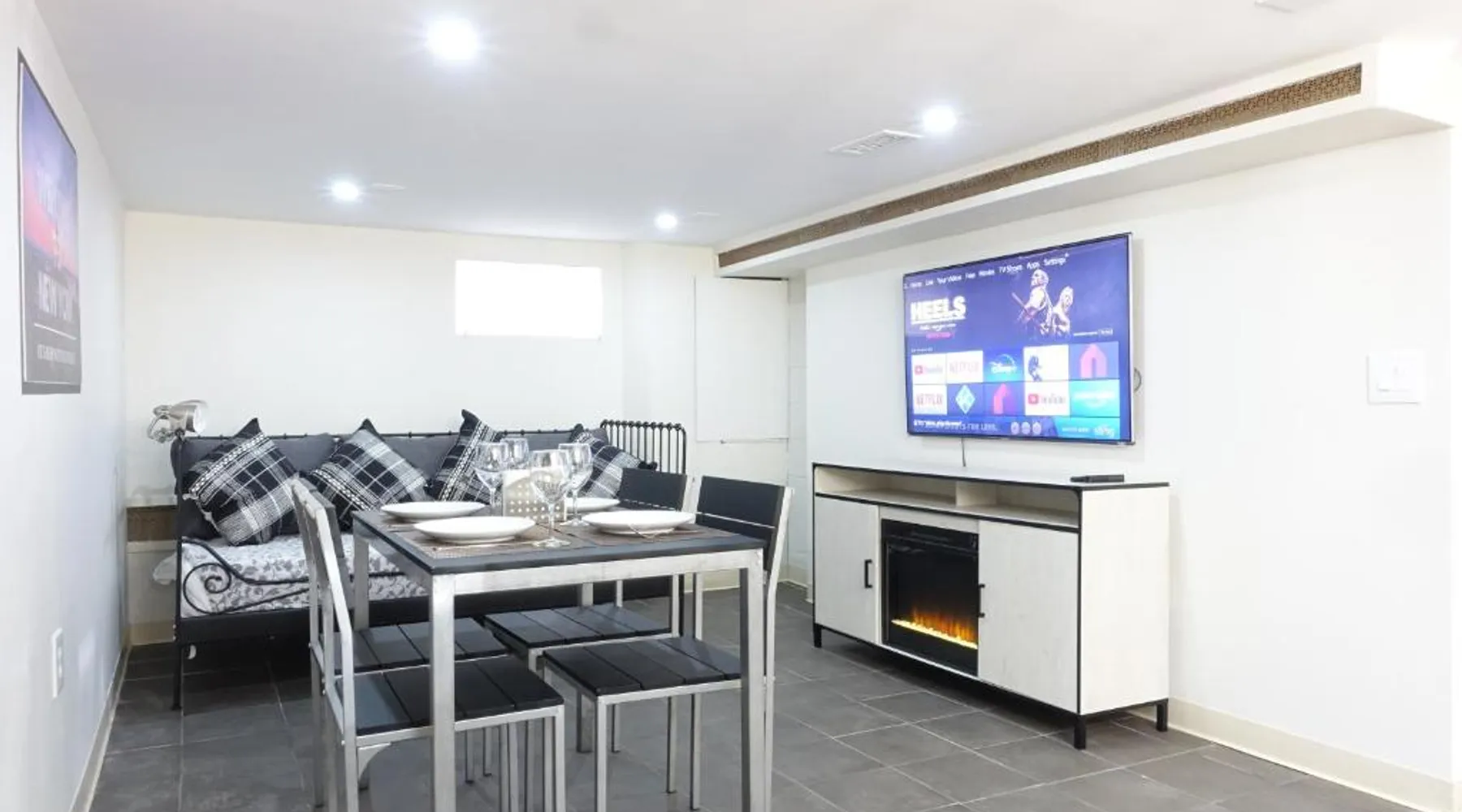 Spacious Accommodations: Best XL Home To Visit NYC in Hillside offers a spacious holiday home with seven bedrooms and four bathrooms. The property features a sun terrace and free WiFi, ensuring a comfortable stay. Modern Amenities: Guests can enjoy air-conditioning, a hot tub, and a fully equipped kitchenette. Additional facilities include an outdoor fireplace, electric vehicle charging station, and free on-site private parking. Convenient Location: Located 3.1 mi from Newark Liberty International Airport, the property is close to attractions such as Prudential Center (5 mi) and the Statue of Liberty (11 mi). Free toiletries and streaming services enhance the stay. The hot tub and fireplace are the special features of this holiday home. Boasting a private entrance, this air-conditioned holiday home comes with 2 living rooms, 7 separate bedrooms and 4 bathrooms with a bath and a shower. Guests will find a stovetop, a refrigerator, a dishwasher and kitchenware in the fully equipped kitchen. The holiday home also includes a barbecue. The spacious holiday home features a tea and coffee maker, a seating area, a dining area, a wardrobe and a flat-screen TV with streaming services. The unit has 12 beds.