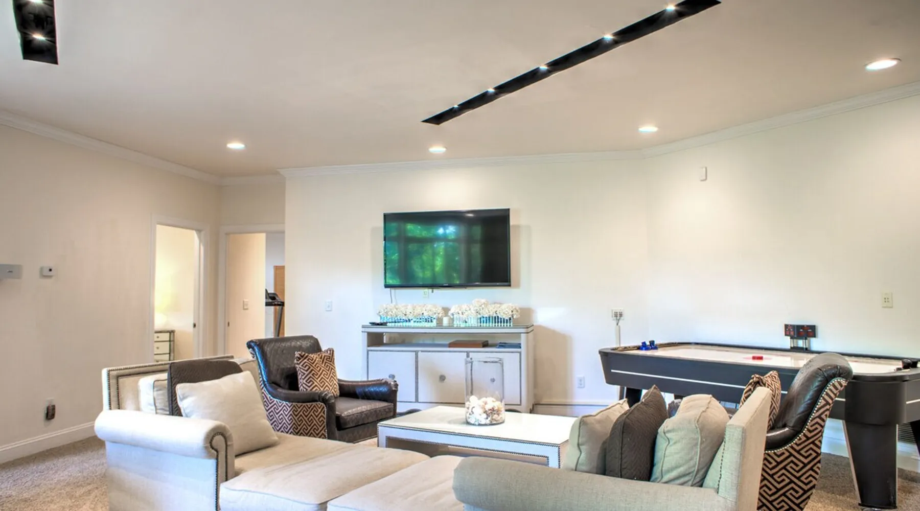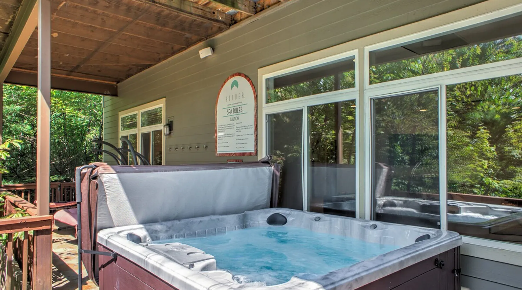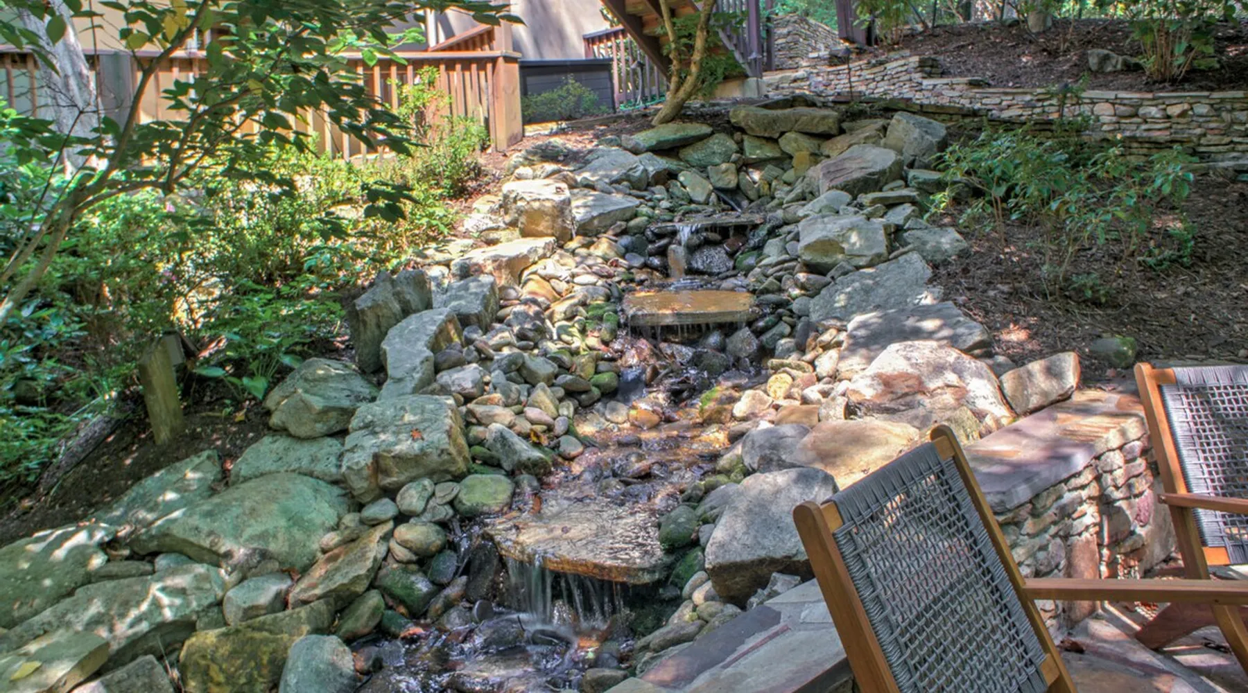 Enjoy the sound of paradise at A Whispering Stream, a secluded and timeless home overlooking the nearby mountains. A Whispering Stream has become one of the most popular homes for families, groups of friends & corporate gatherings in our portfolio. With a hot tub, waterfall, Zen Garden, fire pit, game room, and more, you will delight in the extraordinary experience and escape. The space Perched on a knoll of the mountainside, A Whispering Stream is only a 50-minute drive south of downtown Asheville. The neighborhood is calm and peaceful, perfect for unwinding and enjoying the natural beauty of the surrounding landscapes. Within a short 10-minute drive, you can reach downtown Hendersonville, where you'll find a variety of shops, cafes, and cultural attractions. If you're a nature lover, the nearby DuPont State Forest (20-minute drive) is a must-see destination, known for its stunning waterfalls and hiking trails. Lake Lure is also nearby and offers opportunities for boating, fishing, and relaxation by the water. A Whispering Stream is located 25 minutes from Asheville Regional Airport and approximately 45 minutes from the gates of the Biltmore Estate, making it an ideal and accessible mountain retreat. This thoughtfully designed layout includes five bedrooms and four and a half baths. On the main level, you'll find the primary and guest suites, each offering a private ensuite bathroom and king bed. Upstairs guest rooms share a full bath with private vanities. The lower-level guest room with a queen-sized bed provides complete privacy with a full bathroom. The space is decorated with local artwork, modern furnishings, natural stone, custom tile work, and hardwood floors. The family room features a stunning stone and gas fireplace, while the large kitchen and elegant dining area are perfect for gatherings. You'll find endless entertainment options, from multiple stream televisions and books to a pool table, a foosball table, and even a dedicated workout area. A serene outdoor space surrounds the home. There's a spot for everyone, from the open deck to the cozy hot tub, the inviting front porch to the serene Zen garden. Follow the walking path to the firepit and take in the magnificent views of the forested mountains. As the sun sets, gather around the fire pit, roast some s'mores, and enjoy the soothing sounds of the running stream under the star-filled sky. Experience the magic of the great outdoors at its best. A Whispering Stream has everything you need for a perfect vacation, whether you're in the mood for thrilling outdoor activities or peaceful moments of solitude. Don't hesitate - book your stay now and prepare for an unbeatable experience that will stay with you forever. Exclusive Special: When you book A Whispering Stream, you will receive a unique code for discounted tickets to the Biltmore Estate! Home Truths: - Sleeps in beds: 10 - Max Occupancy: 14 - A Whispering Stream is on a private road, and traveling beyond the driveway entrance is potentially dangerous and not advised. - Our team provides linens for all beds; other occupancy will require guests to provide the extra linens. - Internet Speed: Download - 24Mbps Upload - 4Mbps Our team openly shares our Cleaning Fees in a manner of full disclosure, as we think this is the most honest and forthright approach concerning our guests. Our cleaning fees, backed by our Clean Guarantee, reflect the highest standards, pristine environments for our guests, and a cleanness that surpasses any other vacation home; we literally guarantee it! Quiet Policy: Parties, loud noise, and unruly behavior are prohibited. Guests are expected to respect the neighbors and the peace this mountain retreat area affords. Early Check-In and/or Late Check-Out may be possible, depending on cleaning schedules and other reservations. If possible, an additional fee may apply, determined based on the time you wish to check in or out and the seasonal rates. Pets: This home and property are dog-friendly, and guests are welcome to bring their furry friends. There is a non-refundable Pet Fee of $130 with a limit of 2 dogs per booking party. Military Discount: We have tremendous respect and gratitude for former and present military personnel. We would like to offer a 5% discount on this home. Some restrictions apply, not valid with any other offers. The only thing we ask is that you present identification in the form of a "CAC" card or a "DD Form 2" card (Blue & Green). Please type "herodiscount" into the promo code textbox when booking. Payment - Cancellation - Insurance: Please Inquire about payment & cancellation policies and vacation rental insurance information.Note: Reservations over 30 days are subject for review prior to acceptance. A separate rental agreement will be required for 90+ day stays. Last Minute Bookings: Reservations made within 7 days of check-in require additional documentation before confirmation.