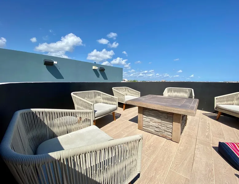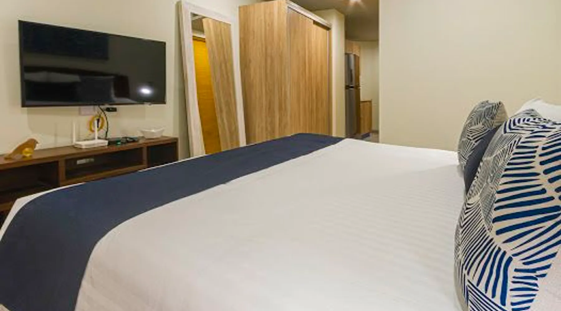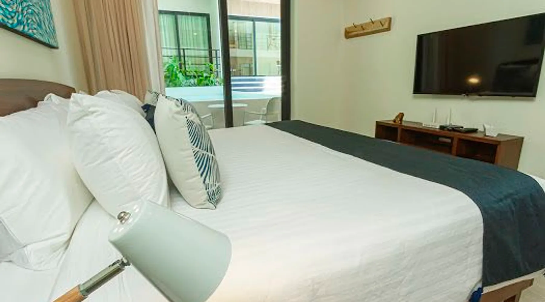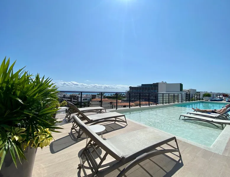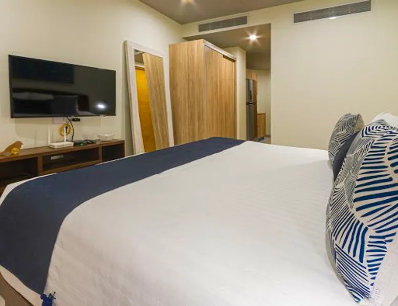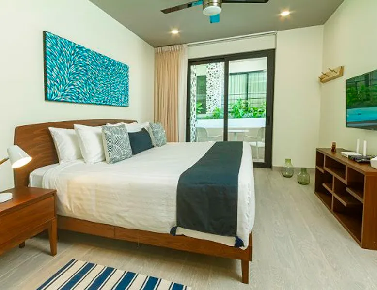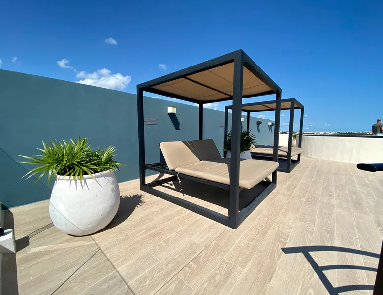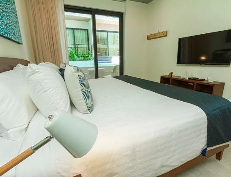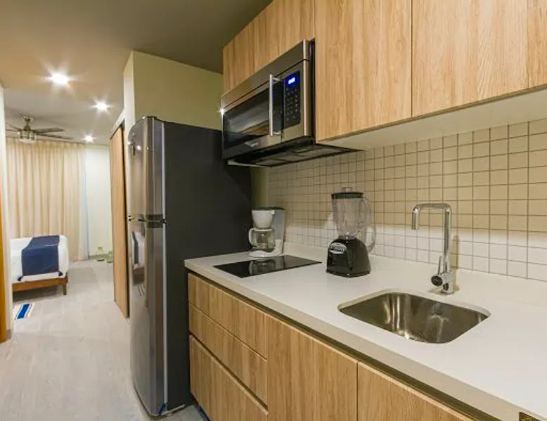 So close to the sea that in less than a 5-minute walk you will reach Playa Pelícanos. So well located that when you leave the building you will have a pharmacy, shop, and restaurants such as Ojo de Agua and Salento. In the morning you can take yoga classes at Mandarino Beach Club. In the afternoon or evening, you have restaurants and bars with ocean views such as Piaggia or Peccato just a few steps away. If you want to spend the whole day at sea, you can do so at the Playa Martina club or go to some of the Blue Flag beaches. The space The room has an area of 32 m2, ideal for one or two people. Romantic if you want to go as a couple. Practical for its excellent location. It has a king-size bed where you will dream of the sand and sea you visited during the day. Relax and enjoy Playa del Carmen. Guest access In the building you will find 2 Lobbys, with enough armchairs to spend a few hours chatting or reading. It also has a work table and several chairs to share the cowork. The rooftop will welcome you with a good-sized pool and incredible ocean views. You can exercise in the gym at The Boat. Other things to note 1. Internet: El internet es veloz y estable, se pueden trabajar tranquilamente dos o más personas a la vez aun teniendo varios dispositivos conectados (teléfonos, computadoras y la televisión). Velocidad de 80 Megas 2. NO Aceptamos Mascotas de Ningun tipo 3. Check in is very simple: We give you a code 4. Early check in Availability is limited and must be requested prior to arrival. Make sure you receive confirmation from us after applying. To enhance your arrival experience, we offer a complimentary starter kit that includes toilet paper (2 Rolls), trash bag for the container, soap, shampoo, coffee, sugar, sweetener, and bottled water (1). These items will not be restocked and guests are encouraged to purchase locally if necessary. For your convenience, sheets and towels can be changed for an additional charge of 18 USD (the same applies to the full cleaning service). Daily cleaning is NOT included in the rental price. You just have to let us know 24 hours in advance to schedule our cleaning services. 4.⚡️ Electricidad Incluimos 15 kwh diarios como crédito de electricidad - 💡 Costo adicional por kWh: 5.5 MXN - 📊 Consumo promedio diario: 15kwh