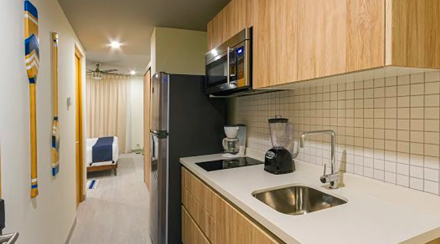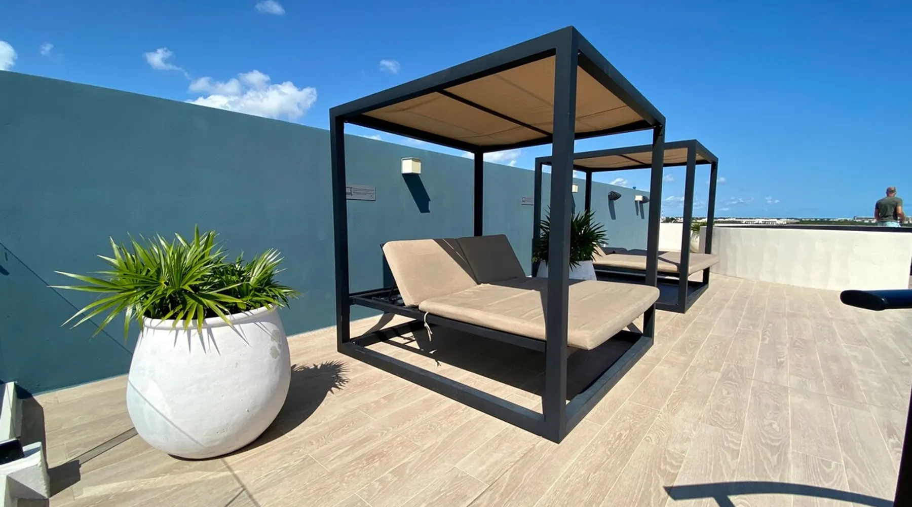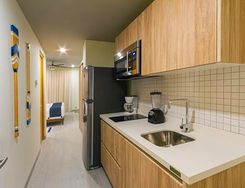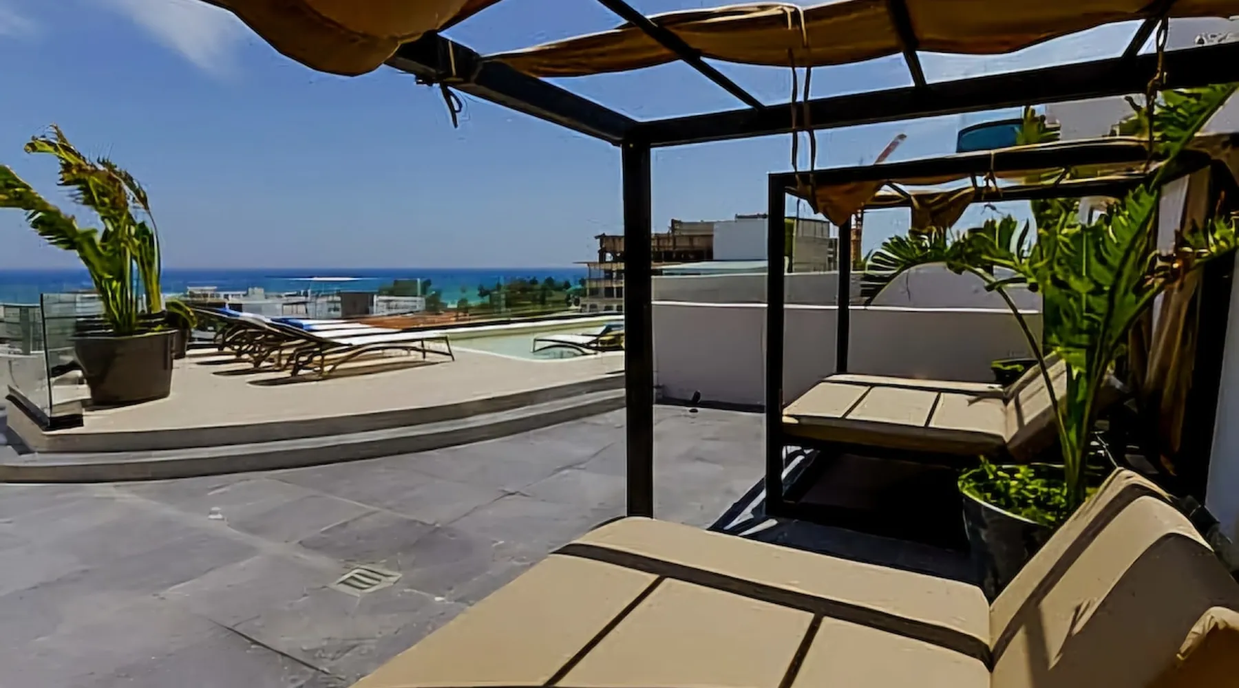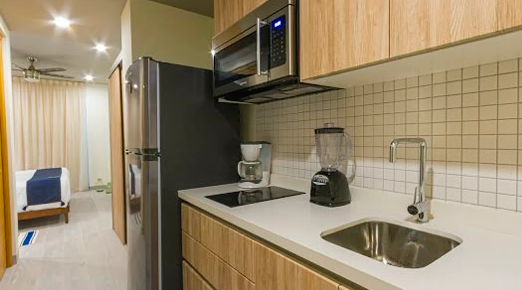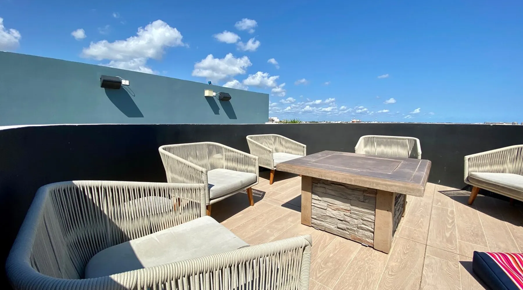So close to the sea that in less than a 5-minute walk you will reach Playa Pelícanos. So well located that when you leave the building you will have a pharmacy, shop, and restaurants such as Ojo de Agua and Salento. In the morning you can take yoga classes at Mandarino Beach Club. In the afternoon or evening, you have restaurants and bars with ocean views such as Piaggia or Peccato just a few steps away. If you want to spend the whole day at sea, you can do so at the Playa Martina club or go to some of the Blue Flag beaches. The space The room has an area of 32 m2, ideal for one or two people. Romantic if you want to go as a couple. Practical for its excellent location. It has a king-size bed where you will dream of the sand and sea you visited during the day. Relax and enjoy Playa del Carmen. Guest access In the building you will find 2 Lobbys, with enough armchairs to spend a few hours chatting or reading. It also has a work table and several chairs to share the cowork. The rooftop will welcome you with a good-sized pool and incredible ocean views. You can exercise in the gym at The Boat. Other things to note 1. Internet: El internet es veloz y estable, se pueden trabajar tranquilamente dos o más personas a la vez aun teniendo varios dispositivos conectados (teléfonos, computadoras y la televisión). Velocidad de 80 Megas 2. NO Aceptamos Mascotas de Ningun tipo 3. Check in is very simple: We give you a code 4. Early check in Availability is limited and must be requested prior to arrival. Make sure you receive confirmation from us after applying. To enhance your arrival experience, we offer a complimentary starter kit that includes toilet paper (2 Rolls), trash bag for the container, soap, shampoo, coffee, sugar, sweetener, and bottled water (1). These items will not be restocked and guests are encouraged to purchase locally if necessary. For your convenience, sheets and towels can be changed for an additional charge of 18 USD (the same applies to the full cleaning service). Daily cleaning is NOT included in the rental price. You just have to let us know 24 hours in advance to schedule our cleaning services. 4.⚡️ Electricidad Incluimos 15 kwh diarios como crédito de electricidad - 💡 Costo adicional por kWh: 5.5 MXN - 📊 Consumo promedio diario: 15kwh