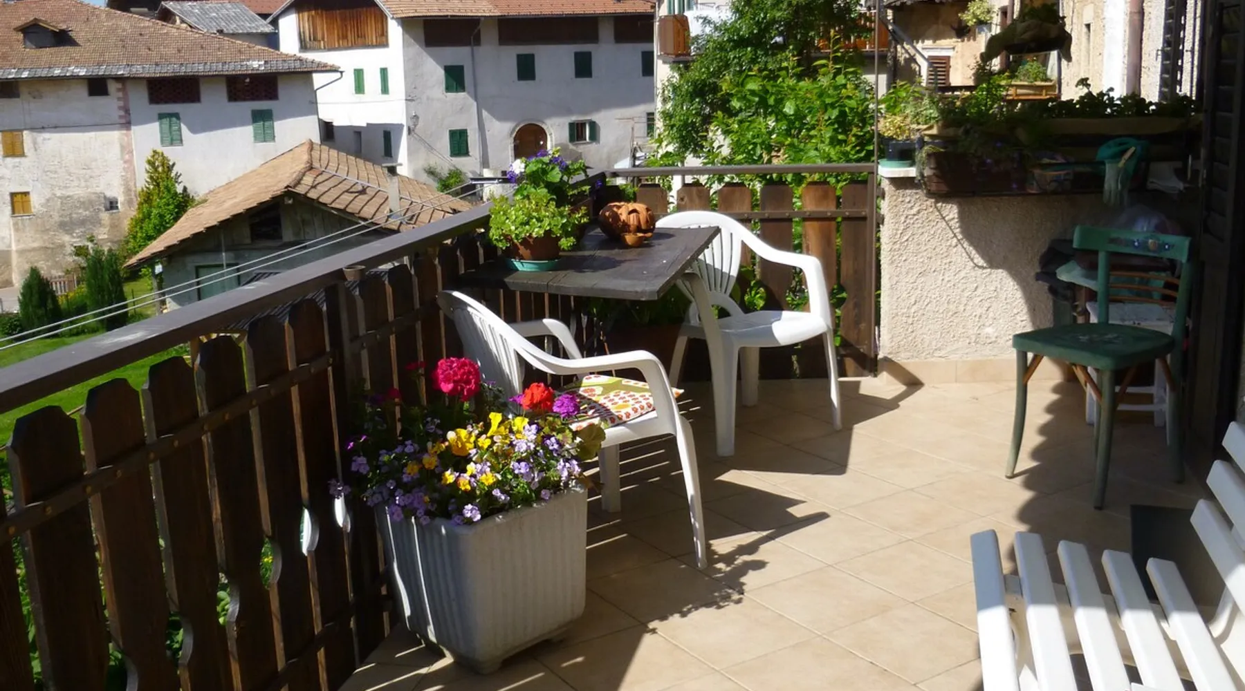 The space Sfruz, in Val di Non, at 1000 m. high, Villa Gobbo, so called because before the restoration it had all the walls crooked, is a house of the late 1700s in the historic center of the village, restored in the 80s with terrace and garden, is exposed to the sun from morning to evening, consists of three apartments. One consisting of entrance, kitchen, large double bedroom and attic with two beds the second is a studio attic two beds with kitchenette and bathroom. The third is occupied by the owners. Guest access The terrace and garden are available for guests. Registration Details it022173c2sp24qcaq