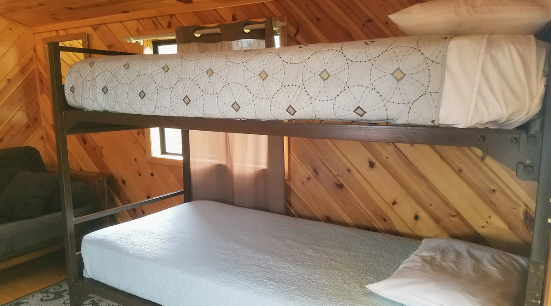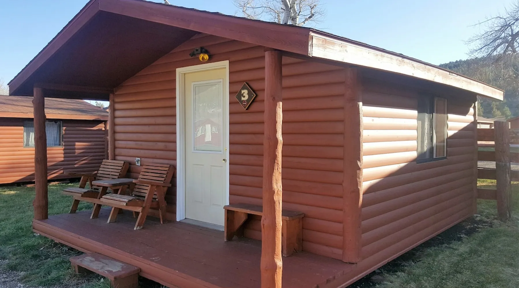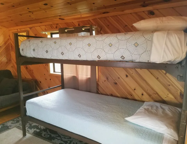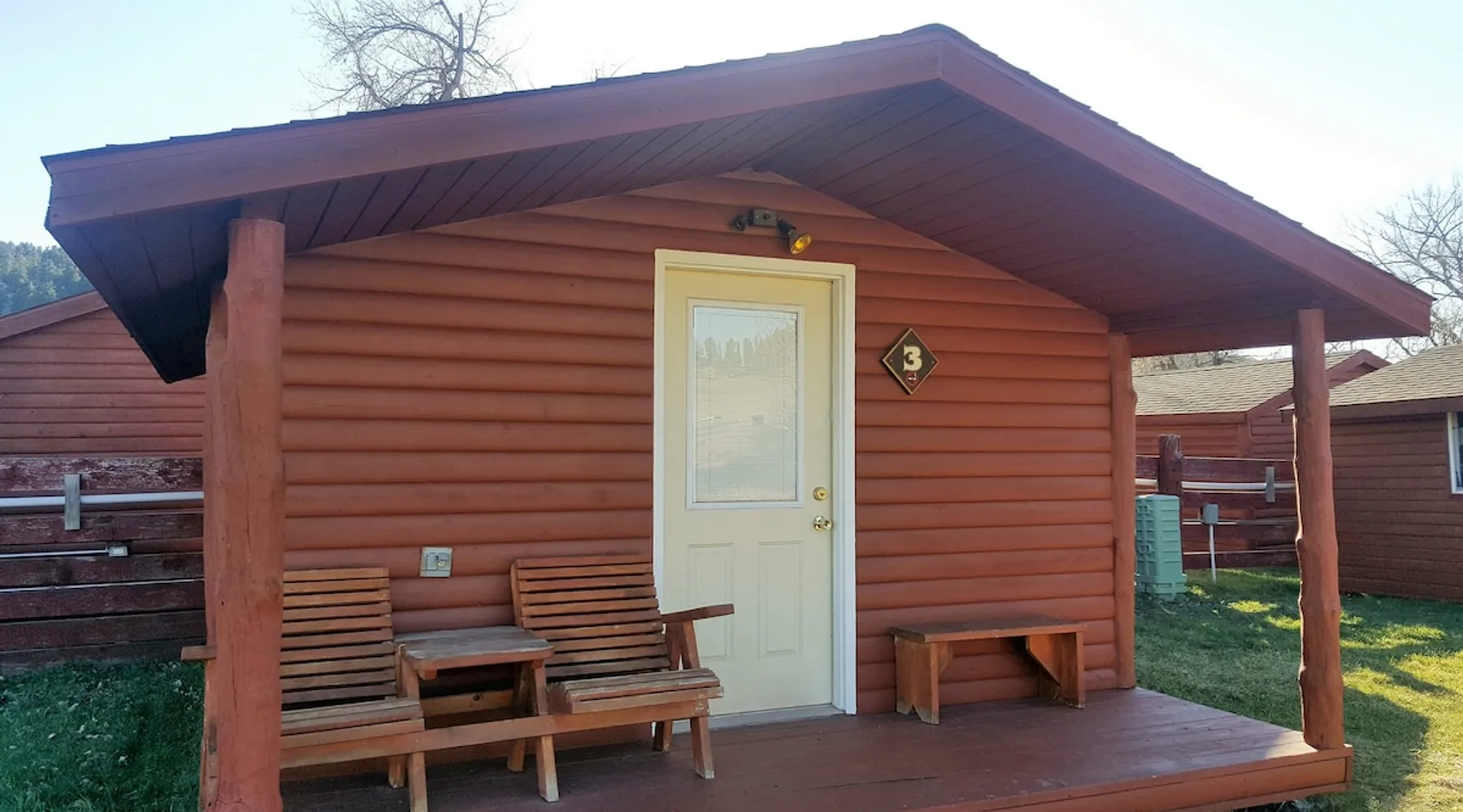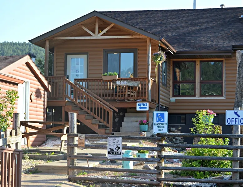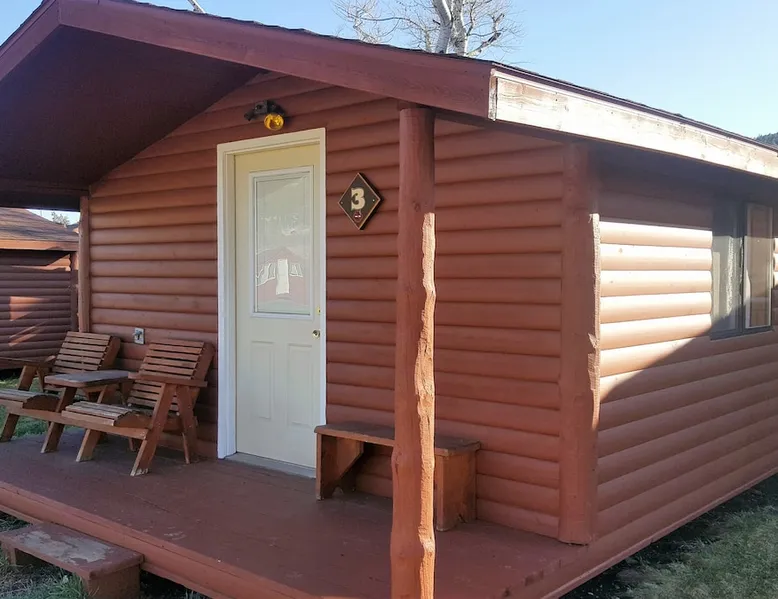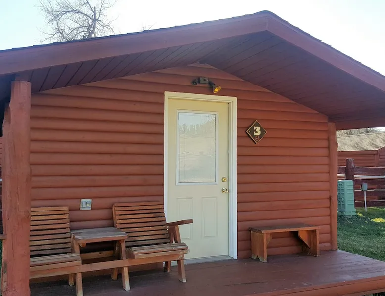 Come enjoy a peaceful stay in this cozy cabin. The cabin is located near the bath/shower houses, the bar and grill and a short walk to the pool. The space Cabin 3 is equipped with a queen bed, a set of bunk beds and a futon that folds out into a full. A dorm fridge, microwave, coffee pot (with condiments, coffee and cups), cable TV, pillows and air conditioning is also included. This cabin comes with professionally pressed linens and towels for a fresh, clean feel. You can also enjoy the weather and views from your own small porch with bench and 2 wooden chairs. THIS CABIN DOES NOT HAVE A BATHROOM BUT IS LOCATED WITHIN WALKING DISTANCE TO THE BATHHOUSE. Guest access During your stay at our campground, enjoy all of the amenities we have to offer, including breakfast (fees apply), a heated pool, above-ground hot tub, playground area, WIFI, coin-operated laundry facilities, shower house and bathhouse, on-site propane services, pool table, dart board, bar area and community natural gas fire pit. We also border the Black Hills National Forest giving you access to miles of hiking, biking and 4-wheeling trails. During your stay Our campground is open from May to October. We live here on the premises and are available at all times. Other things to note FYI...We do have a train that comes thru twice a day, once in the morning and again in the evening. Some guests claim it a nuisance where as others never even hear it.