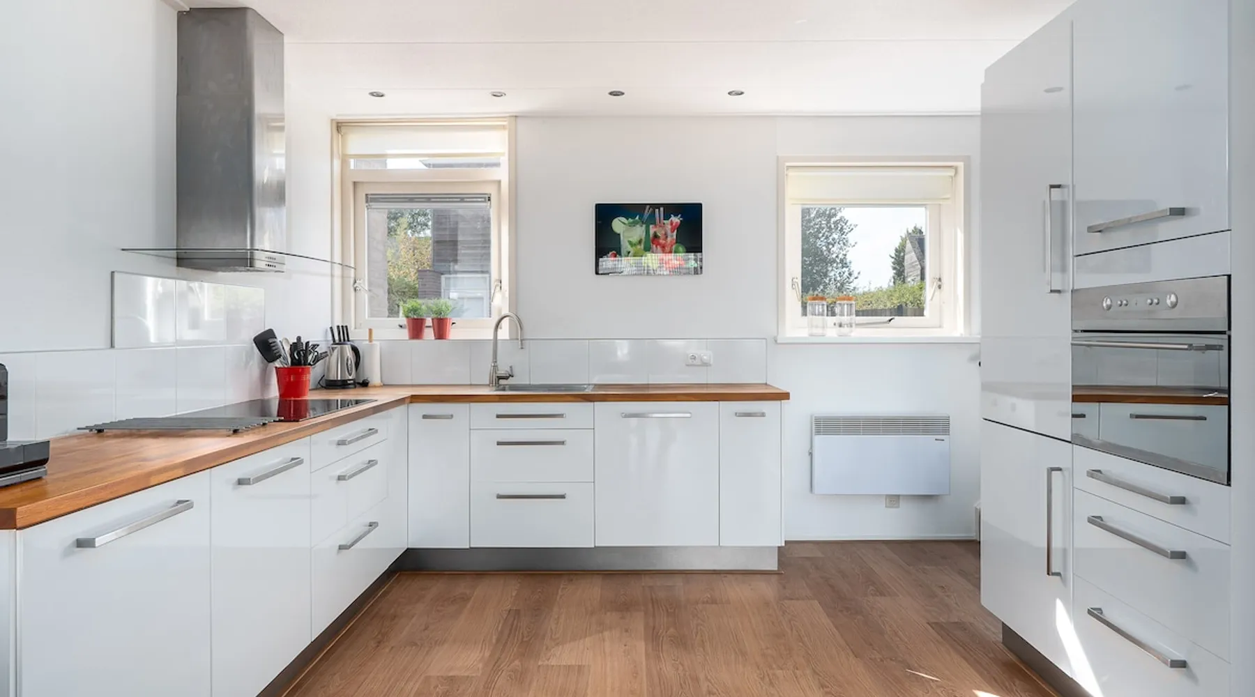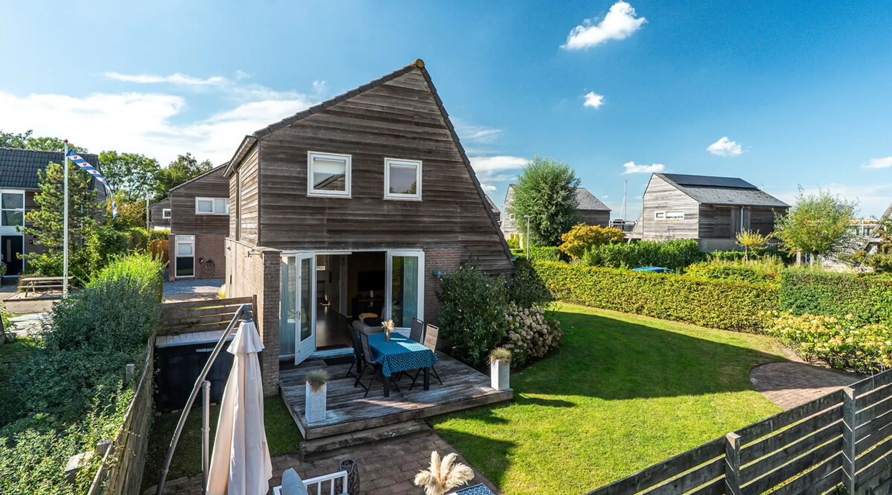 In the middle of Friesland, located on a corner lot, detached, complete, comfortable, bright and clean vacation home. The garden is spacious (350 m2) and conveniently located. Dog is welcome. Open water: 100 m walk (swimming). WiFi and electricity. Netflix. 2 bedrooms with 4 beds and 1 closet room with space for a child's bed. Well-equipped kitchen and lots of utensils. Two bicycles, two sun loungers and BBQ. Open water at 100 m walk. Quiet private park. Boat rental 5 min walk. Charging pole (5m). Longstay possible. The space Two private parking spaces, garden which is almost completely surrounded by a green hedge and is enclosed. Storage room with two ladies bikes (free), garden set (dining table and chairs), spacious lounge area with lovely pillows, two sunbeds. Charging station for car is 5 meters away. Living room with corner sofa and armchair, French door with fly screen to the garden. The open kitchen has an induction hob, dishwasher, combi oven, fridge and 3 drawers of freezer. Lots of cooking utensils, plates, glasses, cutlery etc. The house is very bright, due to the windows at the front (kitchen) and rear (living room). Hall, WC with wash-hand. Originally, it is a 6-person house. 1st floor; two fully furnished bedrooms with a bed with a mattress that is 160 wide, and the other bedroom has two separate beds (is not yet a photo of). One bedroom is furnished as a closet room, here a cot can be added or used as a work space (table is provided). The ceilings on the first floor run diagonally up and there are roller screens everywhere. Bathroom with heating, toilet, washbasin and an extra spacious shower cabin with rain and hand shower. Separate storage closet with washing machine, dryer, ironing board, iron, drying racks and vacuum cleaner. The house is conveniently located on a corner and is completely furnished and is very clean. Bedding, bath and kitchen towels are ample, as well as soap pumps and shower gel, washing and dishwasher pods, oil and various herbs. This is all at your disposal free of charge. Nespresso machine for small cups, milk frother, kettle, citrus press, blender, toaster, mixer, hand mixer. BBQ and fans. Smart TV, Netflix and Wifi are provided. Outside in the lounge area is also Wi-Fi and electricity. Boat rental: Grou is a real water sports village. You can rent boats in a number of places, also very close to the house (5 min walk). Kids: The house is not directly on the water and is fenced, which poses no danger for smaller kids. There is space to put a cot(s) (preferably bring your own). There are various small and somewhat larger playgrounds. Stokke chair (also for babies who can just sit), games table with chairs and some toys are available. Dog: Dog is allowed on request. Longer stay allowed, please contact owner. Guest access The entire house, parking for 2 cars, storage room and garden are available to you. Other things to note -Skûtsjesilen is from July 26 to August 8, 2025 - Final cleaning €100,- -Borg €100,-, it will be refunded after everything is well found and possibly settled with the energy costs -Energy cost: Advance €7.00 per night, later on the meter to be settled -for 1 or 2 dogs an additional €40 fee is charged -Tourist tax from 5 years of age: €1.65 p.p.p.n - After your reservation, you will receive an email with these additional costs and a guest registration.