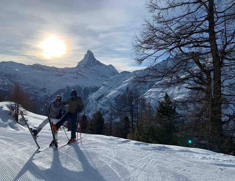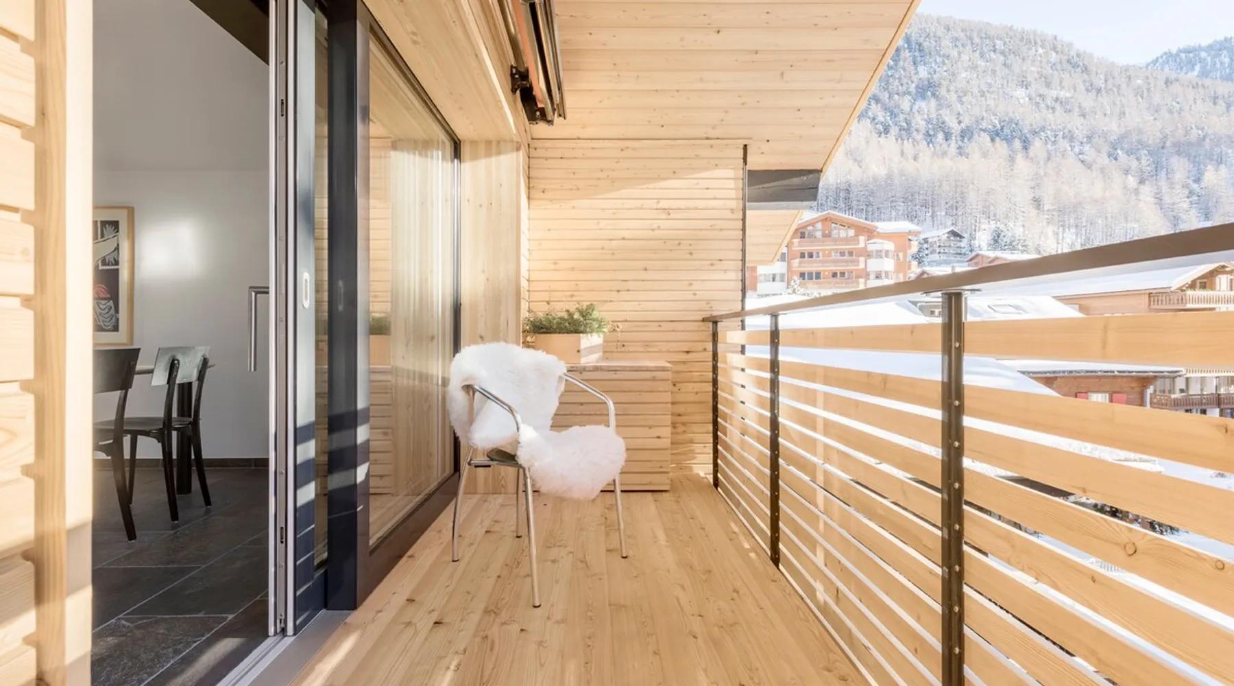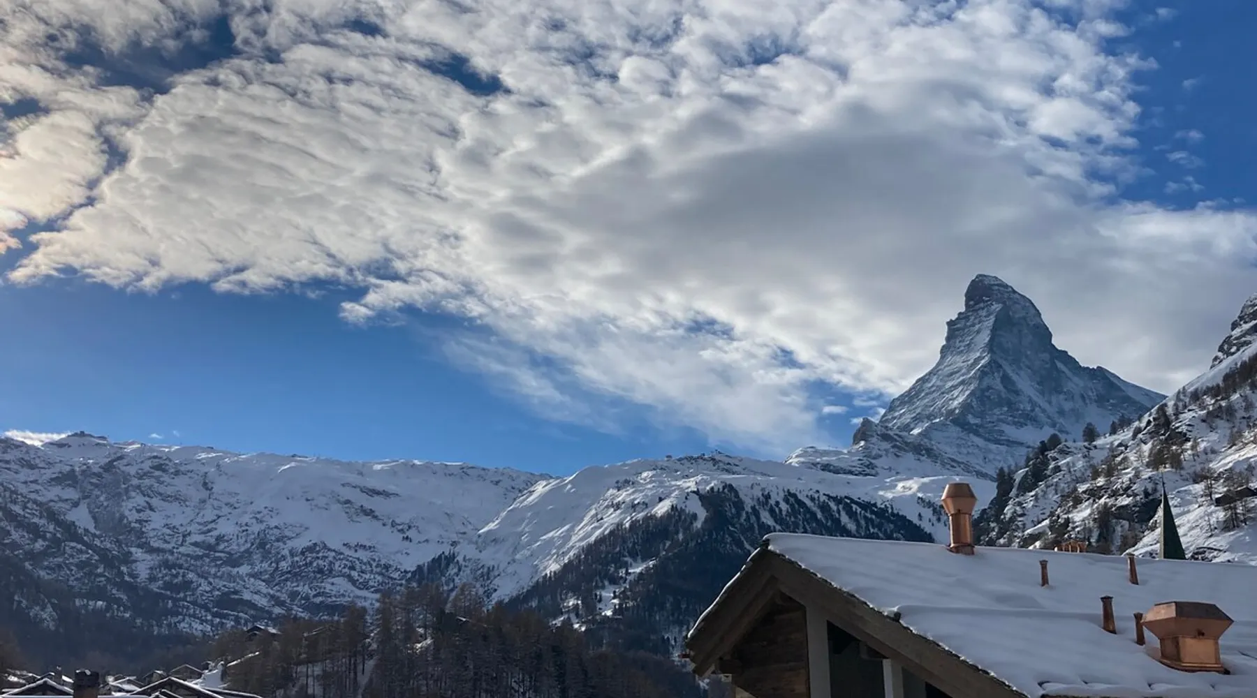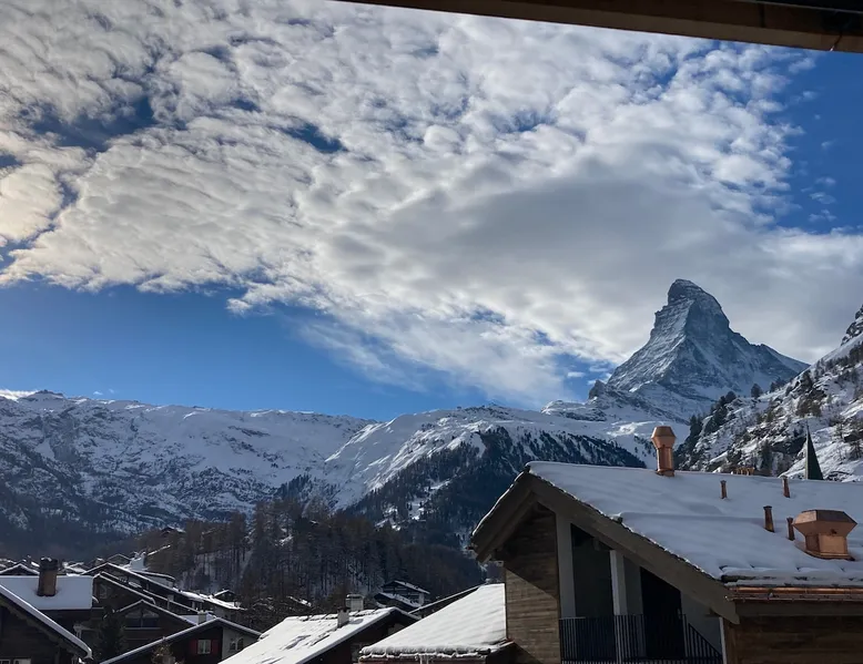 My place has great views, is close to restaurants and family-friendly activities. You'll love my place because of the proximity to all the railways and the village. My place is good for couples and families (with kids, there are cribs, high chairs and toys available). The house is not on a slope. Very good access. The space In the living room, there is a comfortable seating area from which you can look directly at the Matterhorn and also the village church. It's great how you can sometimes watch the weather when dark clouds gather on the Matterhorn, but also when it is bathed in light from the sun like a crystal. Guest access The entire apartment is at the guests' disposal. Cook together, eat at the big table and then enjoy the sunset behind the Matterhorn on the south balcony. These are real vacations in my house. Other things to note The house is newly lined with lots of wood. On the two balconies you can enjoy the fresh mountain air and of course the fantastic view of the imposing Matterhorn.