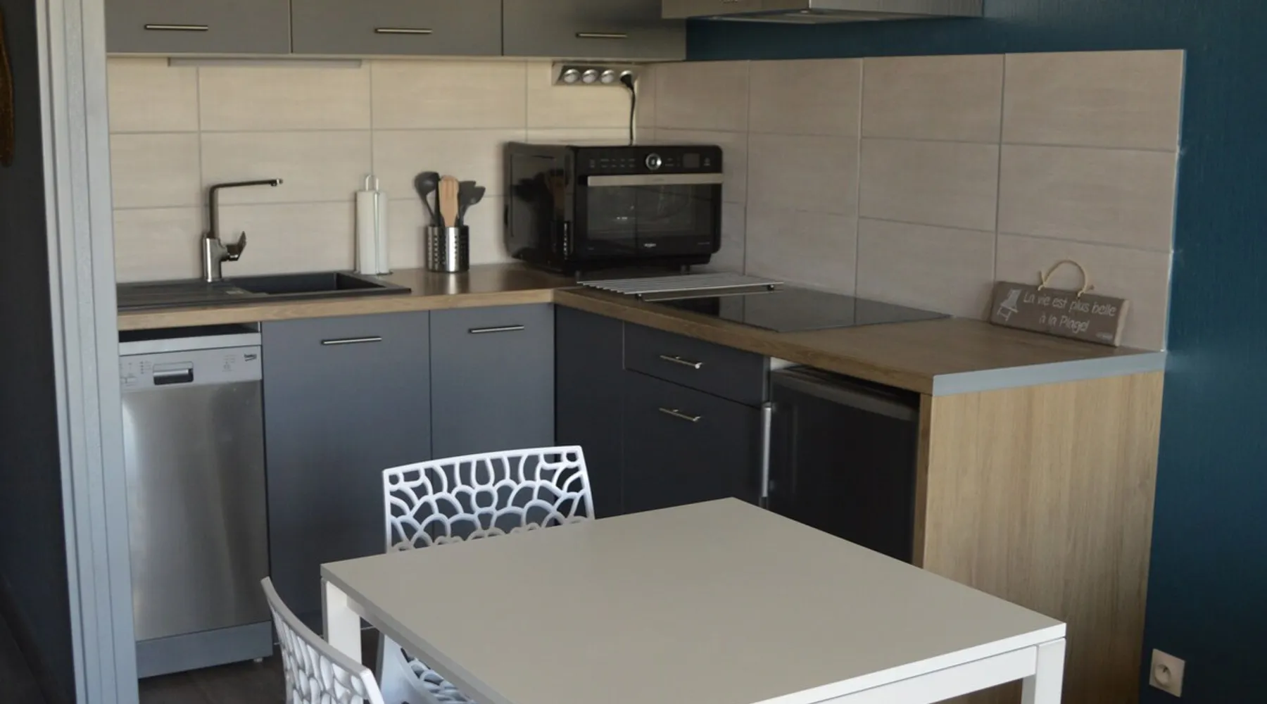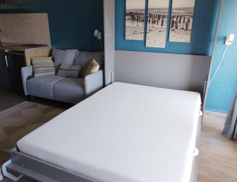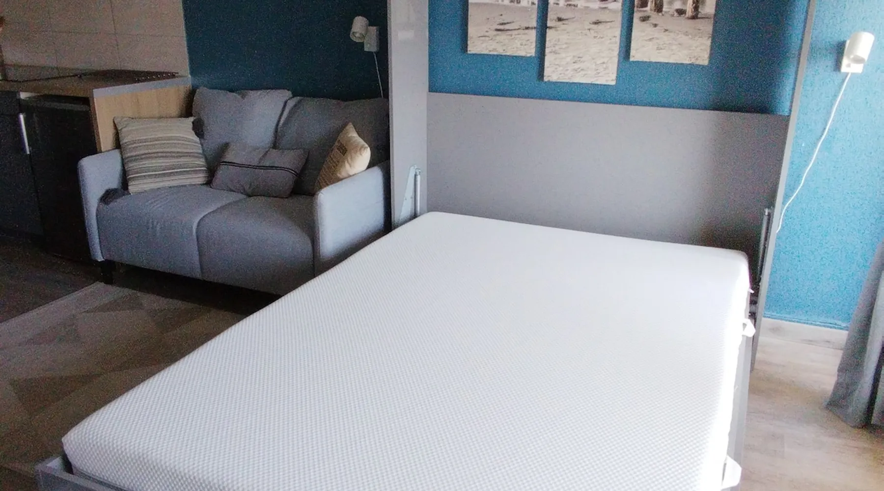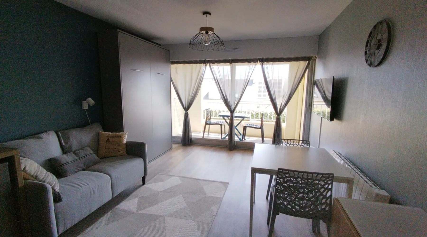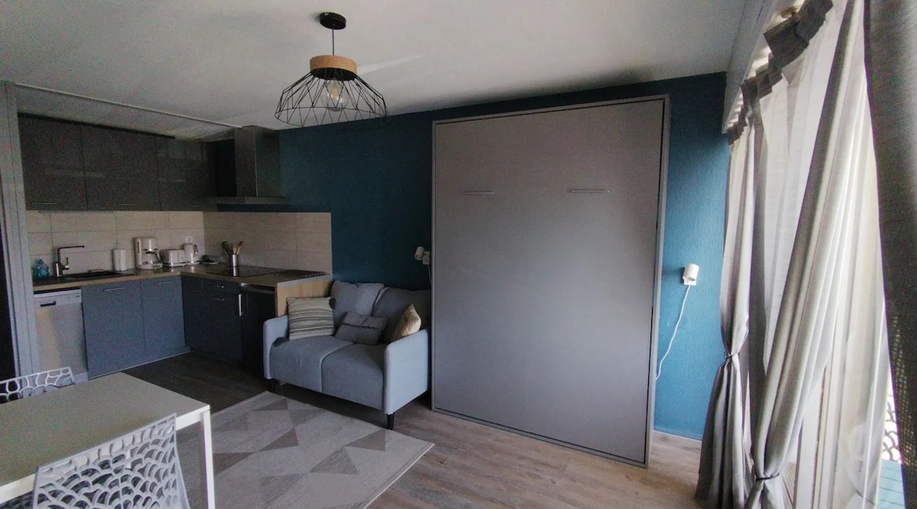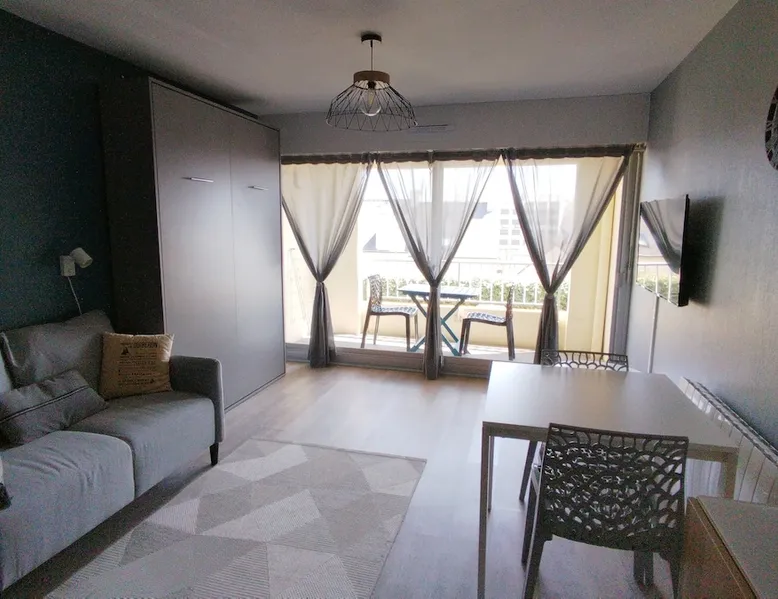 Fully renovated 25 m2 studio, close to everything, you can leave your car in the parking space and do everything on foot to make the most of Quiberon . Close to the jetty for Belle-Ile, the large beach, the Côte Sauvage, the fishing port, the city center with its Saturday market, the cinema, the Casino, the swimming pool. You will love our place for its location, calm, brightness, unobstructed view, terrace and cozy renovation The space Studio on the 1st floor without elevator of a quiet residence. Ideally located in a lively area close to the seafront promenade area, close to the city center, the large beach and the pier. Completely renovated and recently decorated With a fully equipped kitchen (fridge, combined microwave oven, dishwasher, induction hob, toaster, kettle, filter coffee maker), table and 2 chairs (provision of a baby high chair) With a foldaway bed with a real memory foam mattress 140 x 200 cm, 1 duvet 240 x 220 cm and 2 pillows 60 x 60 cm Terrace with small dining area and unobstructed view With a TV, 110 cm flat screen, hanging on the wall and WIFI INTERNET With a bathroom / bathtub and toilet with drying towel holder Electrical heating Private parking space attached to the residence NO LINENS (no sheets, towels, bath mats, no dish towels) Guest access The accommodation is on the 1st floor without elevator. The private parking space dedicated to our studio is located right next to the residence. Other things to note We don't provide linens, sheets, towels, or tea towels Cleaning to be done by you on your departure Please leave the accommodation to your successor as you wish to find it on arrival. We rely on your responsibility and on your respect for the equipment available, it is up to everyone's comfort No smoking allowed