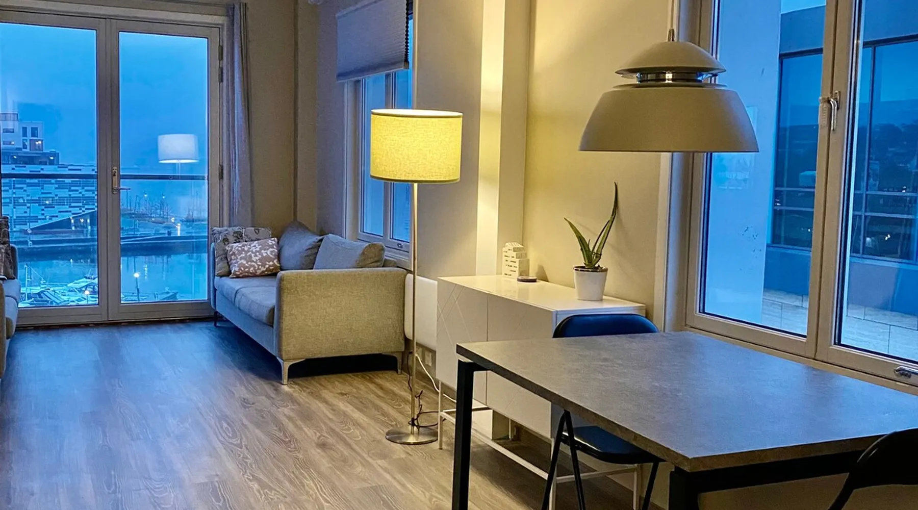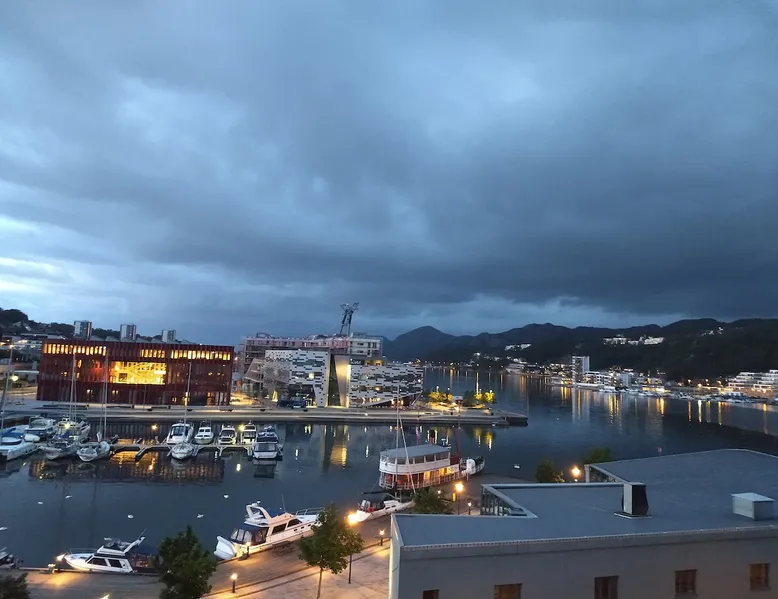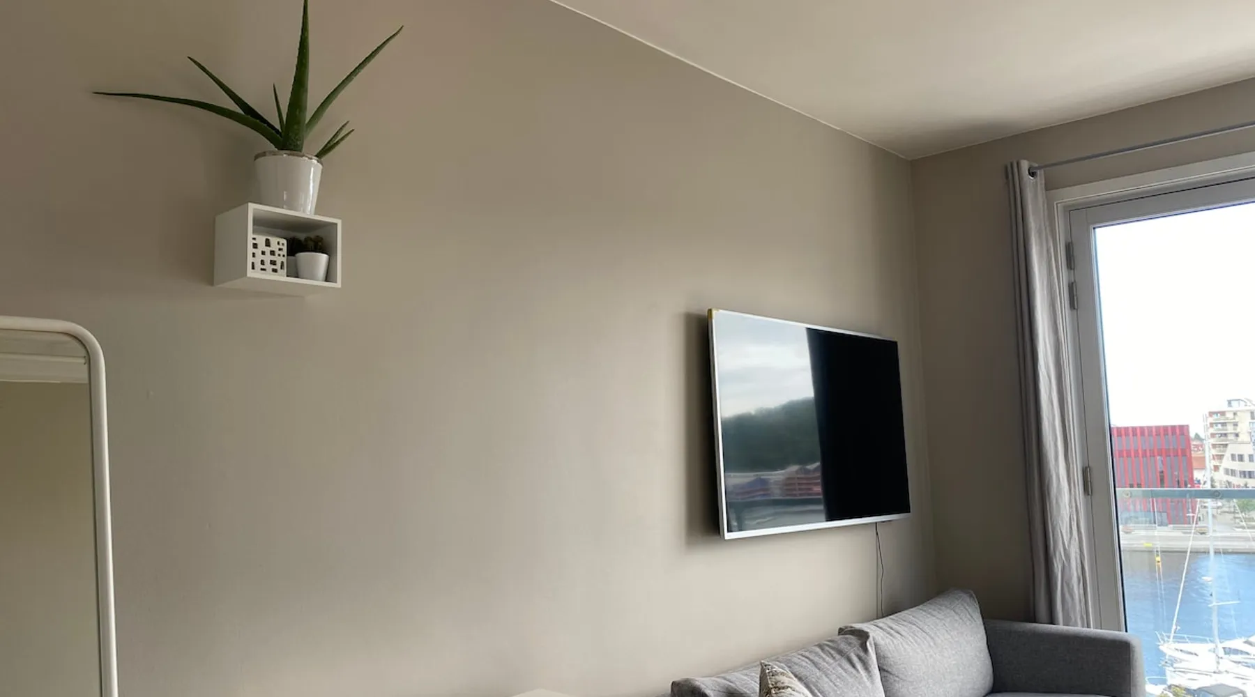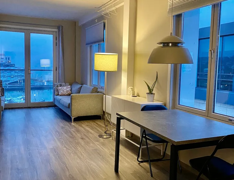 Beautiful 38m2 apartment in 5. floor. Amazing view. One bedroom. Safe and clean. Closed parking for 1 car included. Heated bathroom floor. Nice apartment on the 5th floor with fantastic sea views. A bedroom. Heating cables in bathroom. 58" TV. We live in the apartment ourselves, but rent out the entire home when we do not need it on weekends and some other days. The space Bright and nice apartment in Sandnes Sentrum. Få minutter fra buss/tog og Amfi kjøpesenter. God takhøyde, fransk balkong og hvitevarer tilgjengelig for bruk. Beautiful apartment in Sandnes City. Few minutes walking distance to foodstore, fitness club, mall (Vågen Amfi), restourants (egon,Noi,Dominos), and to the train/bus station. There is also Sanvedparken and Dalsnuten close to the apartment worth seeing. Wonderful natural places to walk around. Guest access All apartment on the 5th floor and 1 free parking space in closed facility is available In addition, there is a bike stand on the ground floor. Free parking for one car. Also free parking for bikes in first floor. Other things to note Kitchen fan does not pull well. Up to 2 guests can book, these must be disclosed upon booking. Guest may not have other overnight visits. Shower with shower curtain. Not allowed to have sleepovers.