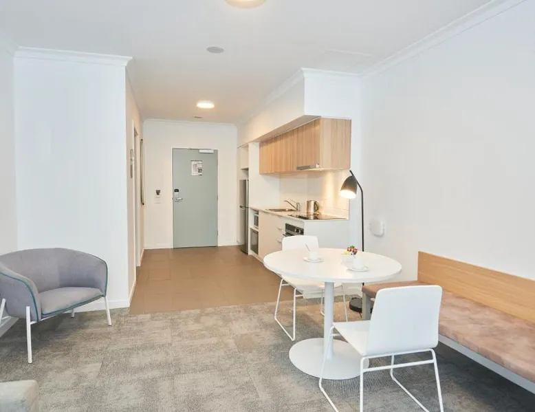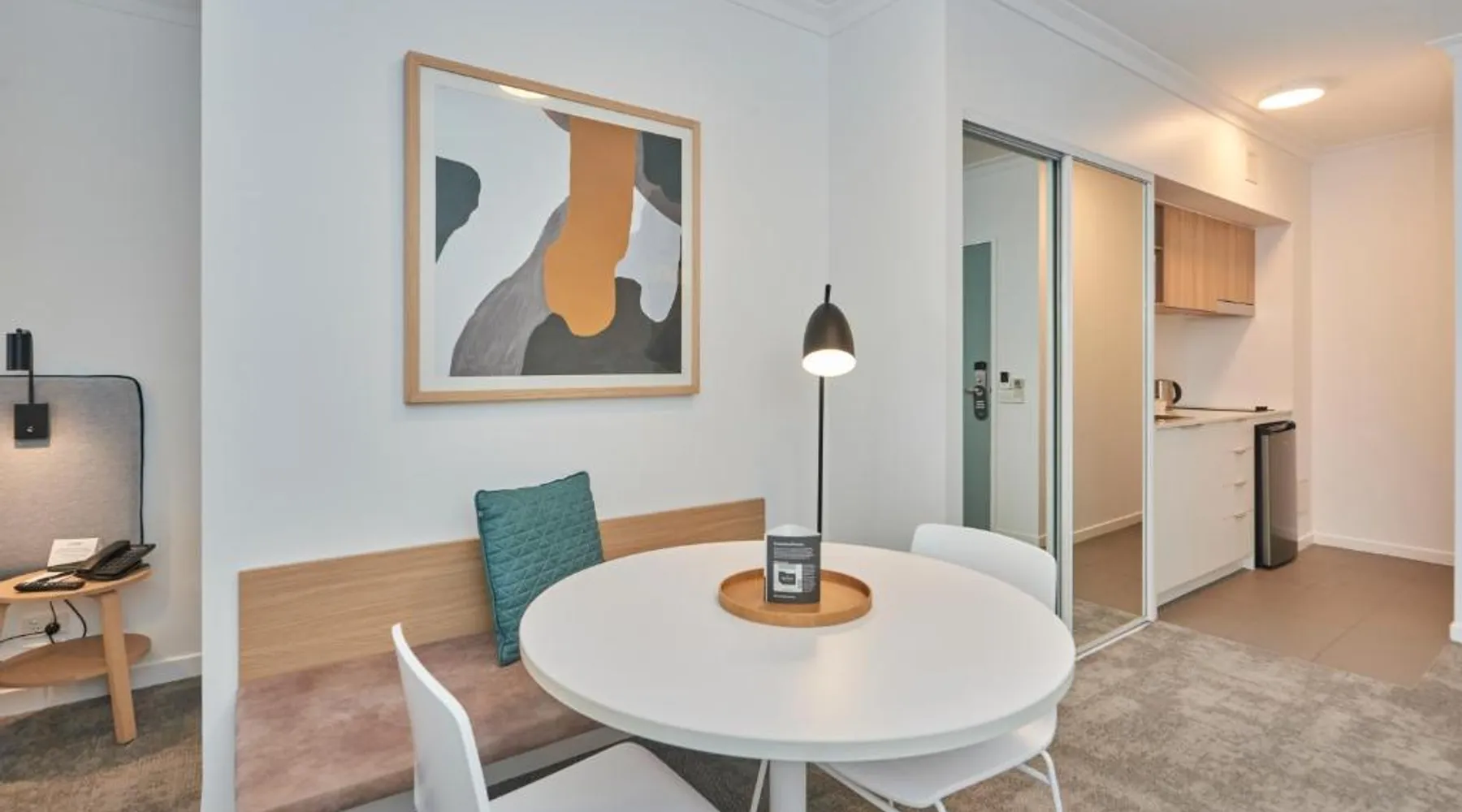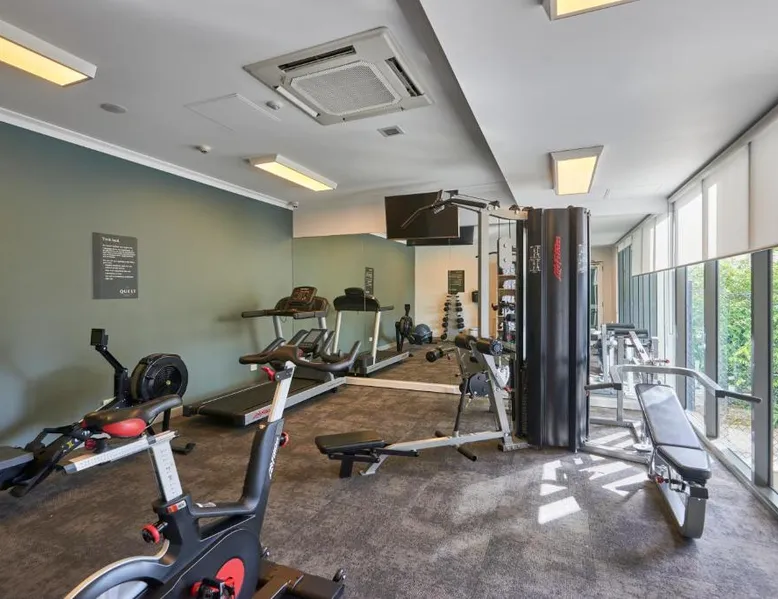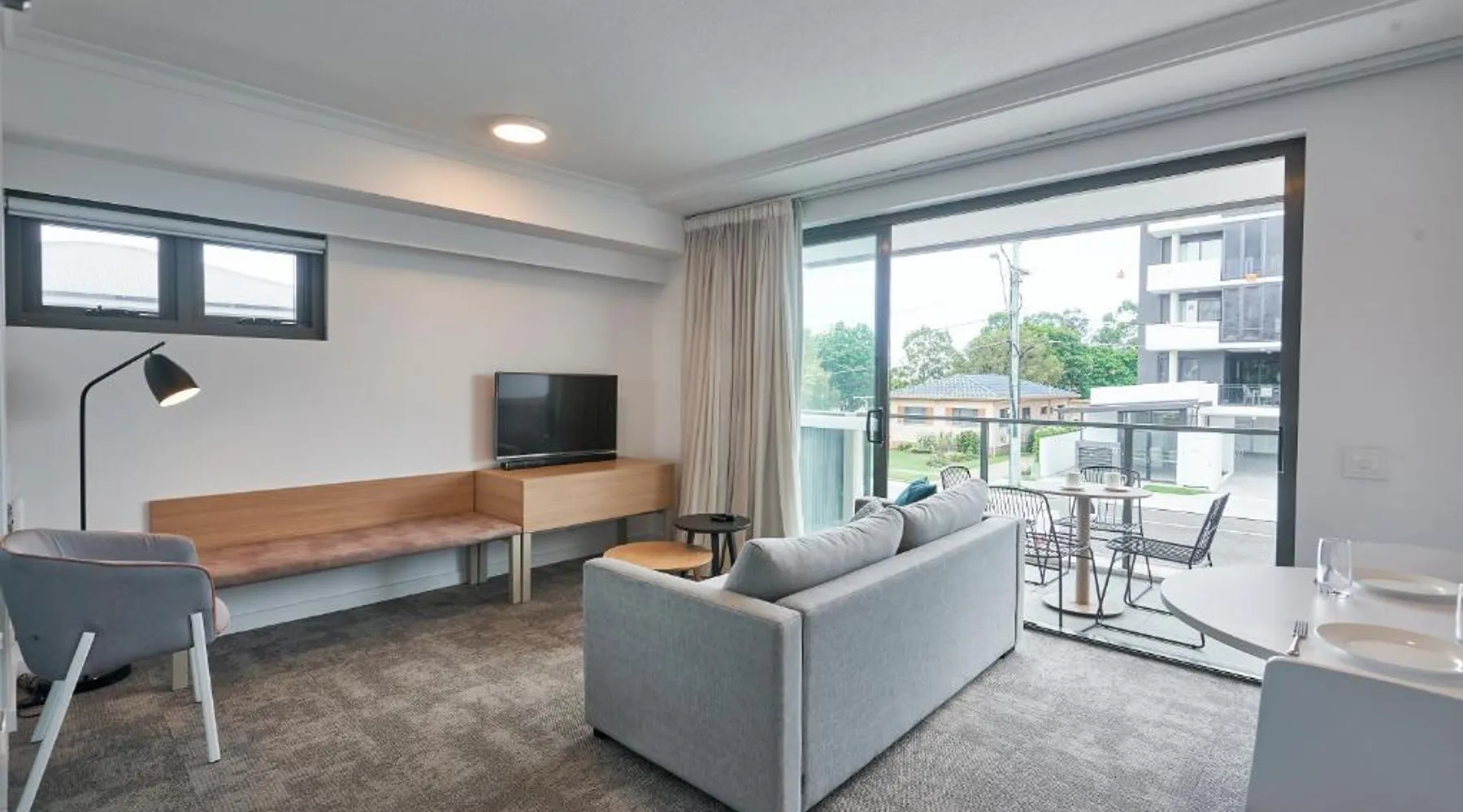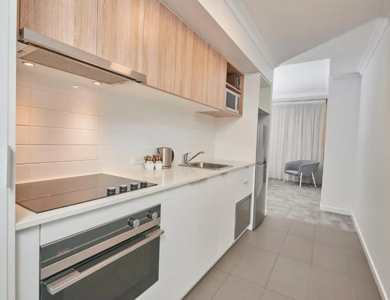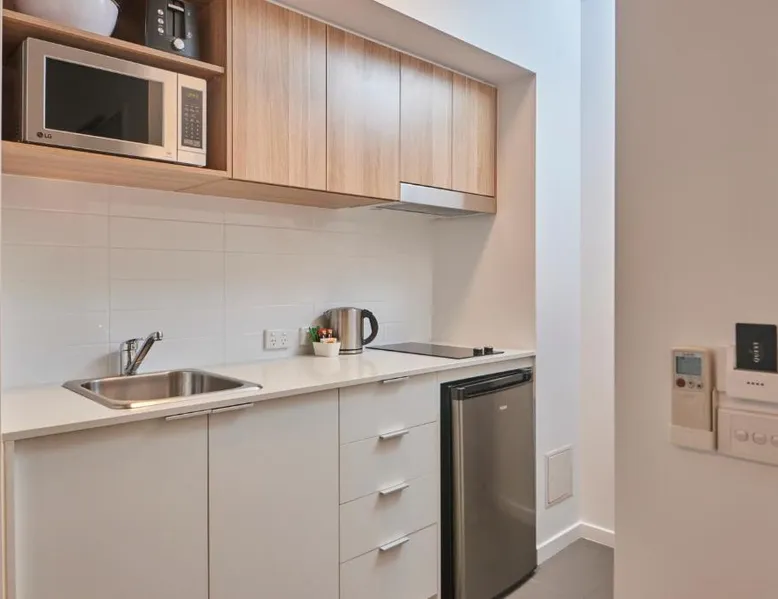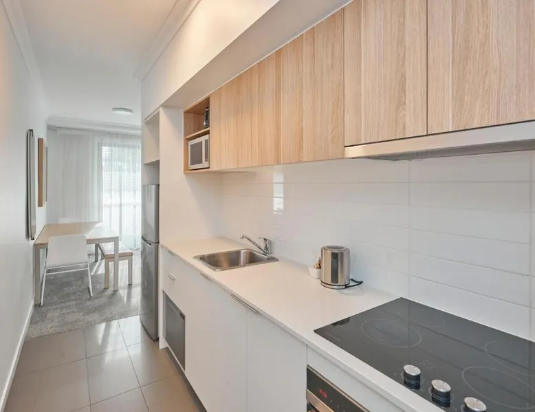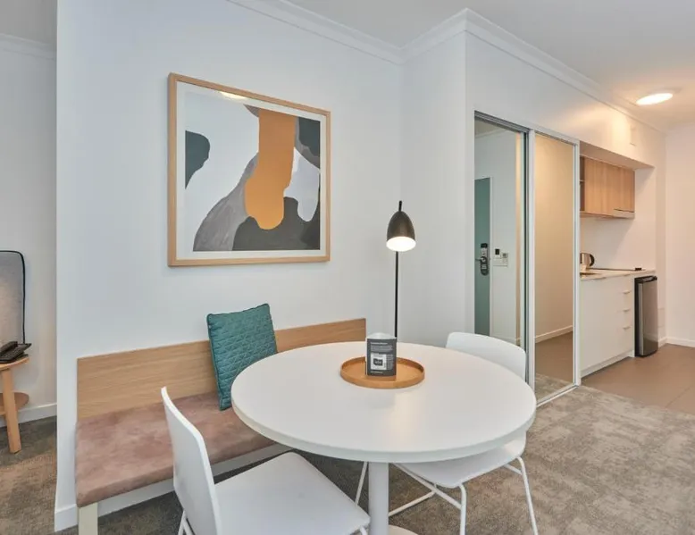 Comfortable Accommodations: Quest Cannon Hill in Brisbane offers family rooms with air-conditioning, private bathrooms, and modern amenities. Each room includes a work desk, dining area, and free WiFi, ensuring a pleasant stay. Exceptional Facilities: Guests can enjoy a fitness center, sun terrace, and a year-round outdoor swimming pool. Additional facilities include a sauna, steam room, and outdoor seating area, providing ample opportunities for relaxation and leisure. Convenient Location: Located 5.6 mi from Brisbane Airport, the aparthotel is close to attractions such as The Gabba (4.3 mi) and Story Bridge (4.3 mi). Nearby points of interest include South Bank Parklands and Queen Street Mall, each within 6.2 mi. The air-conditioned apartment has 1 bedroom and 1 bathroom with a shower and a hairdryer. Guests can make meals in the kitchenette that features a stovetop, a refrigerator, kitchenware and a microwave. The apartment features carpeted floors, a seating area with a flat-screen TV with streaming services, a mini-bar, a tea and coffee maker, as well as a dining area. The unit has 1 bed.