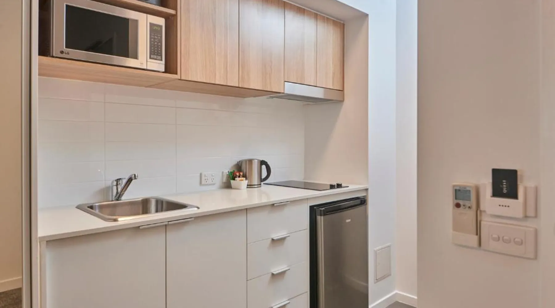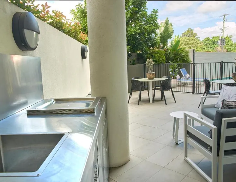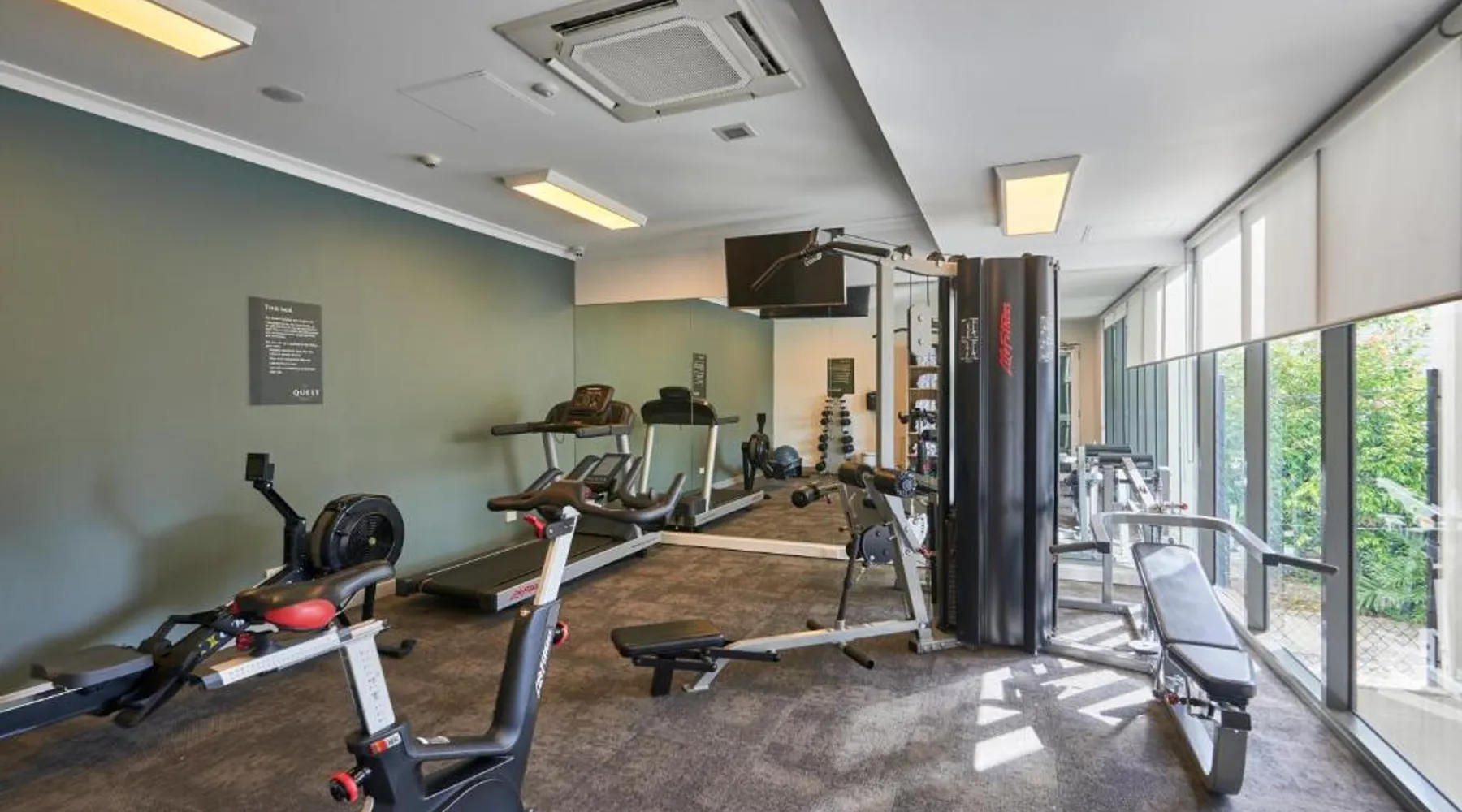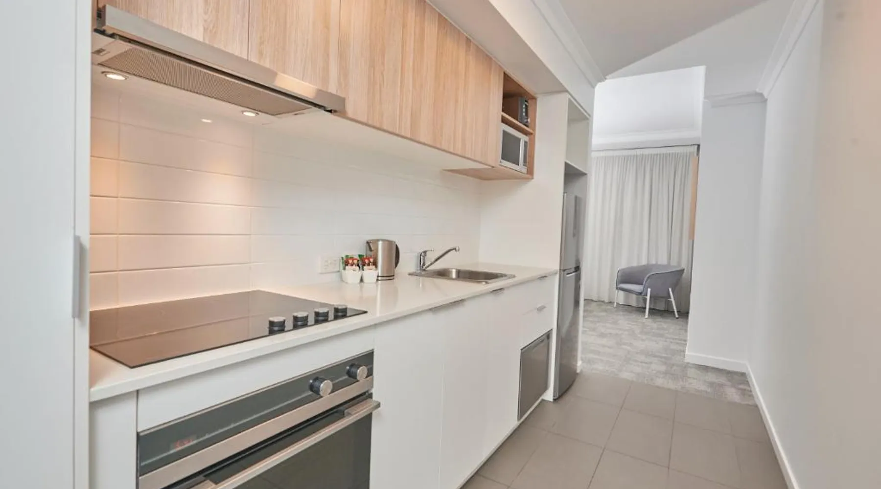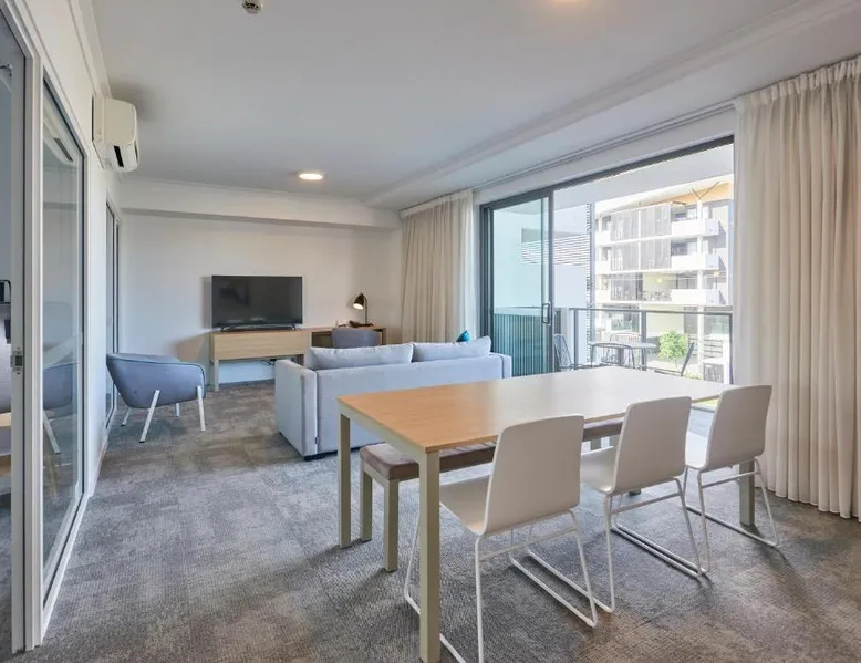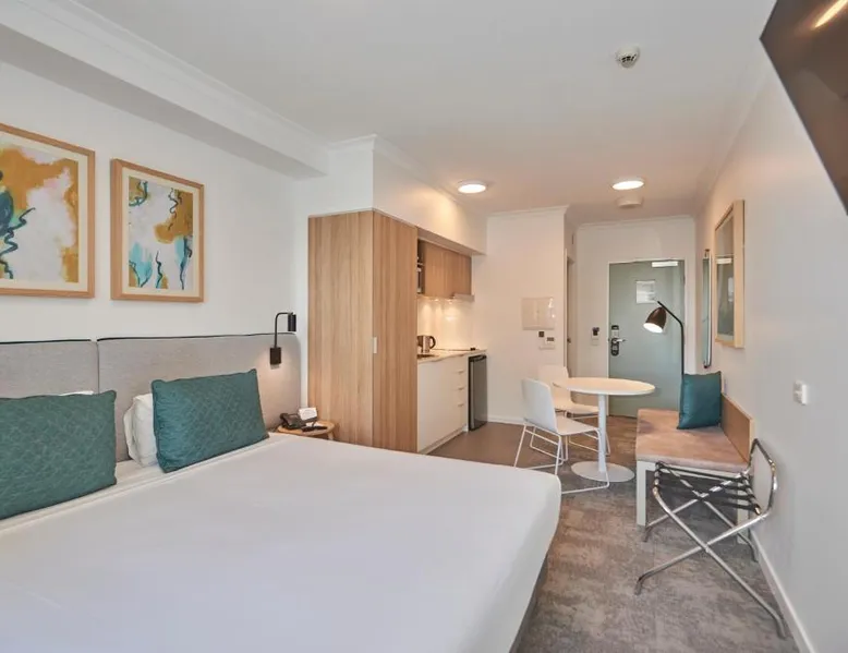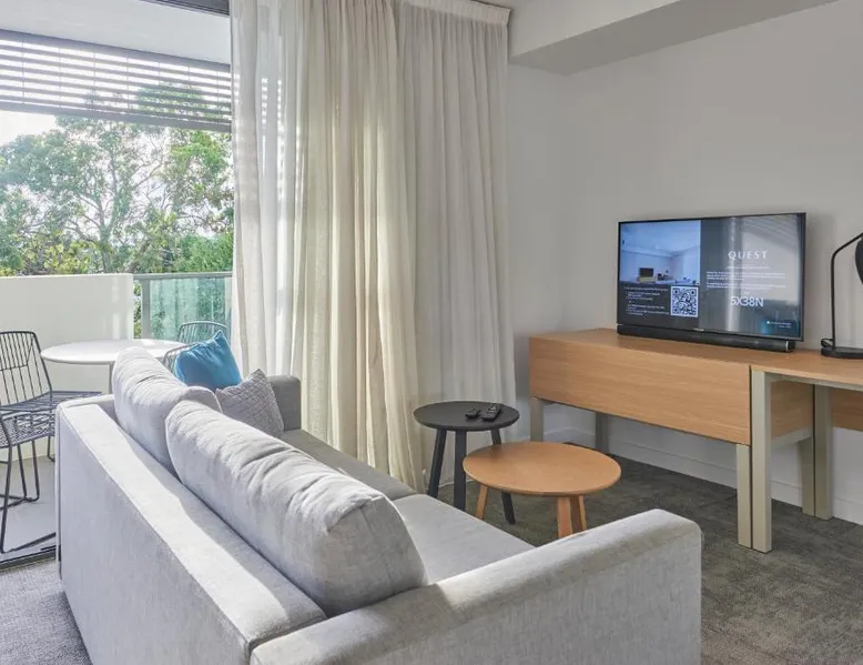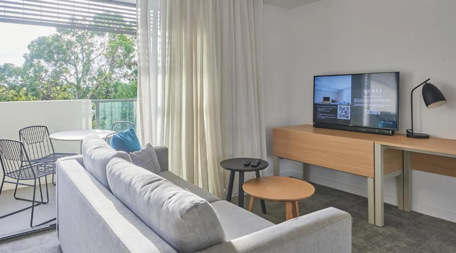 Comfortable Accommodations: Quest Cannon Hill in Brisbane offers family rooms with air-conditioning, private bathrooms, and modern amenities. Each room includes a work desk, dining area, and free WiFi, ensuring a pleasant stay. Exceptional Facilities: Guests can enjoy a fitness center, sun terrace, and a year-round outdoor swimming pool. Additional facilities include a sauna, steam room, and outdoor seating area, providing ample opportunities for relaxation and leisure. Convenient Location: Located 5.6 mi from Brisbane Airport, the aparthotel is close to attractions such as The Gabba (4.3 mi) and Story Bridge (4.3 mi). Nearby points of interest include South Bank Parklands and Queen Street Mall, each within 6.2 mi. The air-conditioned apartment has 1 bedroom and 1 bathroom with a shower and a hairdryer. Guests can make meals in the kitchenette that features a stovetop, a refrigerator, kitchenware and a microwave. The apartment features carpeted floors, a seating area with a flat-screen TV with streaming services, a mini-bar, a tea and coffee maker, as well as a dining area. The unit has 1 bed.