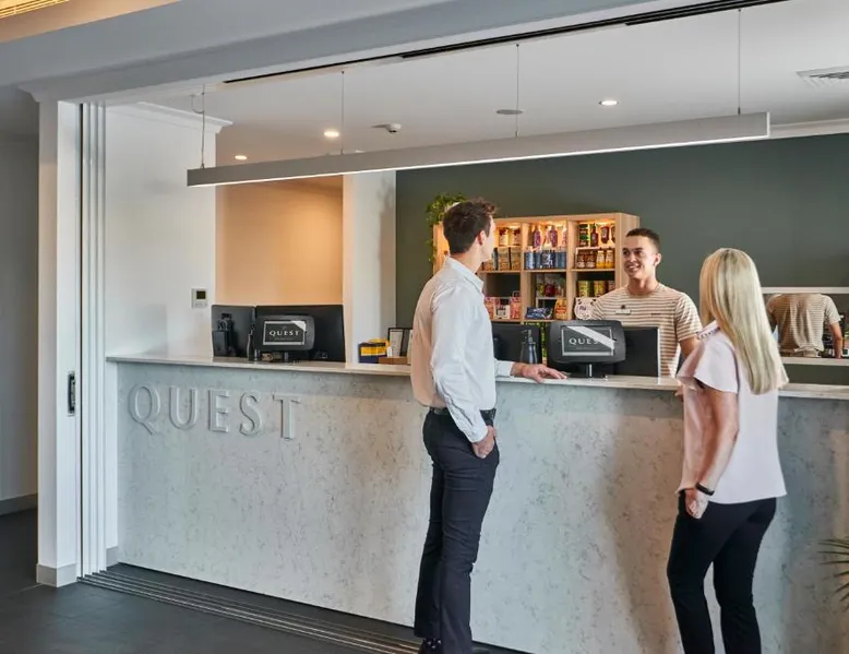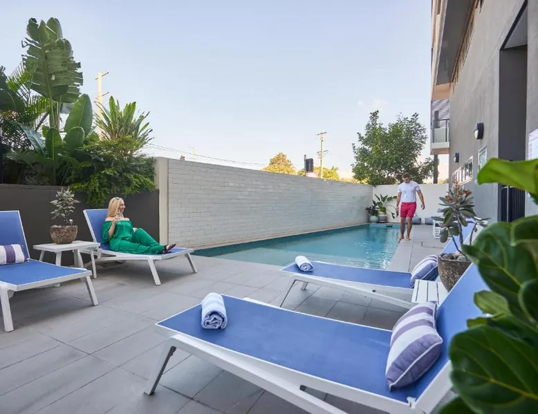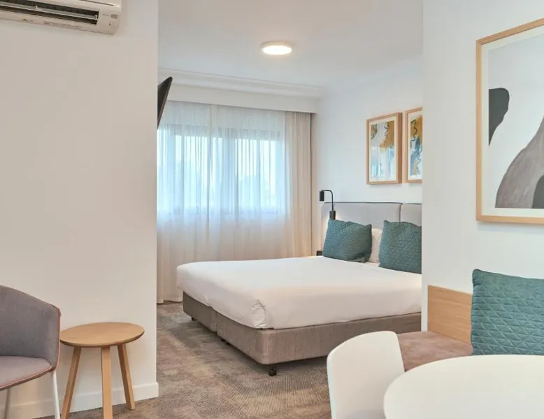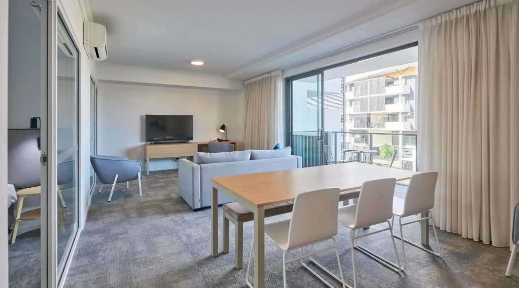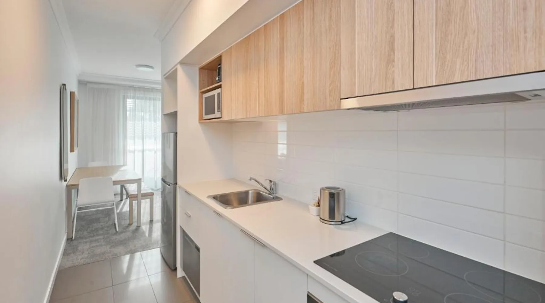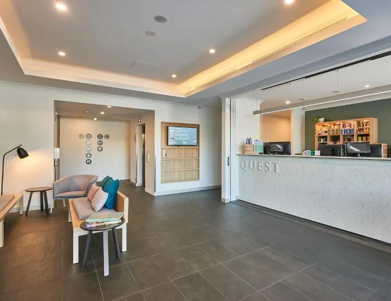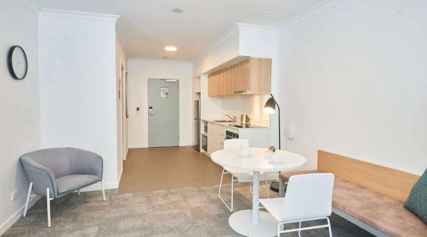 Comfortable Accommodations: Quest Cannon Hill in Brisbane offers family rooms with air-conditioning, private bathrooms, and modern amenities. Each room includes a work desk, dining area, and free WiFi, ensuring a pleasant stay. Exceptional Facilities: Guests can enjoy a fitness center, sun terrace, and a year-round outdoor swimming pool. Additional facilities include a sauna, steam room, and outdoor seating area, providing ample opportunities for relaxation and leisure. Convenient Location: Located 5.6 mi from Brisbane Airport, the aparthotel is close to attractions such as The Gabba (4.3 mi) and Story Bridge (4.3 mi). Nearby points of interest include South Bank Parklands and Queen Street Mall, each within 6.2 mi. The air-conditioned apartment has 1 bedroom and 1 bathroom with a shower and a hairdryer. Guests can make meals in the kitchenette that features a stovetop, a refrigerator, kitchenware and a microwave. The apartment features carpeted floors, a seating area with a flat-screen TV with streaming services, a mini-bar, a tea and coffee maker, as well as a dining area. The unit has 1 bed.