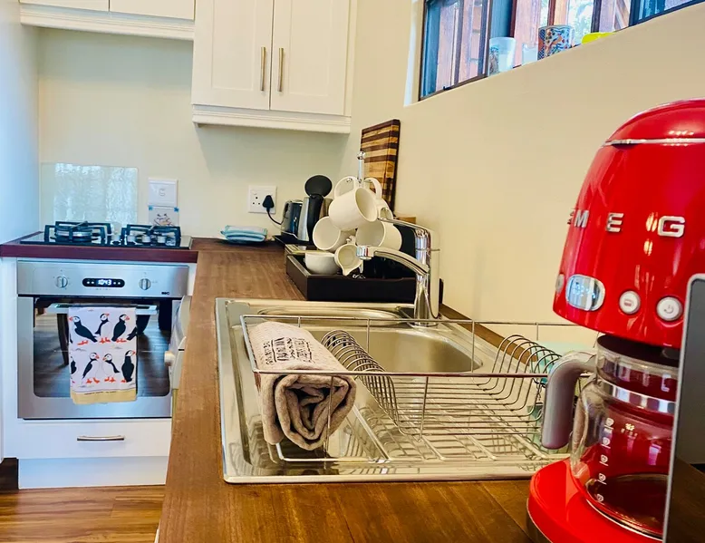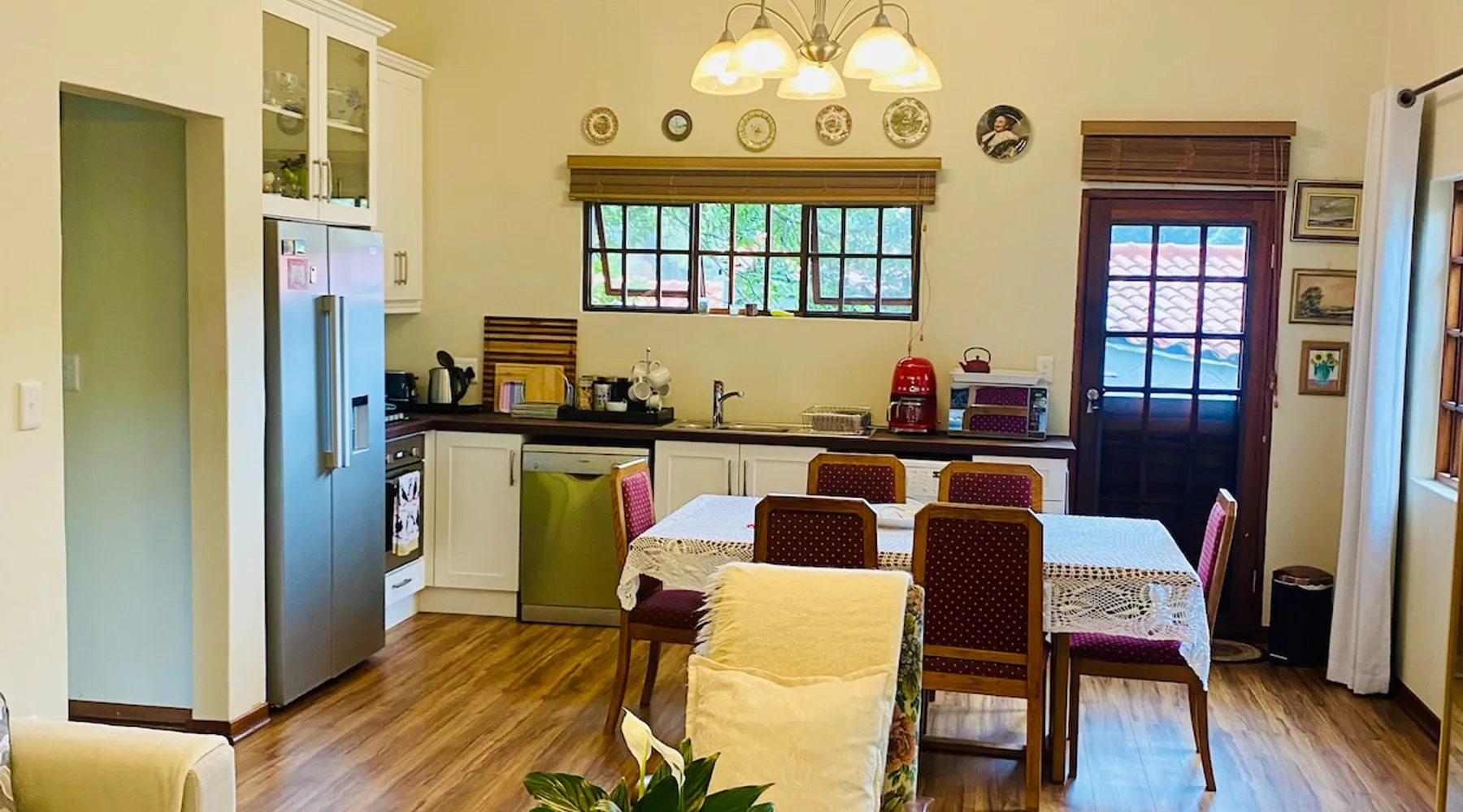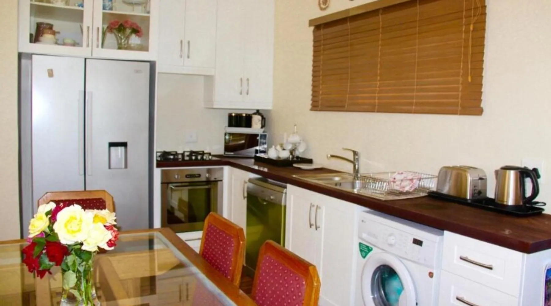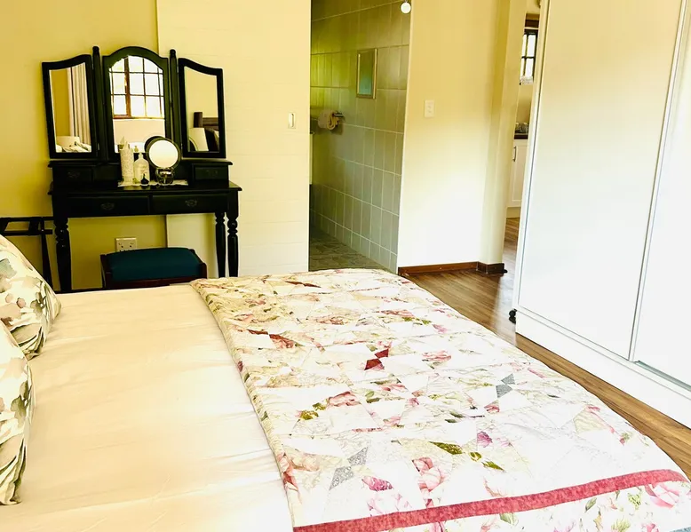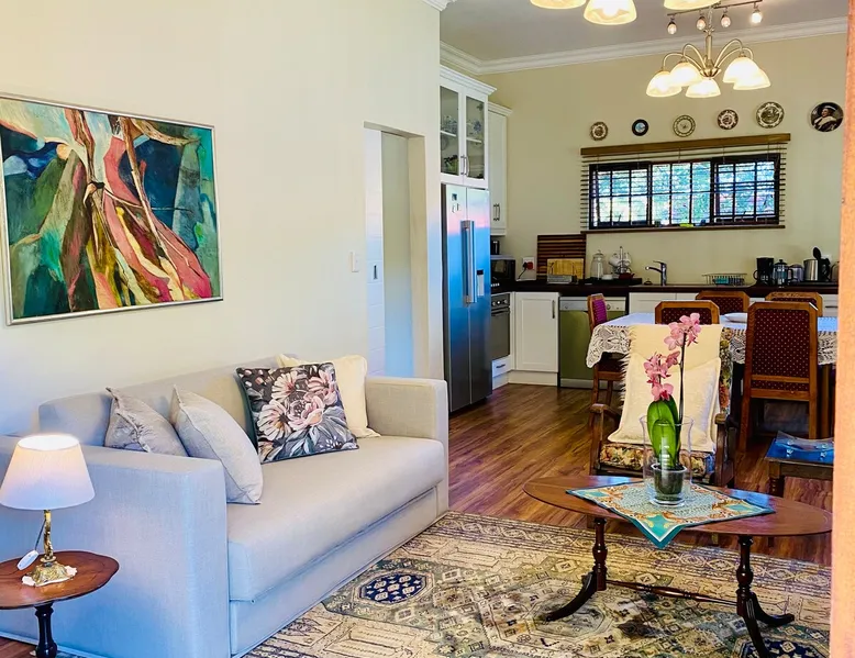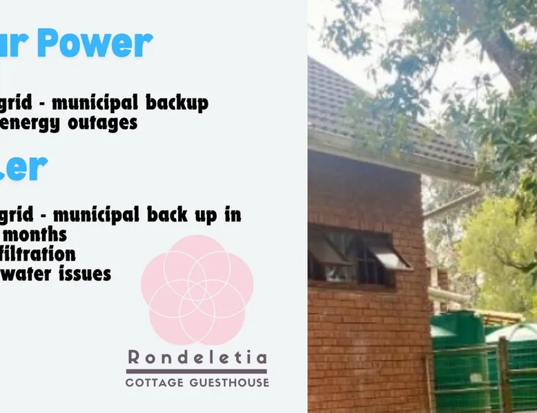 A modern, spacious and bright base from which discerning guests can venture out to do business, tour or meet family and friends. Our cottage is an entirely private and separate dwelling on a residential property situated in upmarket picturesque Winston Park. OWN ACCESS GATE Comfortably furnished with a touch of elegance, guests can expect a warm welcome, attentive service, cleanliness of the highest standard, heartfelt thanks and a knowing that Rondeletia is their "home away from home." The space Welcome to Rondeletia! We’re thrilled to have you stay with us. Please take a moment to review the following: # The Essentials *Self-Catering Cottage*: Cook up a storm in our fully equipped kitchen, but please clean up after yourself! Use the chopping boards, place garbage in wheelie-bin outside, and report any damages or issues promptly. Braai Facility: Get ready for a traditional South African braai (BBQ) experience! Find the braai tools in the bedroom cupboard. Remember, a braai isn't a braai without a proper fire! For night time braai-ing - The light switch is by the kitchen door… switch the light on twice quickly. To return to motion sensor mode, turn it off and back on. # Cleaning and Servicing (We Know You're Not Here to Clean) Arrive to a sparkling clean cottage, courtesy of our awesome housekeeping team. We'll visit daily from Monday to Friday to keep things tidy … around 10h30 but let us know if you’re snoozing. Prefer no housekeeping? Just let us know in advance. We respect your privacy. If you want cleaning on Saturdays and public holidays - please let us know in advance. (Additional cost) Linen (changed every 3rd or 4th day). Towels (refreshed daily on service days with a full set changed every 3 days). # Check-in/Check-out Normal Check-in time starts at 14h00, but every effort will be made to accommodate earlier or later. Checkout time is anytime between 10h00—11h00. Too early? Please let us know in advance as we are happy to accommodate to suit your schedule. # Electricity Outage/Water Supply (We've Got You Covered) - Our water supply is adequate and is essentially off-grid. Our water storage has a certified filtration system. - We are solar powered and essentially off-grid. Our back-up is the municipal service - in fact, we give them electricity! # Gates (Keep all Closed. Please) - There is a separate gate to Rondeletia. This gate is automated but please check that it is closed at all times. # Keys / Gate Remote The keys and gate remote will be handed over to the guest on arrival. When you leave, please leave them in the bowl on the dining room table. # Laundry There is a washing machine in the cottage for guest use. You’ll find a clothes horse & pegs, and an iron & ironing board in the bedroom cupboard. Otherwise, Gillitts Laundromat is down the road. # Monkeys (They're a Handful! Be warned: mischievous monkeys might try to crash your party!) Don't leave windows and doors without screens open, as monkeys may enter. Use the water spray bottle on the patio table to deter them. # Pets (Our Furry Friend) We have a tiny elderly Yorkshire Terrier named Bugsy. He normally stays close to the main house or soaks up the sun on the main driveway. Please keep all gates closed at all time for his safety and to avoid him being a nuisance. # Sofa Bed (For Extra Guests) - The couch is also a sofa bed. Please let us know if you need additional linen for its use. # Smoking (Please Do It Outside) No smoking inside the cottage and No cigarette butts in the garden or plant pots. # Smart TV - Enjoy our SMART TV with full DSTV bouquet. Use the LG remote to turn on/off, > DSTV remote for volume and programs. # Toilet (Septic tank system) - Don't flush cigarette butts, cotton buds, tampons, sanitary pads, or other non-biodegradable materials down the toilet. # Swimming Pool (Enjoy the Pool) - Guests are welcome to use our pool, at their own risk, which is situated in front of our house. # WiFi Connect to our fast and dedicated WiFi network That's it! We hope you have an amazing time at Rondeletia. Guest access The guesthouse is entirely private and separate from a family home with its own gate entrance and carport. Other things to note Living in Africa has sometimes got its challenges and we are determined to ensure that we have a continuous water and power supply. We have adequate water storage with filtration and working towards solar to ensure no power outages.