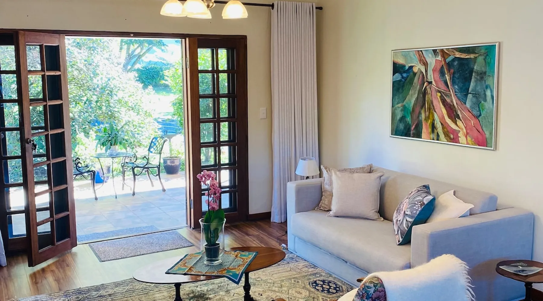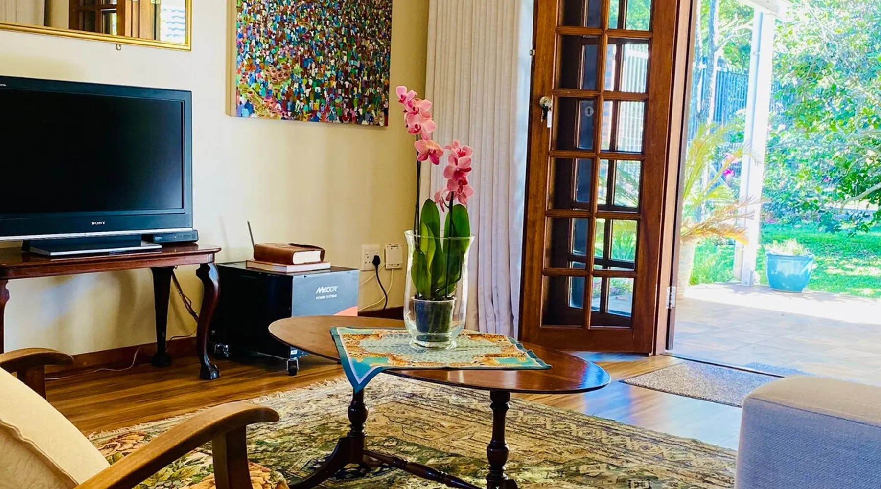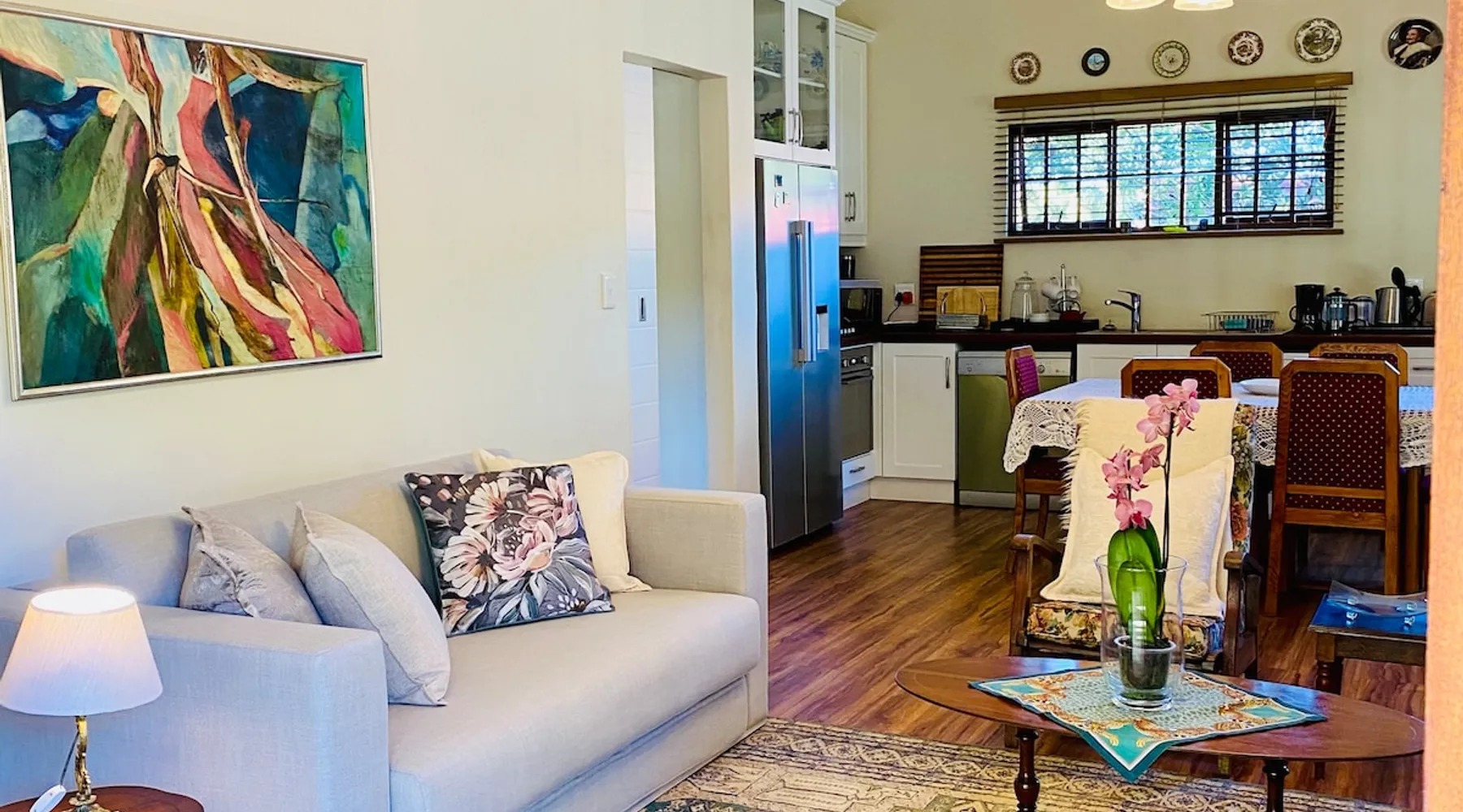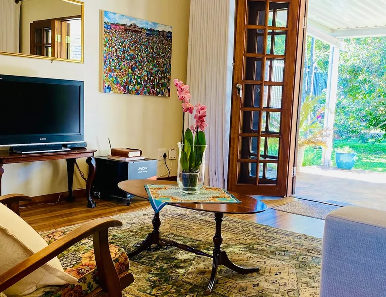 A modern, spacious and bright base from which discerning guests can venture out to do business, tour or meet family and friends. Our cottage is an entirely private and separate dwelling on a residential property situated in upmarket picturesque Winston Park. OWN ACCESS GATE Comfortably furnished with a touch of elegance, guests can expect a warm welcome, attentive service, cleanliness of the highest standard, heartfelt thanks and a knowing that Rondeletia is their "home away from home." The space Welcome to Rondeletia! We’re thrilled to have you stay with us. Please take a moment to review the following: # The Essentials *Self-Catering Cottage*: Cook up a storm in our fully equipped kitchen, but please clean up after yourself! Use the chopping boards, place garbage in wheelie-bin outside, and report any damages or issues promptly. Braai Facility: Get ready for a traditional South African braai (BBQ) experience! Find the braai tools in the bedroom cupboard. Remember, a braai isn't a braai without a proper fire! For night time braai-ing - The light switch is by the kitchen door… switch the light on twice quickly. To return to motion sensor mode, turn it off and back on. # Cleaning and Servicing (We Know You're Not Here to Clean) Arrive to a sparkling clean cottage, courtesy of our awesome housekeeping team. We'll visit daily from Monday to Friday to keep things tidy … around 10h30 but let us know if you’re snoozing. Prefer no housekeeping? Just let us know in advance. We respect your privacy. If you want cleaning on Saturdays and public holidays - please let us know in advance. (Additional cost) Linen (changed every 3rd or 4th day). Towels (refreshed daily on service days with a full set changed every 3 days). # Check-in/Check-out Normal Check-in time starts at 14h00, but every effort will be made to accommodate earlier or later. Checkout time is anytime between 10h00—11h00. Too early? Please let us know in advance as we are happy to accommodate to suit your schedule. # Electricity Outage/Water Supply (We've Got You Covered) - Our water supply is adequate and is essentially off-grid. Our water storage has a certified filtration system. - We are solar powered and essentially off-grid. Our back-up is the municipal service - in fact, we give them electricity! # Gates (Keep all Closed. Please) - There is a separate gate to Rondeletia. This gate is automated but please check that it is closed at all times. # Keys / Gate Remote The keys and gate remote will be handed over to the guest on arrival. When you leave, please leave them in the bowl on the dining room table. # Laundry There is a washing machine in the cottage for guest use. You’ll find a clothes horse & pegs, and an iron & ironing board in the bedroom cupboard. Otherwise, Gillitts Laundromat is down the road. # Monkeys (They're a Handful! Be warned: mischievous monkeys might try to crash your party!) Don't leave windows and doors without screens open, as monkeys may enter. Use the water spray bottle on the patio table to deter them. # Pets (Our Furry Friend) We have a tiny elderly Yorkshire Terrier named Bugsy. He normally stays close to the main house or soaks up the sun on the main driveway. Please keep all gates closed at all time for his safety and to avoid him being a nuisance. # Sofa Bed (For Extra Guests) - The couch is also a sofa bed. Please let us know if you need additional linen for its use. # Smoking (Please Do It Outside) No smoking inside the cottage and No cigarette butts in the garden or plant pots. # Smart TV - Enjoy our SMART TV with full DSTV bouquet. Use the LG remote to turn on/off, > DSTV remote for volume and programs. # Toilet (Septic tank system) - Don't flush cigarette butts, cotton buds, tampons, sanitary pads, or other non-biodegradable materials down the toilet. # Swimming Pool (Enjoy the Pool) - Guests are welcome to use our pool, at their own risk, which is situated in front of our house. # WiFi Connect to our fast and dedicated WiFi network That's it! We hope you have an amazing time at Rondeletia. Guest access The guesthouse is entirely private and separate from a family home with its own gate entrance and carport. Other things to note Living in Africa has sometimes got its challenges and we are determined to ensure that we have a continuous water and power supply. We have adequate water storage with filtration and working towards solar to ensure no power outages.