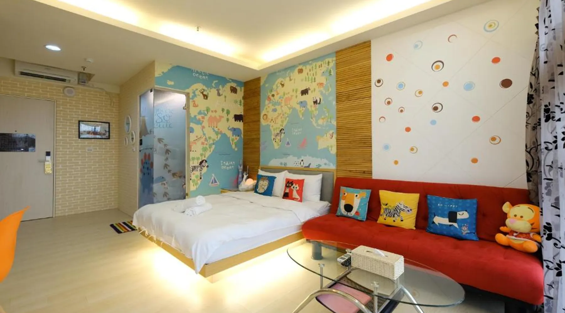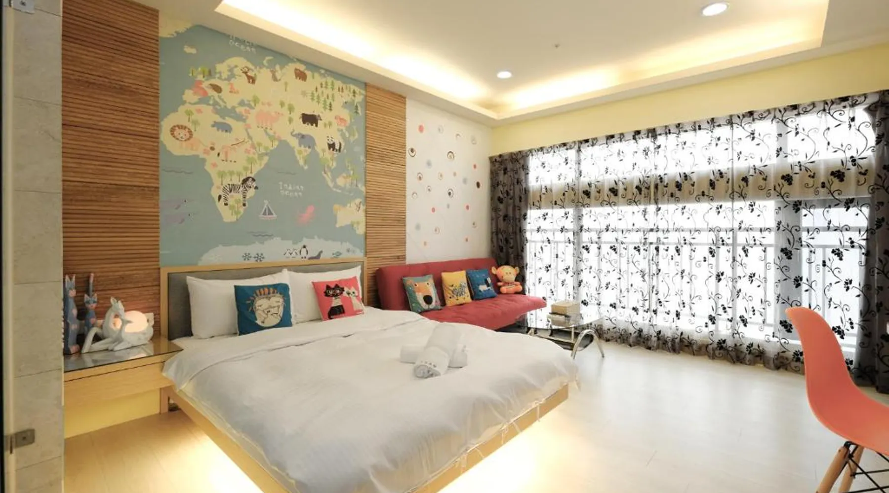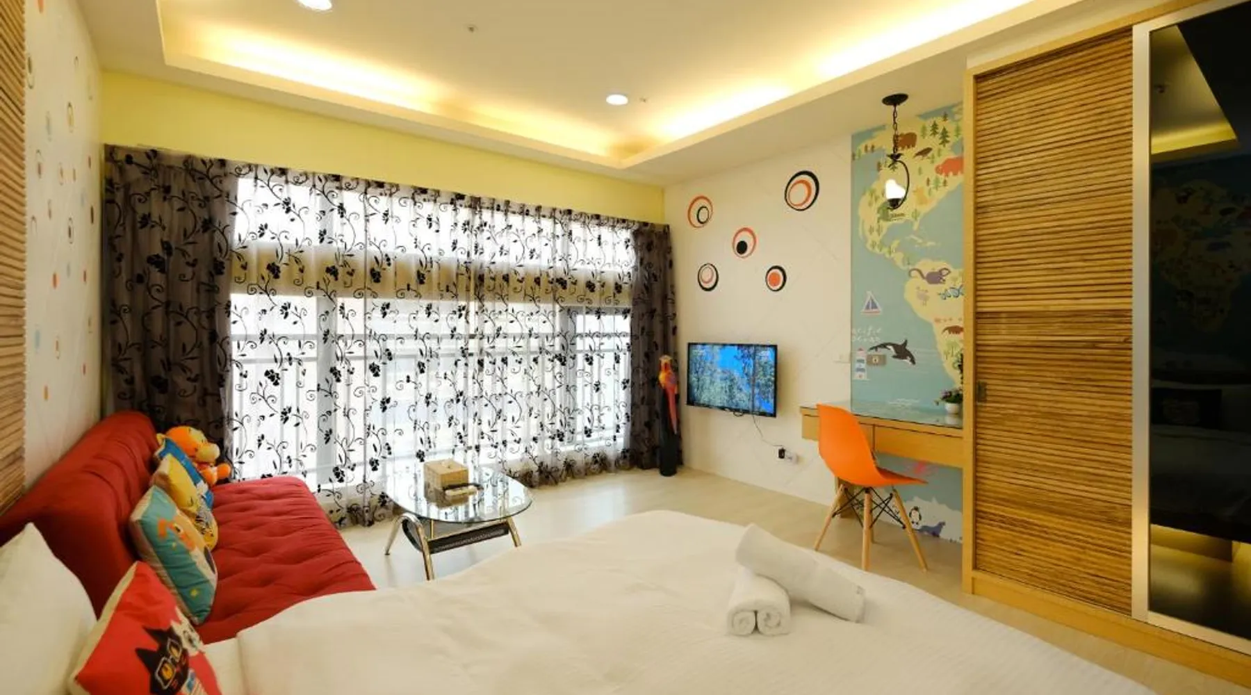 Featuring free WiFi throughout the property, 85 Asia Hotel is located in Sanduo Shopping District of Kaohsiung, only a 3-minute walk from the Exit 1 of Sanduo Shopping District Station and just beside the 85 Sky Tower. Each room here is decorated in unique themes. Surcharged private parking is available on site. It is a 7-minute metro ride from the hotel to Kaohsiung Railway Station, a 12-minute metro ride to Kaohsiung International Airport and a 17-minute ride to Zuoying High Speed Railway Station. The hotel is a 3-minute walk from Far Eastern Department Store, an 8-minute walk from Shin Kong Mitsukoshi Kaohsiung Sanduo and a 12-minute walk from Singuang Ferry Wharf. There are 2 night markets within a 10-minute walk. Rooms here are air-conditioned and come with a flat-screen TV. Certain units have a seating area for your convenience. You will find a kettle in the room. The rooms are equipped with a private bathroom equipped with a bath or shower. Extras include slippers. You will find a shared lounge at the property. The family room includes a private bathroom fitted with a shower, a hairdryer and slippers. The air-conditioned family room features a flat-screen TV with cable channels, a tea and coffee maker, a wardrobe, parquet floors as well as city views. The unit has 3 beds.