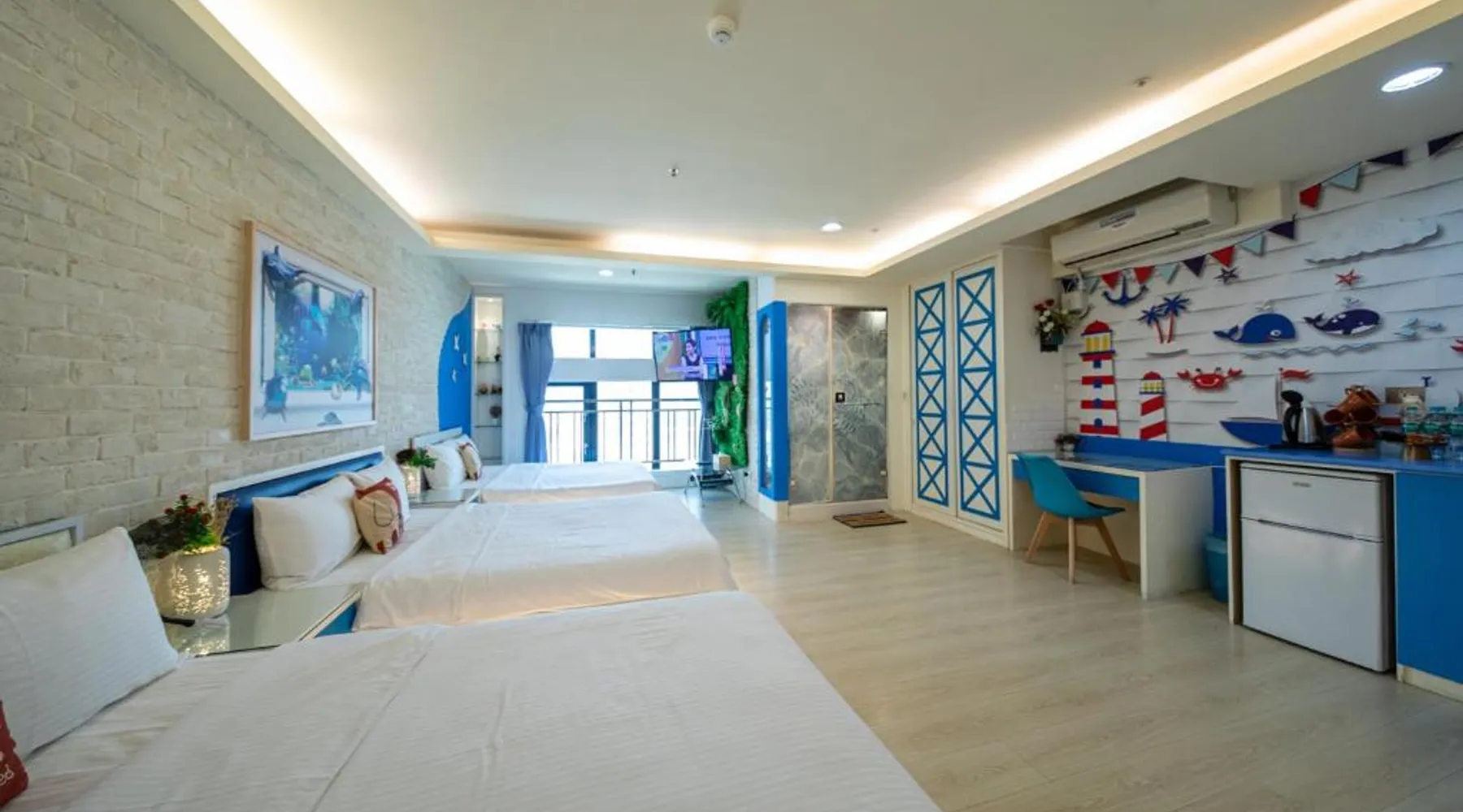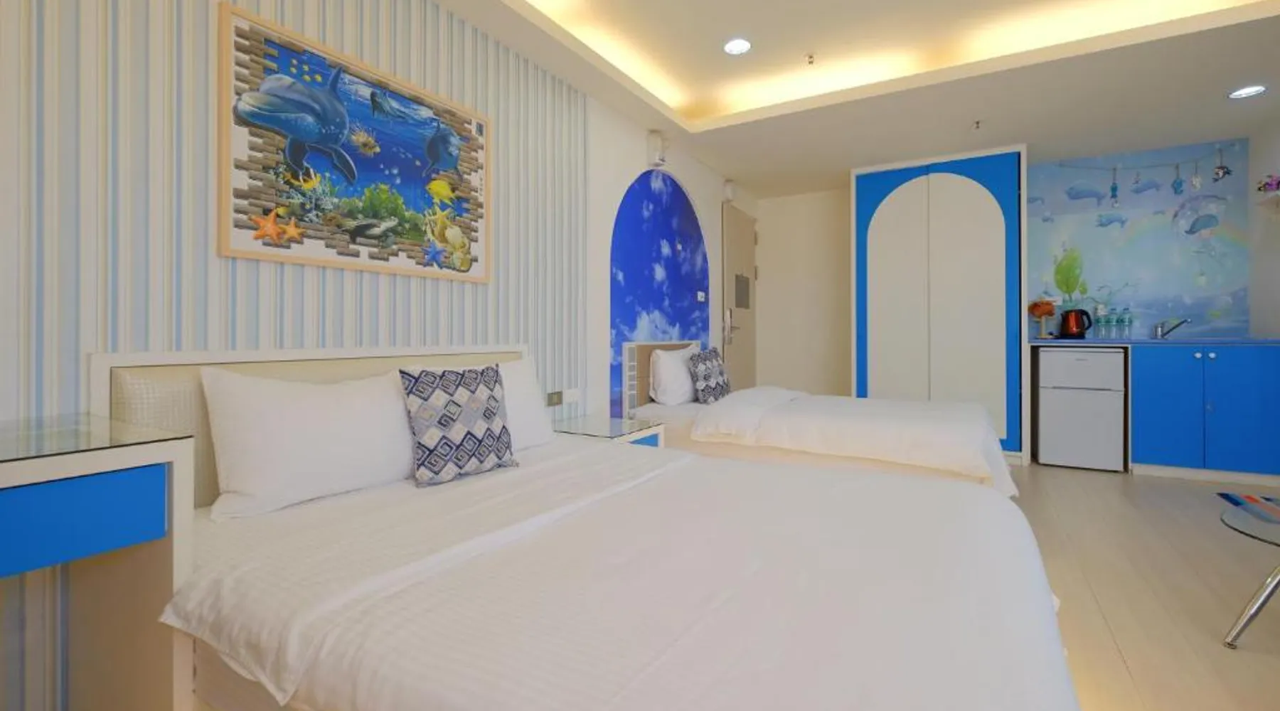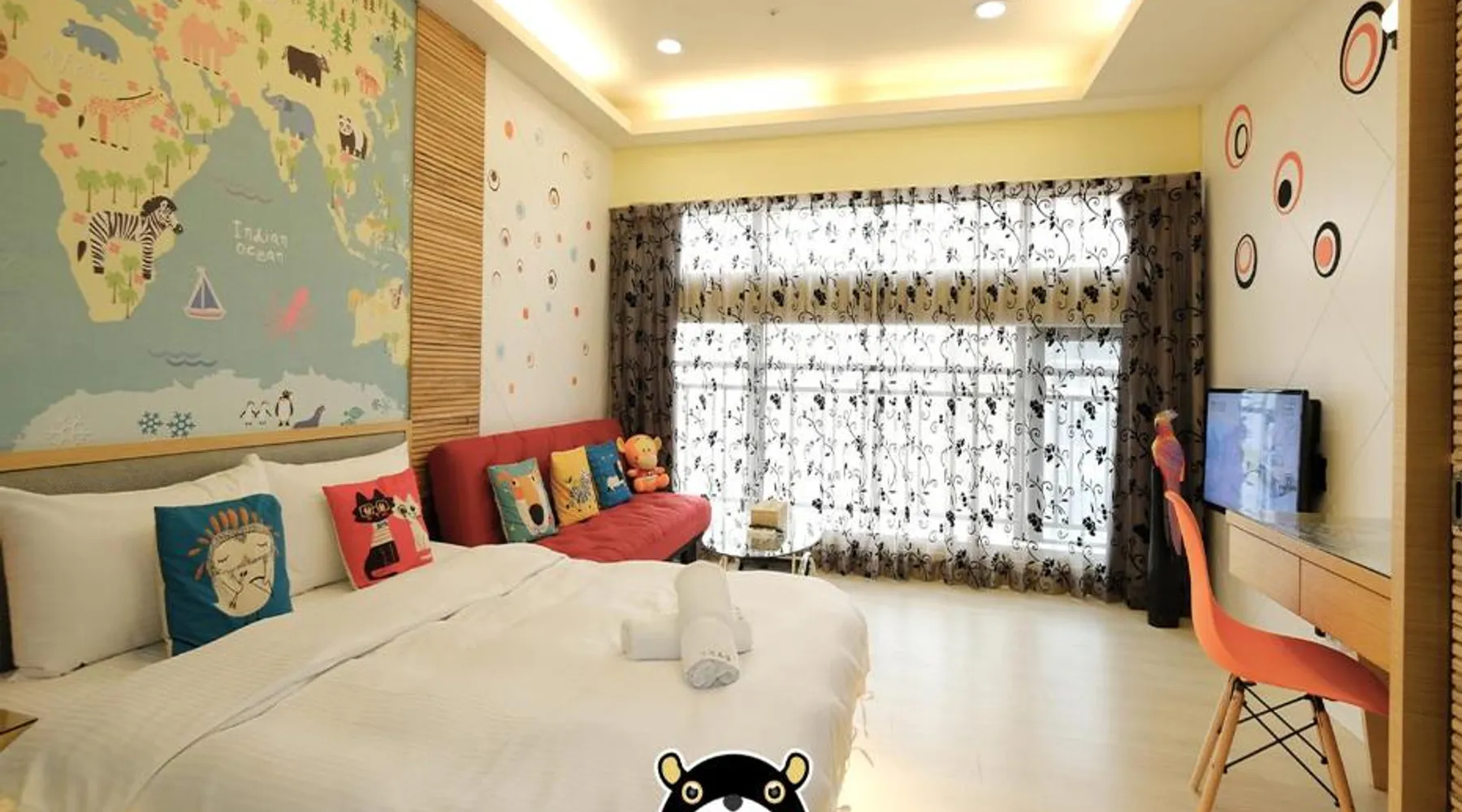 Featuring free WiFi throughout the property, 85 Asia Hotel is located in Sanduo Shopping District of Kaohsiung, only a 3-minute walk from the Exit 1 of Sanduo Shopping District Station and just beside the 85 Sky Tower. Each room here is decorated in unique themes. Surcharged private parking is available on site. It is a 7-minute metro ride from the hotel to Kaohsiung Railway Station, a 12-minute metro ride to Kaohsiung International Airport and a 17-minute ride to Zuoying High Speed Railway Station. The hotel is a 3-minute walk from Far Eastern Department Store, an 8-minute walk from Shin Kong Mitsukoshi Kaohsiung Sanduo and a 12-minute walk from Singuang Ferry Wharf. There are 2 night markets within a 10-minute walk. Rooms here are air-conditioned and come with a flat-screen TV. Certain units have a seating area for your convenience. You will find a kettle in the room. The rooms are equipped with a private bathroom equipped with a bath or shower. Extras include slippers. You will find a shared lounge at the property. The family room includes a private bathroom fitted with a shower, a hairdryer and slippers. The air-conditioned family room features a flat-screen TV with cable channels, a tea and coffee maker, a wardrobe, parquet floors as well as city views. The unit has 3 beds.