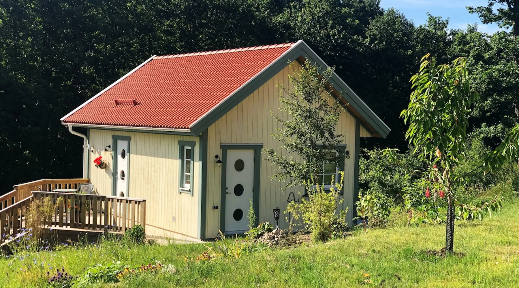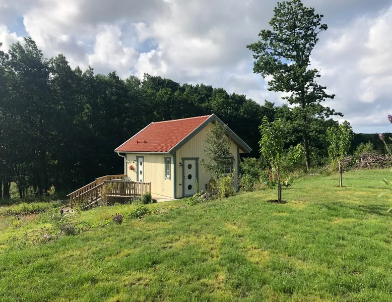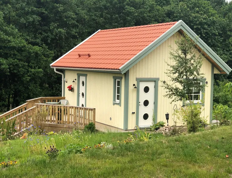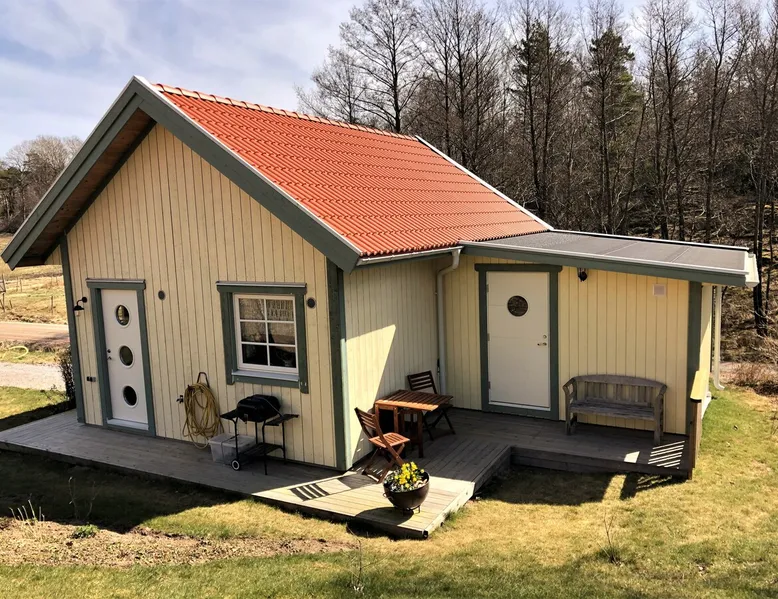 Newly built guest house in quiet rural setting, garden, deciduous forest, views sheep gardens and mountains. Close to the sea- Gullmarsfjord, Brofjord. Close to swimming, Golf courses, bike paths and coastal walks. 10 min to the ferry Finnsbo-Skår and Lysekil center. 2 km to grocery stores in Brastad. Free parking. Bikes to borrow Träveranda to the east, BBQ veranda to the west Interior high standard dining table, kitchen island, kitchen counter oak sink,, workspace induction stove, fridge.2 sofa beds WiFi Interior wall panel. Bathroom toilet and shower