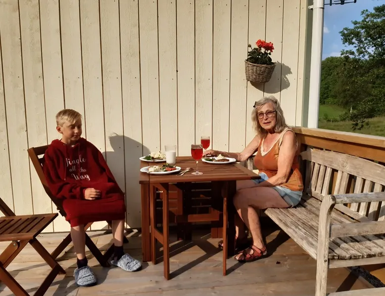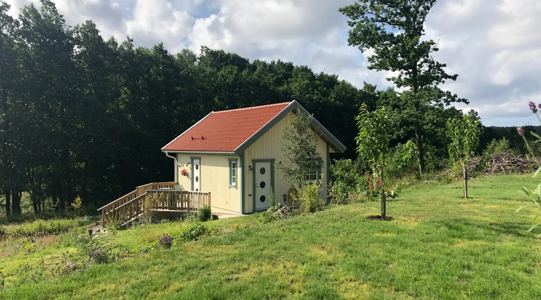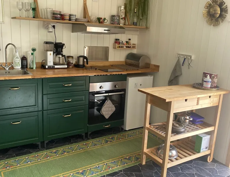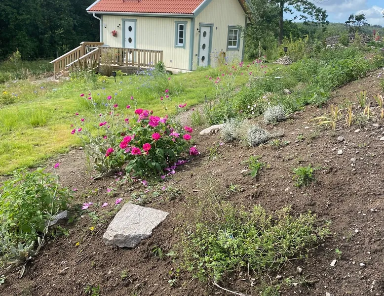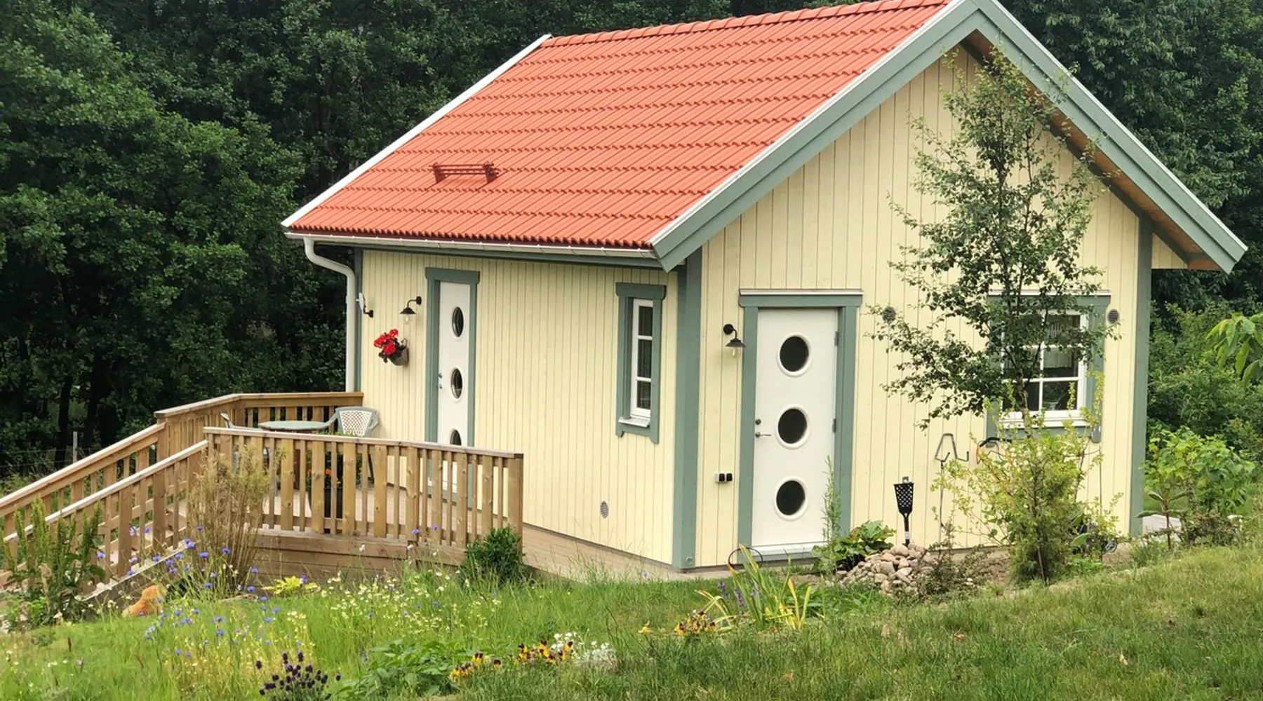 Newly built guest house in quiet rural setting, garden, deciduous forest, views sheep gardens and mountains. Close to the sea- Gullmarsfjord, Brofjord. Close to swimming, Golf courses, bike paths and coastal walks. 10 min to the ferry Finnsbo-Skår and Lysekil center. 2 km to grocery stores in Brastad. Free parking. Bikes to borrow Träveranda to the east, BBQ veranda to the west Interior high standard dining table, kitchen island, kitchen counter oak sink,, workspace induction stove, fridge.2 sofa beds WiFi Interior wall panel. Bathroom toilet and shower
