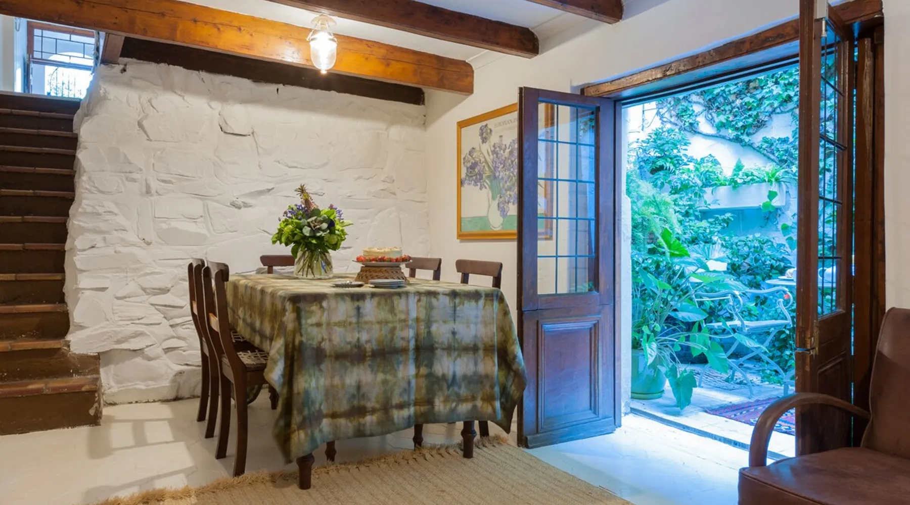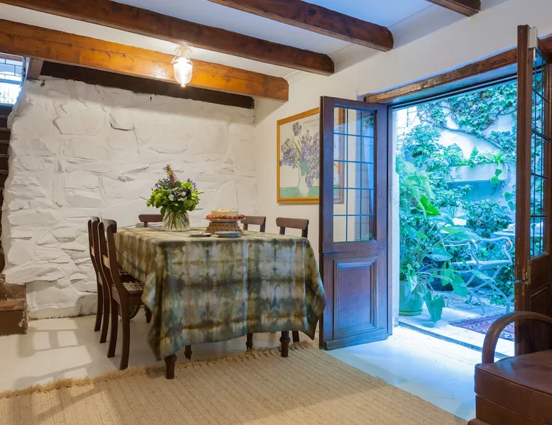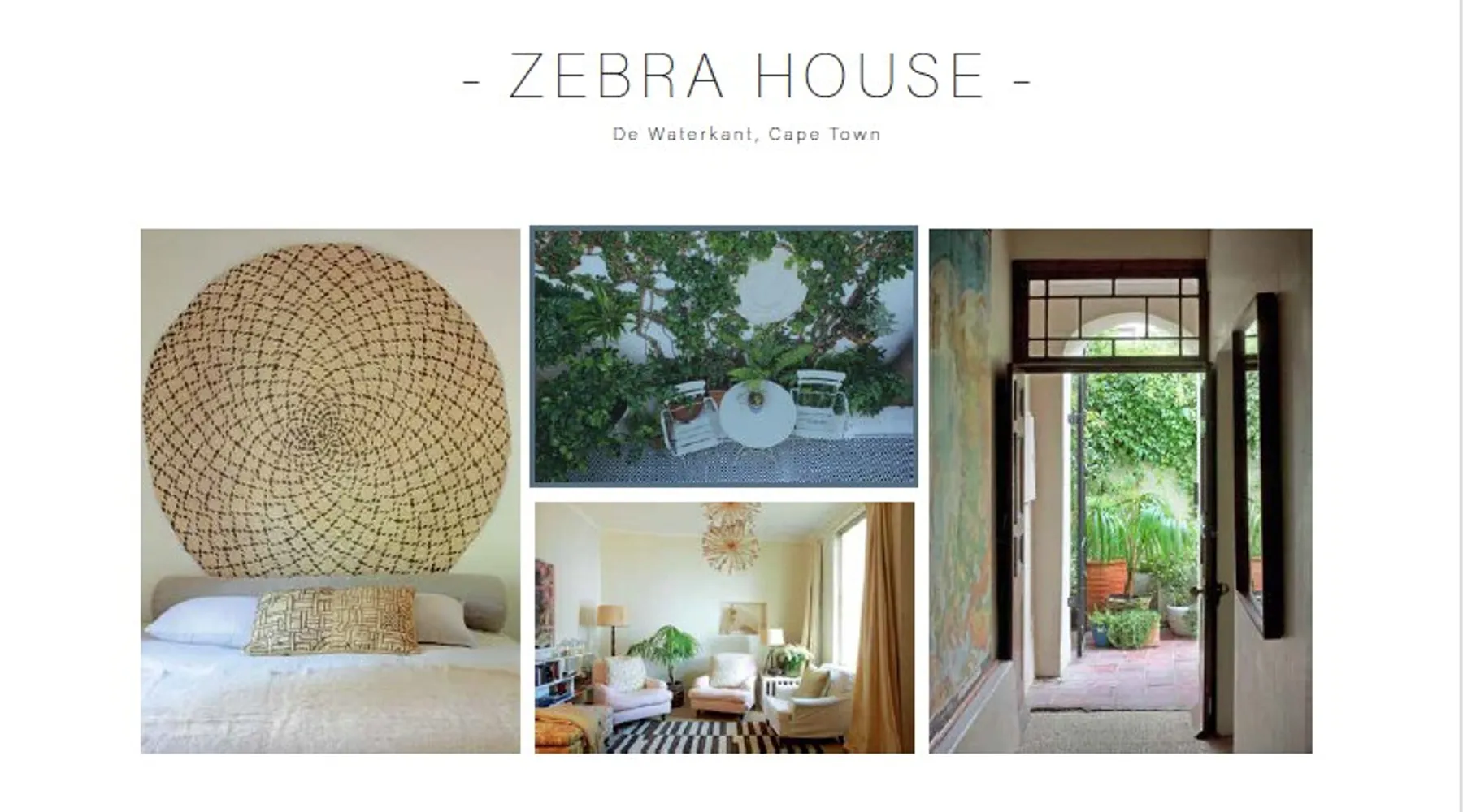 Beautiful 200 year old 2 bedroom townhouse in a hip, vibrant and historic Cape Town neighbourhood. No power cuts at Zebra House. Walking distance from city centre, restaurants, galleries, shops, gym, the V& A Waterfront, CTICC, Bo-Kaap, Signal Hill. Short car ride away from Table Mountain, Lions Head, Blue Flag beaches, Kirstenbosch Botanical Garden, and wineries. Highly secure and charismatic family home in an LGBTQ+ friendly area. Families, dogs and solo travellers welcome. The space Light and airy, stylish and spacious 2 bedroom heritage home with lovely, comfortable lounge and exclusive local art, luxury furnishings with silk curtains and linen bedding. Wonderful book collection to discover while lounging on antique daybed. Magnificent inner, private garden courtyard for al fresco eating and relaxing with gorgeous kitchen leading to green courtyard. Towering tree with red petals at Christmas. Sunny front porch with deck chairs under pepper tree with views of the De Waterkant heritage homes and vibrant neighborhood. Guest access Full 2 bedroom and 2.5 bathroom en suite access. Storage room private. Other things to note No electricity supply interruptions at Zebra House. Gift packs on arrival. Local expert information on food, wine, design, music, excursions and what to do where.