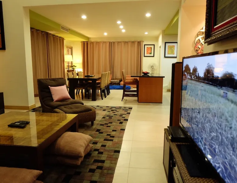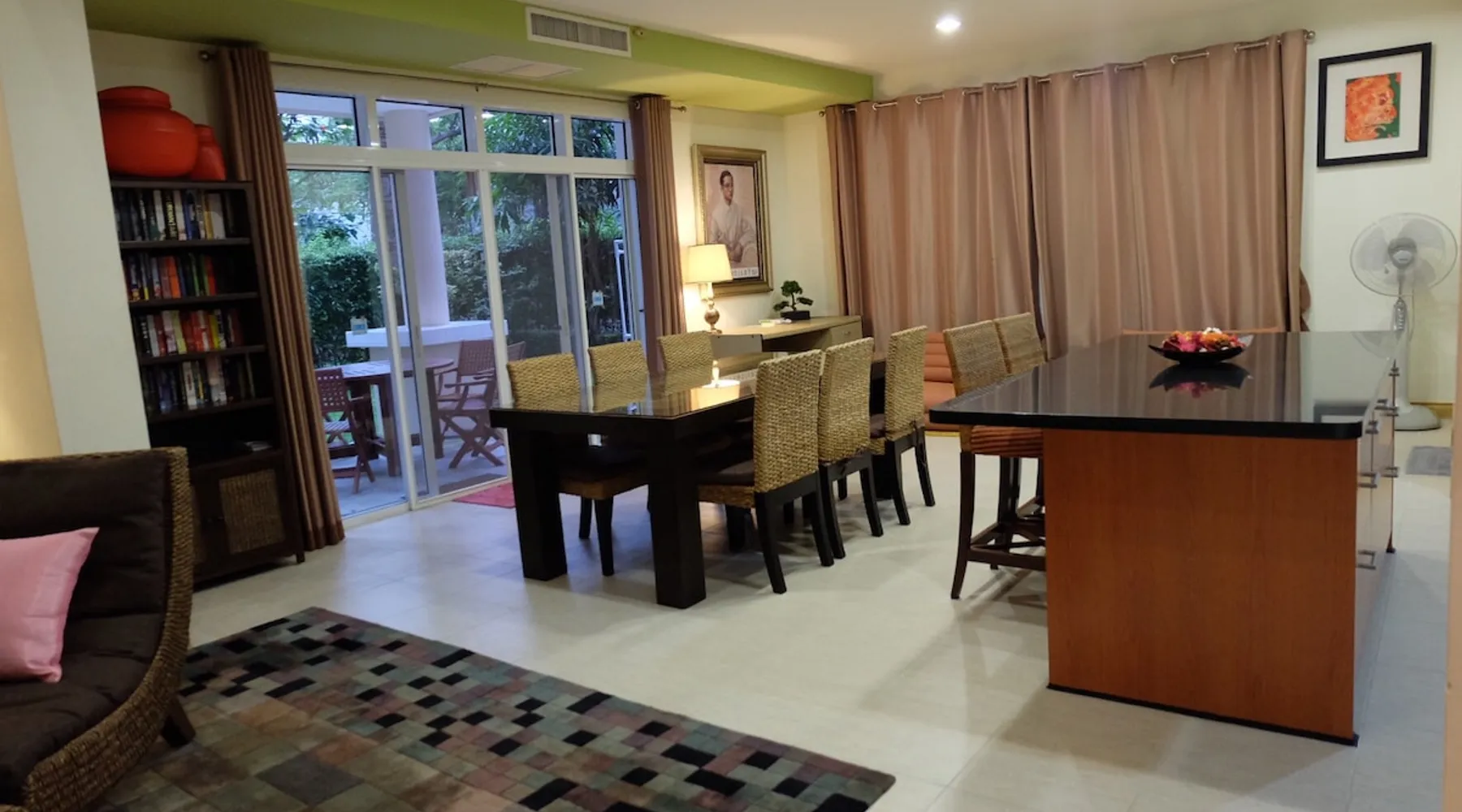 Private pool villa at Hua Hin Blue Lagoon Resort with 1,250 m. long swimming pool, with 4 bedroom 5 bathroom,fully furnished kitchen and large garden access to the swimming pool and kids pools, you can walk just 300 meters to the beach. The space These private island homes are beautifully designed in two models: split level and two stories. You will be greeted with sunlight and cool breezes from the surrounding lagoon all year long.. an Ultimate island paradise consisting of 37 villas individual private. outstanding with ingenious landscaping and a unique lake-like, continuous swimming lagoon this is the longest in Hua Hin. All accommodation quarters in this resort are built to live in perfect harmony with nature. And with the Sheraton's international standards of outstanding services and maintenance on site, you and your family will be ensured that your happiness will never end … you will truely experience a “Never Ending Happiness". Guest access The villa have 4 bedroom with air-conditioner in every room. - Master bedroom with king size bed, bathroom has bath tub, 2 basin and hot water, has balcony with outdoor chair where you can sitting and see pool view. -2nd bedroom with 2 king size beds, bathroom has basin and hot water. -3rd bedroom with one king size bed, bathroom has basin and hot water. -4th Bedroom is on ground floor,with 2 single beds and 2 move-able extra beds, bathroom is in common bathroom - Internet TV and DVD player in living room+UBC cable TV - Fully equipment in the Kitchen + big refrigerator - Washing machine - Baby cot+Baby chair - Car park for 2 cars - Big garden access to swimming pool, sun beds in the garden. - BBQ Grilling Other things to note - Daily rental : electricity and water are included - stay up to 5 days to monthly rental : electricity and water are excluded **Electricity 6 baht/unit **Water 25 Baht/unit **Free wifi **Free UBC **Cleaning 800 Baht/time **Change bed sheets for 4 bedrooms 1K Baht/time **Extra towels 40 Baht/Piece