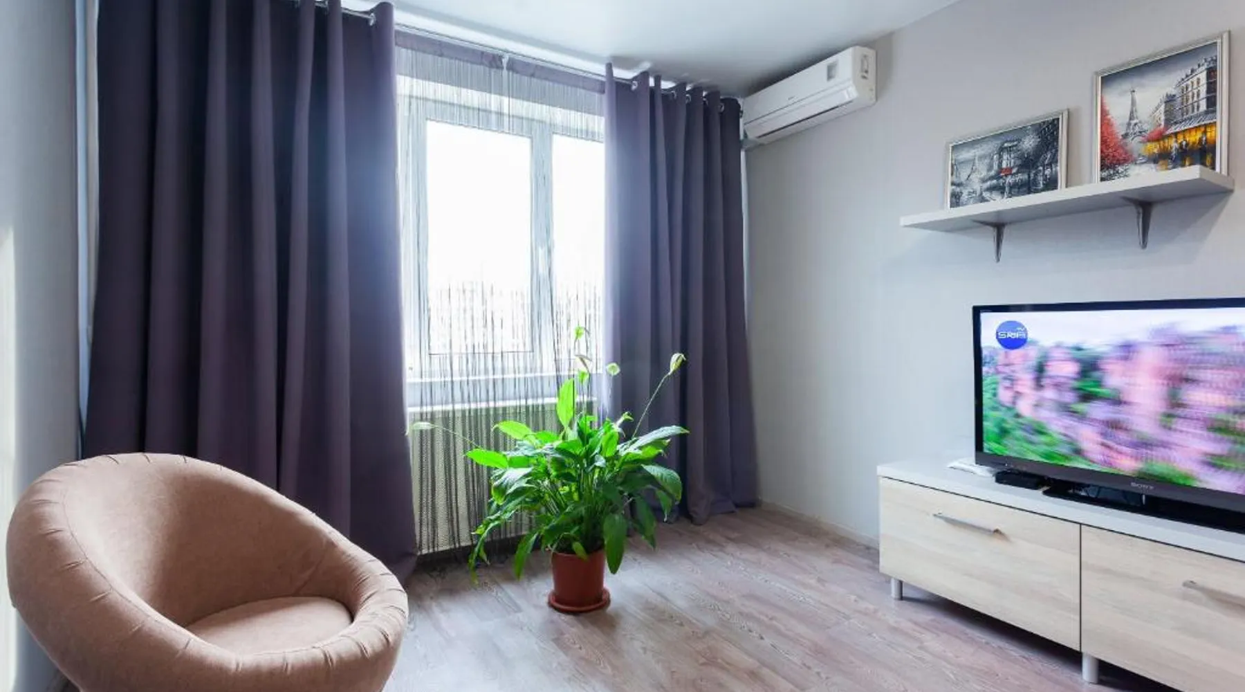 Comfortable Living Space: Obolon metro station in Kyiv offers a one-bedroom apartment with a balcony and city views. The property includes a kitchenette, washing machine, and free WiFi. Convenient Facilities: Guests benefit from a elevator, minimarket, waterpark, electric vehicle charging station, hairdresser/beautician, family rooms, and a children's playground. Free on-site parking is available. Local Attractions: St. Cyril's Monastery is 3.7 mi away, Maidan Nezalezhnosti Metro Station and St. Michael's Golden-Domed Monastery are 5.6 mi distant, and Saint Sophia Cathedral lies 6.2 mi from the apartment. The air-conditioned apartment features 1 bedroom and 1 bathroom with a bath and a shower. In the kitchen, guests will find a stovetop, a refrigerator, kitchenware and an electric kettle. Featuring a balcony with city views, this apartment also provides a washing machine and a flat-screen TV with cable channels. The unit offers 1 bed.