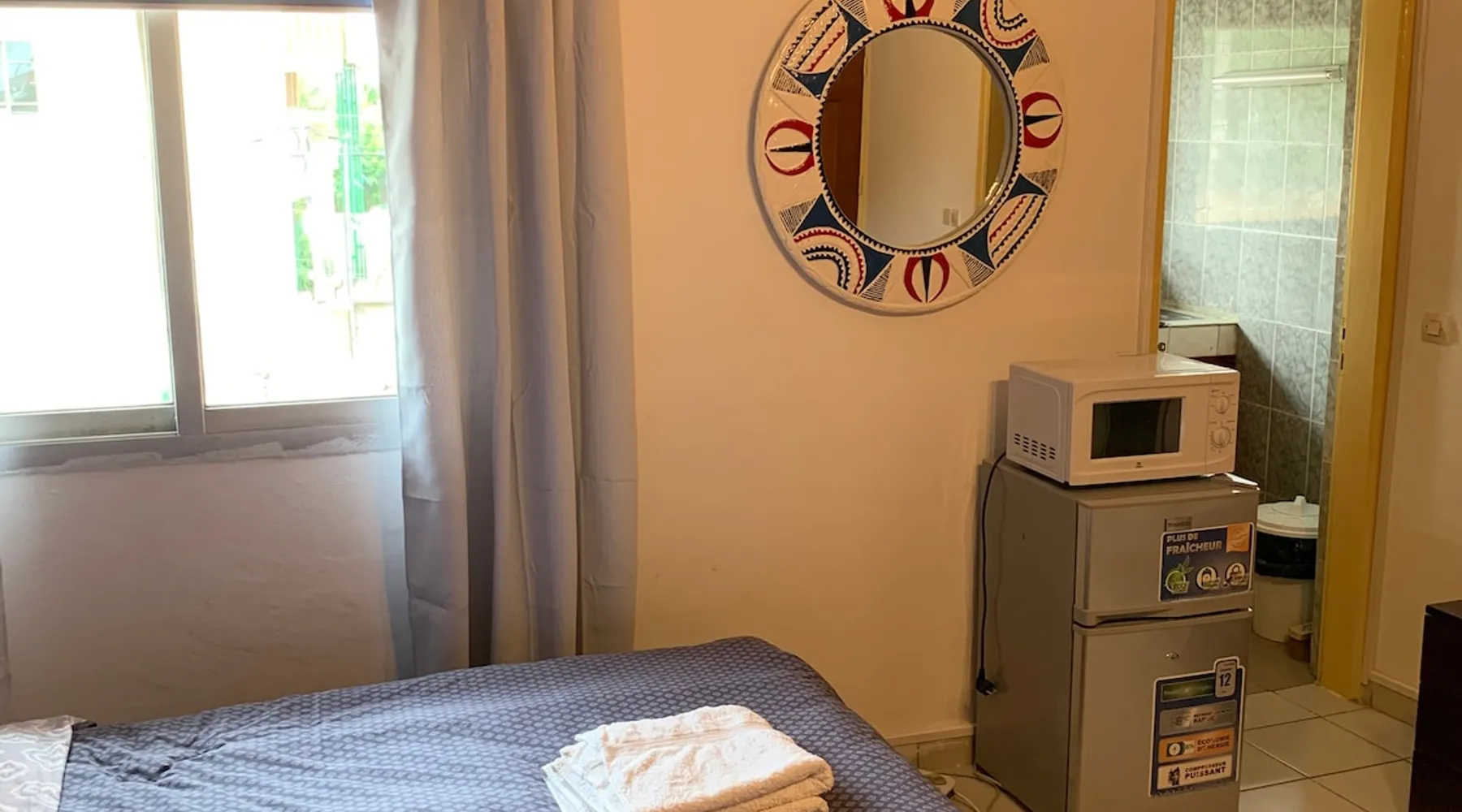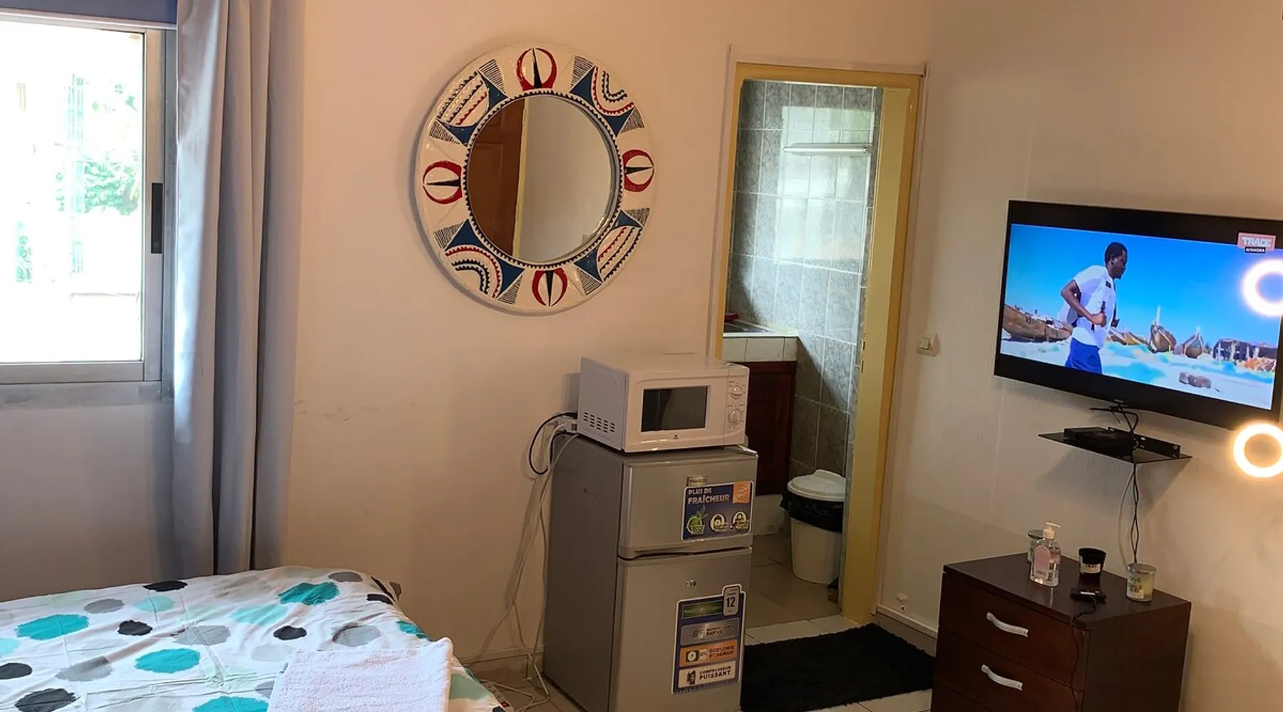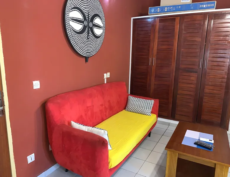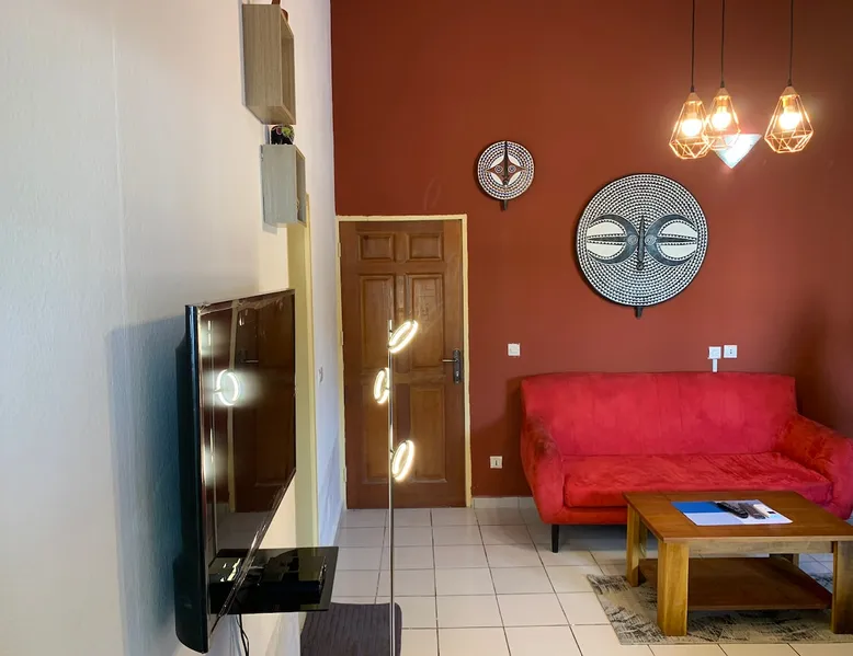 Beautiful studio nestled in Cocody, 2 plateaux, hilly. Located in a quiet, secure environment, the studio is less than a 10-minute drive from various popular spots in Abidjan (le bloom, restaurant des jardins, gâteau et des pains; chez Paul, Sococé Hyper U etc.). The neighborhood is clean, quiet and secure. You will find everything you need for your stay. Its proximity to the main roads allows you to easily travel to Abidjan. High-speed internet will be available. The space We want to create a special enough housing experience to make you feel at home with us. Our accommodation is furnished with a minimalist decor, everything has its place in the apartment. Sober colors and thoughts. We want to highlight local artisans, you will find works of art in our apartment made by our artisans. These items are also for sale. The accommodation has a high-speed Wi-Fi connection tested by Airbnb, so you can work at your ease. Guest access Parking is outside the building. It is located in a protected complex with a guard present 24/7. No need to worry about the safety of your vehicle. Several vehicles are also parked in this outdoor parking lot. Other things to note If you wish to rent a vehicle with a driver, we can also provide this service. It is charged based on distance and destination. We can also rent for multiple days.