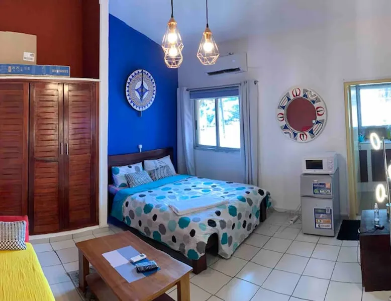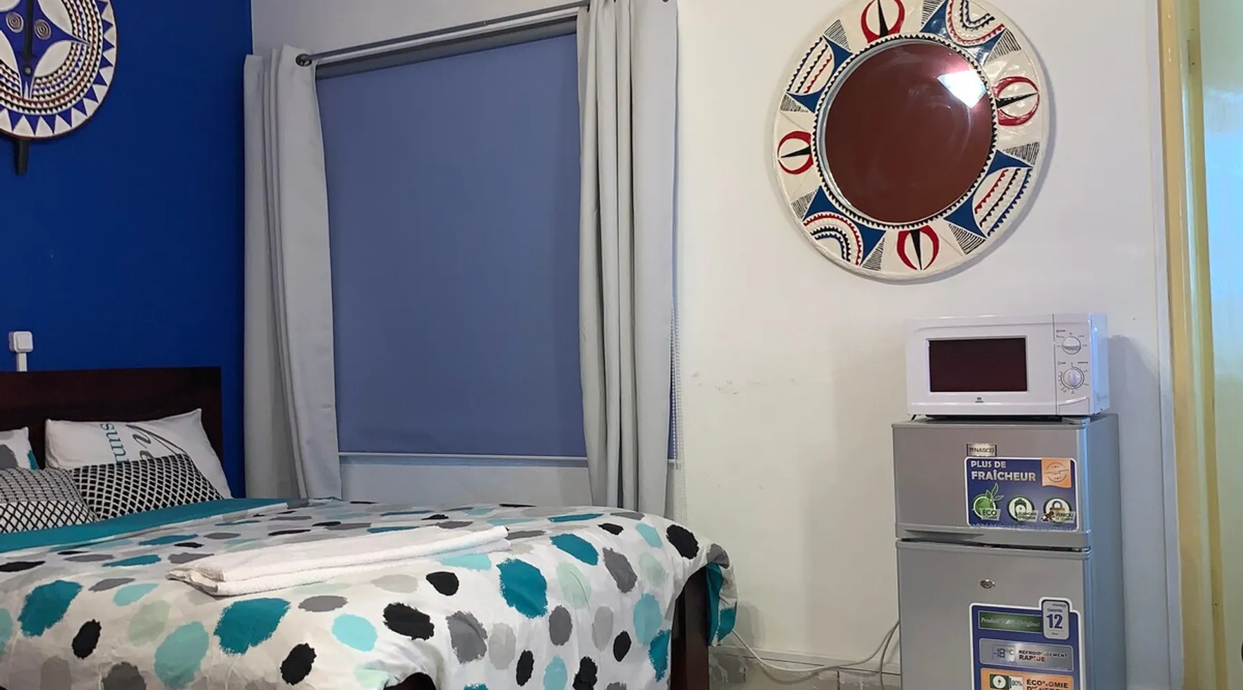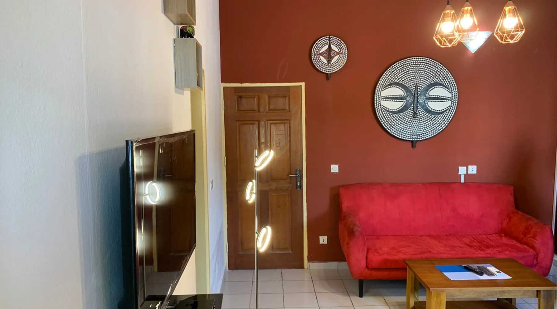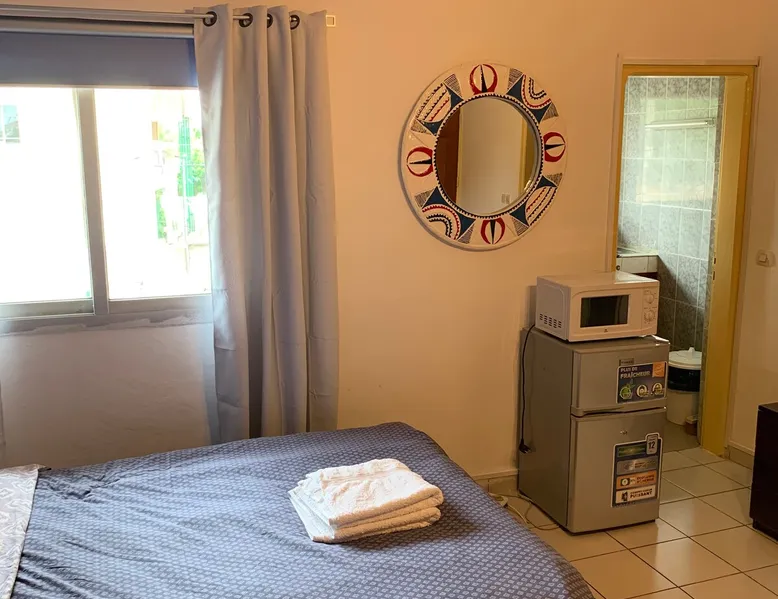 Beautiful studio nestled in Cocody, 2 plateaux, hilly. Located in a quiet, secure environment, the studio is less than a 10-minute drive from various popular spots in Abidjan (le bloom, restaurant des jardins, gâteau et des pains; chez Paul, Sococé Hyper U etc.). The neighborhood is clean, quiet and secure. You will find everything you need for your stay. Its proximity to the main roads allows you to easily travel to Abidjan. High-speed internet will be available. The space We want to create a special enough housing experience to make you feel at home with us. Our accommodation is furnished with a minimalist decor, everything has its place in the apartment. Sober colors and thoughts. We want to highlight local artisans, you will find works of art in our apartment made by our artisans. These items are also for sale. The accommodation has a high-speed Wi-Fi connection tested by Airbnb, so you can work at your ease. Guest access Parking is outside the building. It is located in a protected complex with a guard present 24/7. No need to worry about the safety of your vehicle. Several vehicles are also parked in this outdoor parking lot. Other things to note If you wish to rent a vehicle with a driver, we can also provide this service. It is charged based on distance and destination. We can also rent for multiple days.