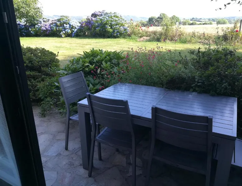 Comfortable Accommodations: Chez Herveline Le Fer in Plouigneau offers family rooms with private bathrooms, garden views, and parquet floors. Each room includes a wardrobe, soundproofing, and free toiletries. Relaxing Facilities: Guests can enjoy spa facilities, a hot tub, and a sun terrace. The property features a garden, outdoor seating area, and free WiFi throughout. Delicious Breakfast: A continental breakfast is served with local specialties, fresh pastries, pancakes, cheese, fruits, and juice. Special diet menus are available. Nearby Attractions: Saint-Thégonnec Parish Close is 17 mi away, Baie de Morlaix Golf Course 19 mi, and Lampaul-Guimiliau Parish Close 22 mi. Free on-site private parking is provided. The double room provides a private entrance, soundproof walls, a terrace with garden views as well as a private bathroom featuring a shower. The unit offers 1 bed.