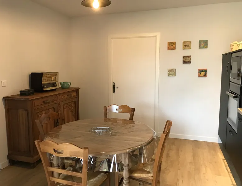 "La Maison d'Alice" fully renovated family home, quality finishes and amenities. Ground floor living room, dining room, 1 integrated kitchen, laundry room, toilet. Upstairs bathroom, shower, bathtub, toilet. 3 nicely decorated bedrooms. 1 bedroom, 160 x 200 bed 1 bedroom 1 bed 160 x 200 2 beds 90 x 190, 1 bedroom 1 bed 130 x 180. Baby equipment, baby bed, highchair, bathtub. Bed linen, bathroom linen included. Wi-Fi, TV. The space La Maison d'Alice is a very comfortable and warm family home with neat decor. Private enclosed grassy courtyard, covered terrace for dining or relaxing. Other things to note La Maison d'Alice is ideally located for discovering our beautiful region.
