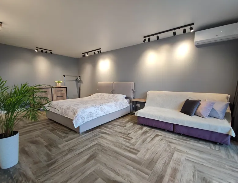 Welcome to a clean and comfortable studio apartment with a modern design, the photo is true. The apartment is located in a very convenient location with good infrastructure. Within walking distance of the market, subway, railway station. Center - 10 minutes by metro. Elevator in the house (common for all residents of the house), not in the apartment. The space The apartment has 3 (2+1) beds (one double bed and one double sofa bed) and has everything you need for a comfortable staying The windows overlook a quiet courtyard. The apartment is clean and not smoky, we clean it personally, without the help of cleaners. Guest access From the railway station can be reached on foot (10 min). By taxi from Zhuliany airport - 20 min. From central railway station to Boryspil Airportruns (journey time up to 30 minutes, easy to get to without traffic jams, fixed fare). 400 meters from the house there is a covered guarded parking (paid) Other things to note When you check in - we take pictures of passport