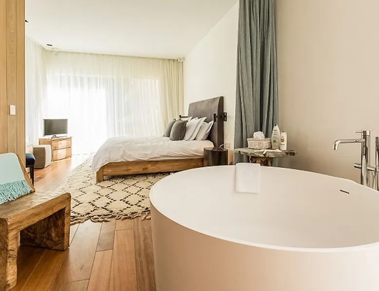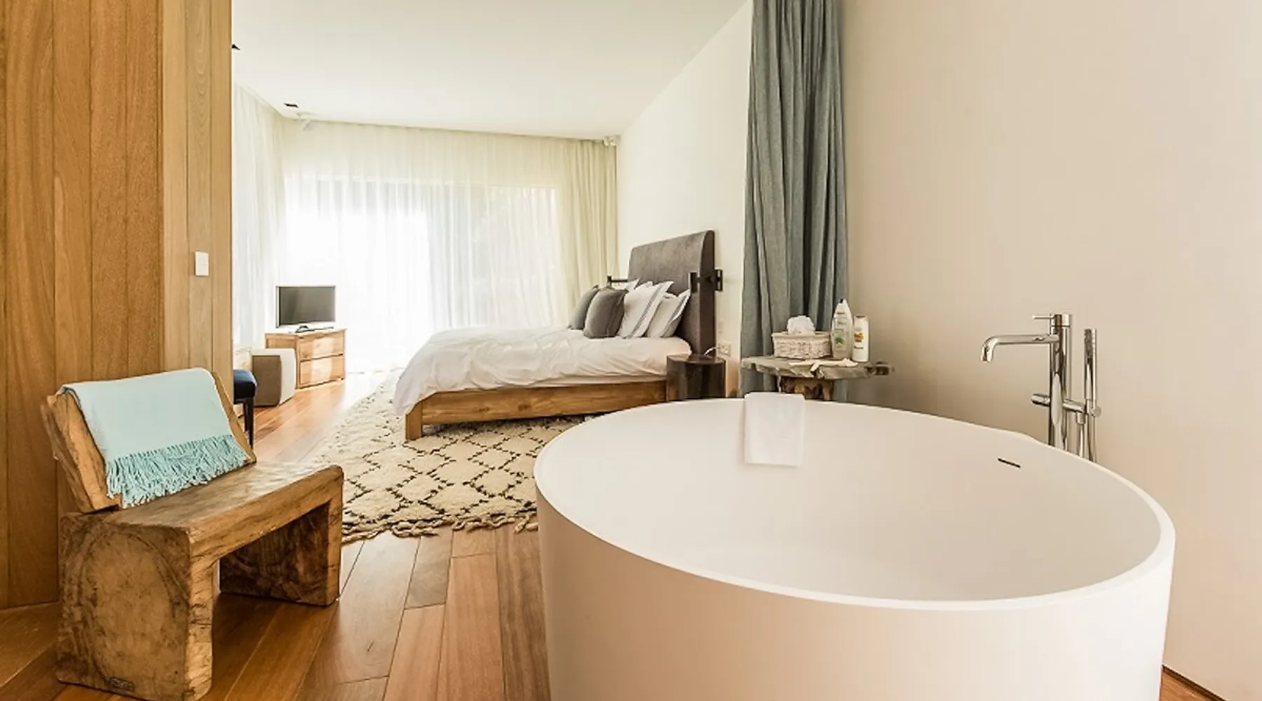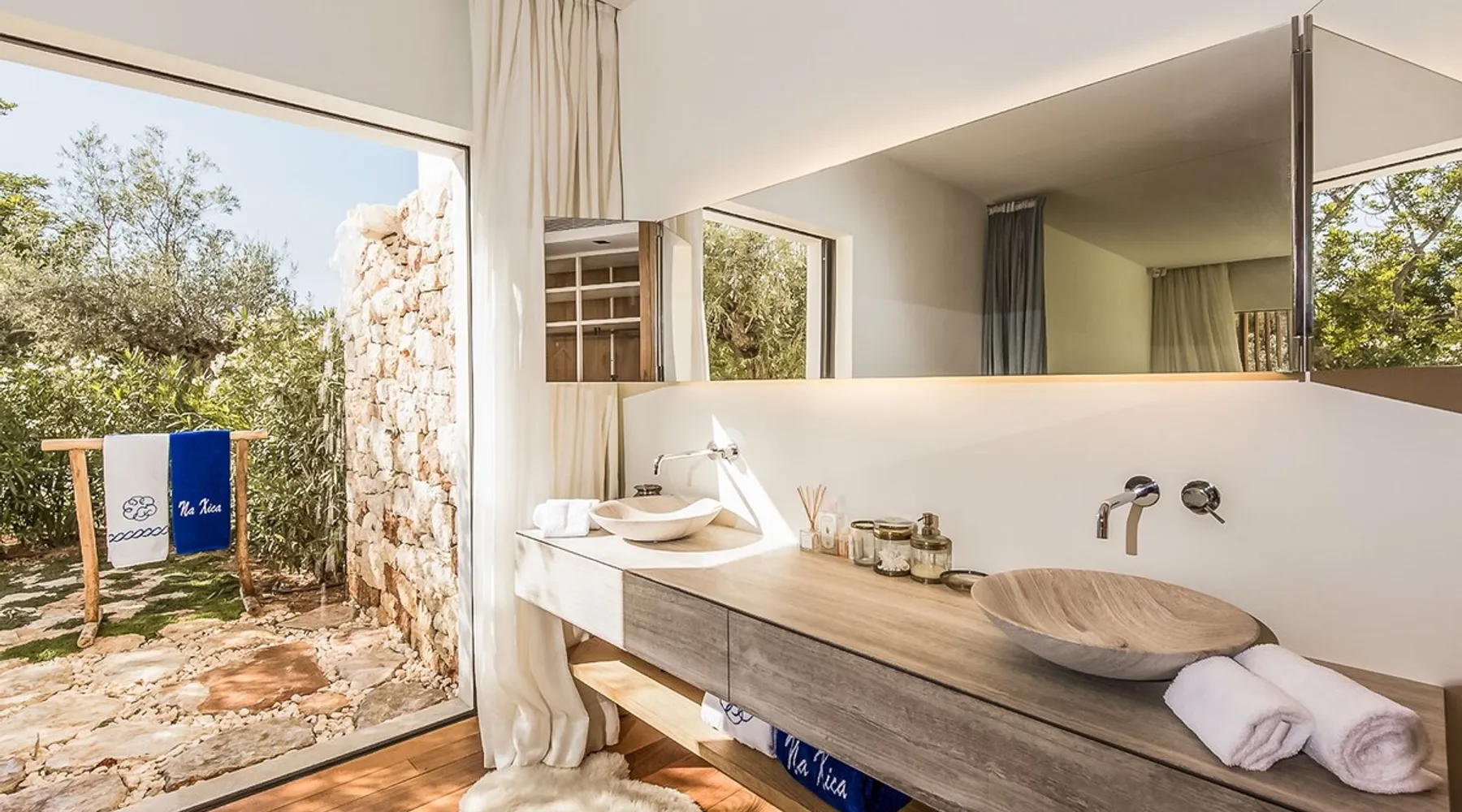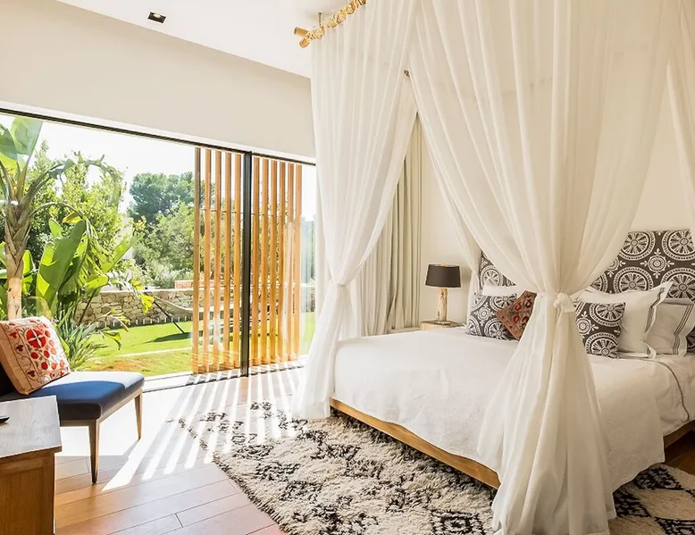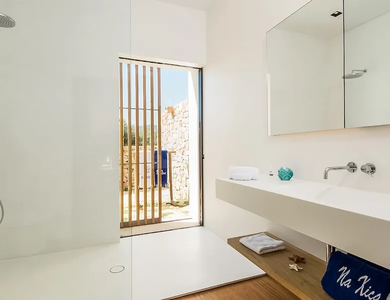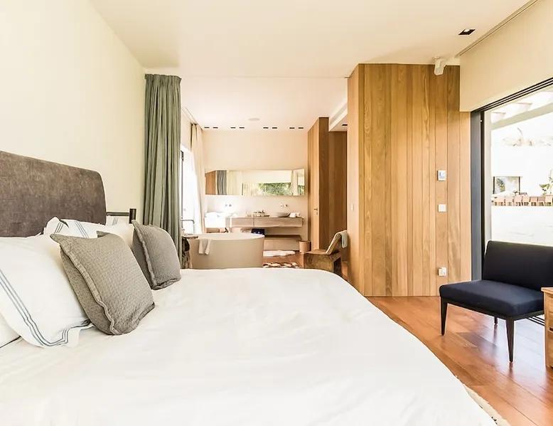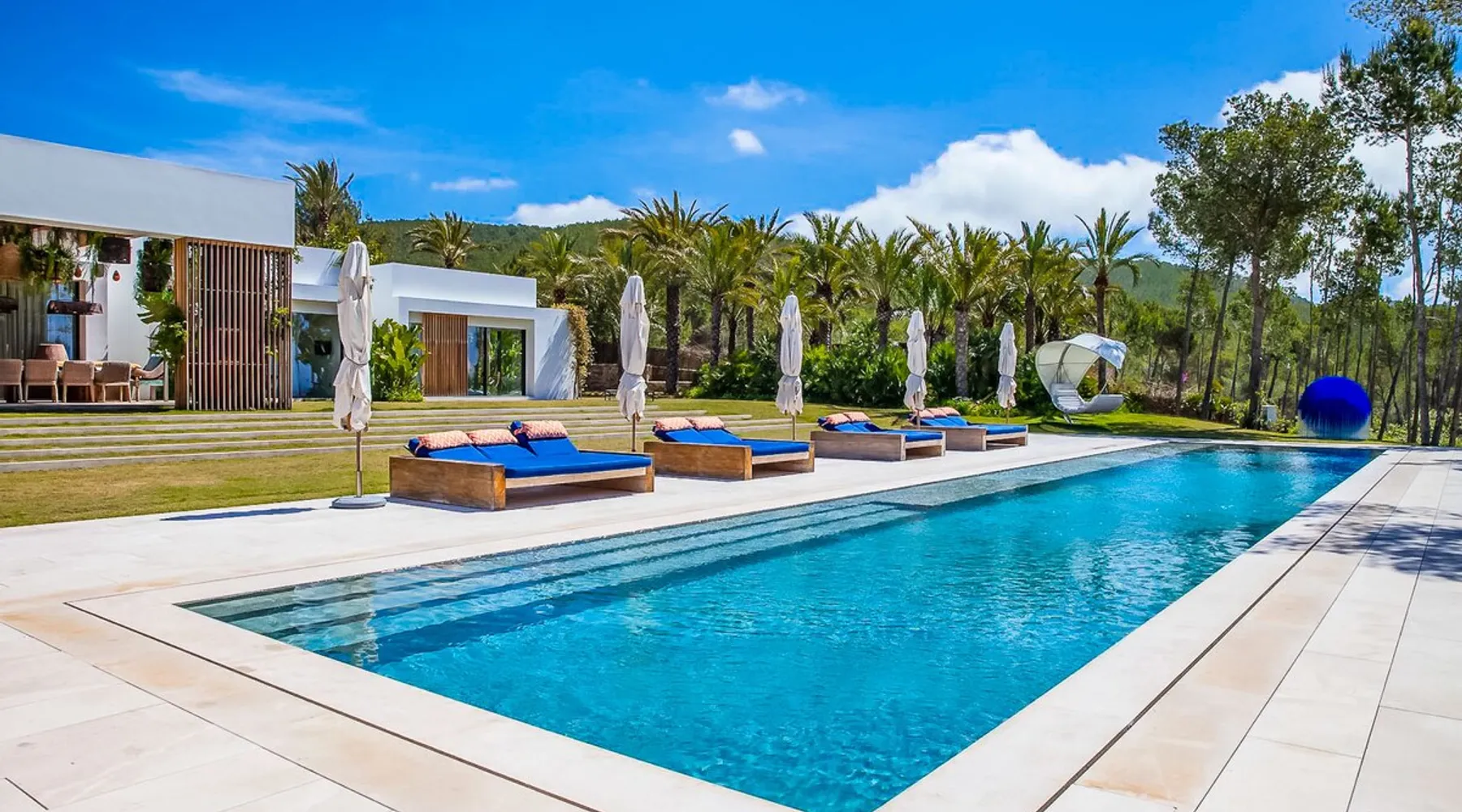 Set between San José and Cala Jondal, this secluded Ibizan property features modern architecture among palms and pines. A 25m heated infinity pool, fed by a private well, forms the centrepiece. Manicured grounds include a jacuzzi, pétanque pitch, outdoor cinema, and beach-style terrace with a bar. Inside, natural wood floors and contemporary design enhance en-suite bedrooms, each offering privacy and pool views. The space Privadia are proud to be an Airbnb Luxe Partner. As part of this partnership, all of our properties are individually inspected by Airbnb, ensuring authenticity and quality for all guests. Our relationship with Airbnb Luxe reflects our commitment to maintaining the highest standards across our portfolio of luxury villas. Located in a secluded area between San José and Cala Jondal, this contemporary Ibizan property combines modern design with a private, natural setting. Surrounded by mature pines and tall palms, the clean architectural lines of the villa are softened by the landscaped grounds, which include sculpted lawns and curated outdoor features. A 25-metre infinity pool sits at the heart of the property, drawing water from its own well and offering heating during cooler months (€300 per day). The pool is visible from all rooms and is bordered by loungers, shaded areas, and views through the trees to the Mediterranean. The outdoor spaces include a large jacuzzi for up to ten people, a pétanque pitch, contemporary sculpture installations, and an open-air cinema. A beach-style terrace set under the pines features white sand, a professional bar, and seating for up to 30 people. Additional outdoor dining and lounge areas are arranged across wide terraces and garden zones. Inside, the interiors are finished with natural wood flooring and modern fixtures, balancing a clean aesthetic with warmth and functionality. The layout ensures privacy for all sleeping areas, with every bedroom offering direct outdoor access and an en-suite bathroom. Sleeping Arrangements: - Master Suite Hastens king-size bed, fireplace, TV and Sonos music, air conditioning. En-suite bathroom with shower, bath and Hammam. Includes a private outdoor shower, access to the jacuzzi, and a private chill-out area. - Bedroom 2 King-size bed, TV and Sonos music, air conditioning, private outdoor shower and terrace, en-suite bathroom with shower. - Bedroom 3 King-size bed, TV and Sonos music, air conditioning, private terrace and outdoor shower, en-suite bathroom with shower. - Bedroom 4 King-size bed, TV and Sonos music, air conditioning, private terrace, en-suite bathroom with shower. - Bedroom 5 King-size bed, TV and Sonos music, air conditioning, private terrace and outdoor shower, en-suite bathroom with a bath. Kitchen Information: - Kitchen 1 – Fully equipped indoor kitchen Kitchen 2 – Outdoor kitchen suitable for catering and events Extra Cost: - Pool heating is available at €300 per day. Guest access Guests have full private access to the entire villa, including all indoor and outdoor spaces, the infinity pool, gardens, private terraces, and parking. Other things to note Please note that check-in is from 4 PM and check-out is by 10 AM, unless agreed otherwise in advance. The exact villa address will be shared 24 hours before arrival for security reasons. Full arrival instructions and access details will be provided closer to your check-in date via our Guest Experience team. We recommend hiring a car to make the most of your stay which we can help arrange. We also offer the option to pre-arrange a wide range of services to make your stay even more enjoyable – from boat rentals and private chefs to wellness sessions and grocery deliveries. Cleaning breakdown: 6 hours daily, 6 days per week Linen / Towel change - once per week. Live in couple help with cooking and driving. Registration Details Ibiza - Regional registration number ETV-2077-E