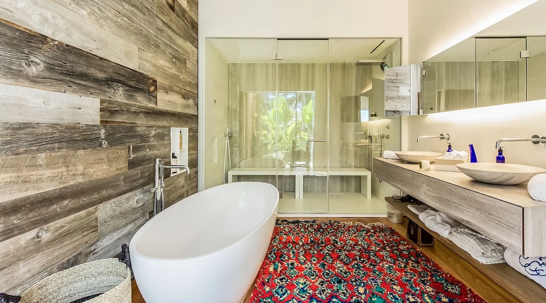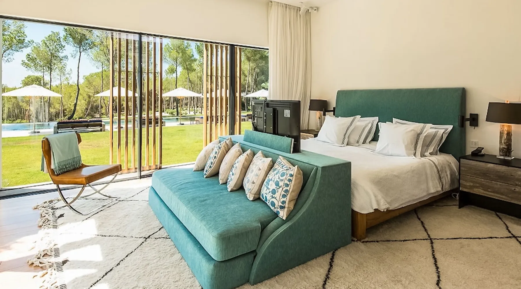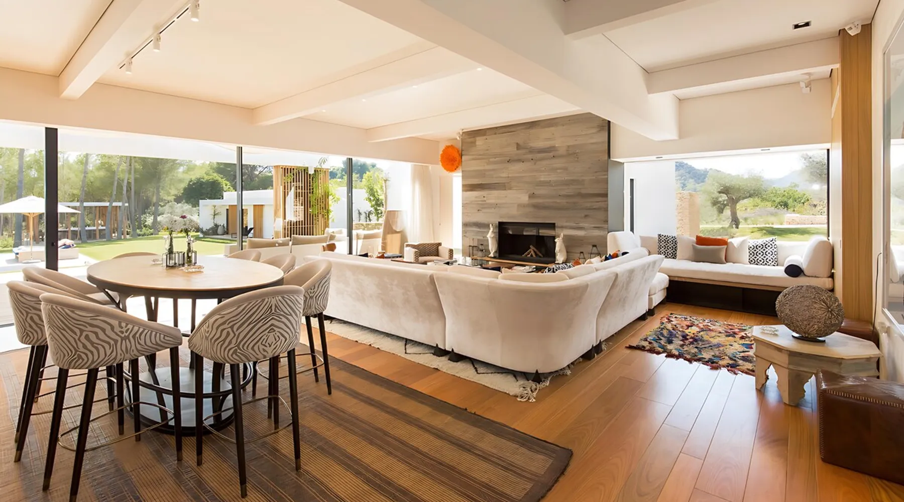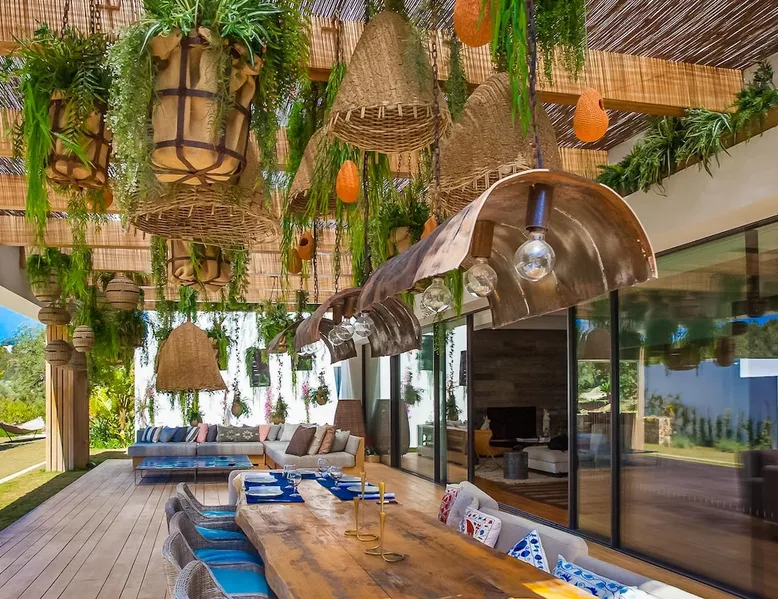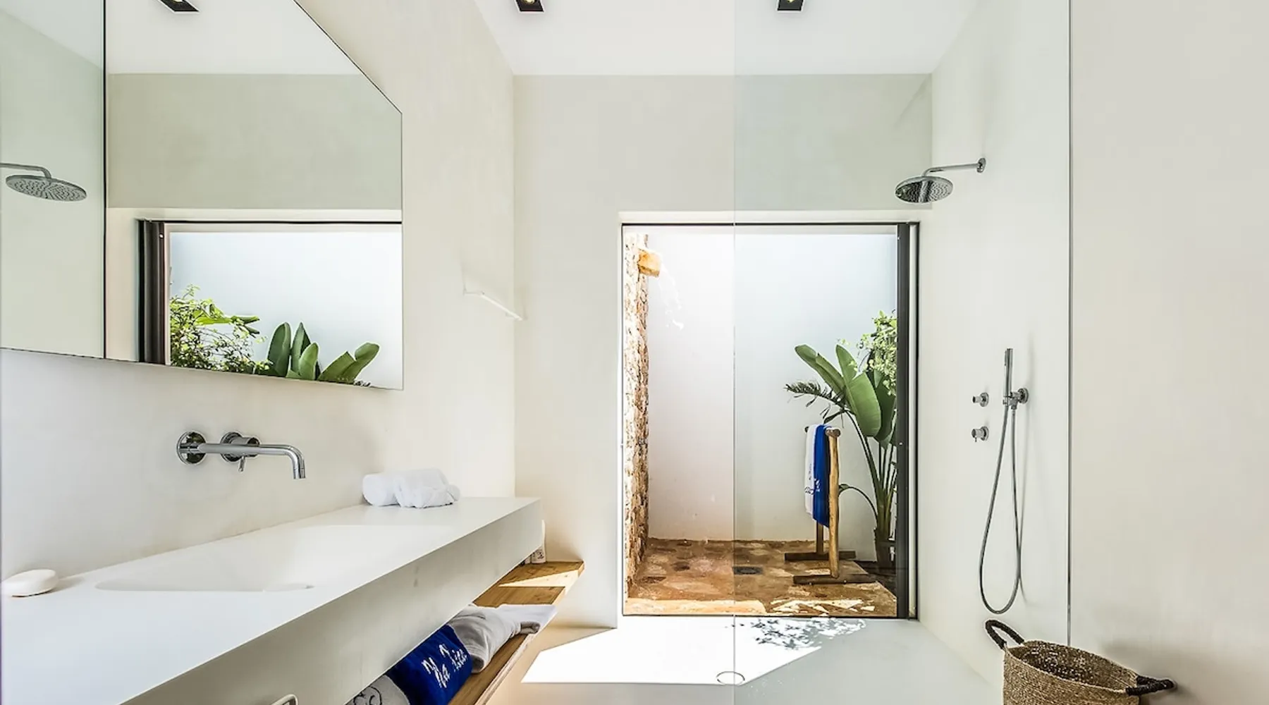 Set between San José and Cala Jondal, this secluded Ibizan property features modern architecture among palms and pines. A 25m heated infinity pool, fed by a private well, forms the centrepiece. Manicured grounds include a jacuzzi, pétanque pitch, outdoor cinema, and beach-style terrace with a bar. Inside, natural wood floors and contemporary design enhance en-suite bedrooms, each offering privacy and pool views. The space Privadia are proud to be an Airbnb Luxe Partner. As part of this partnership, all of our properties are individually inspected by Airbnb, ensuring authenticity and quality for all guests. Our relationship with Airbnb Luxe reflects our commitment to maintaining the highest standards across our portfolio of luxury villas. Located in a secluded area between San José and Cala Jondal, this contemporary Ibizan property combines modern design with a private, natural setting. Surrounded by mature pines and tall palms, the clean architectural lines of the villa are softened by the landscaped grounds, which include sculpted lawns and curated outdoor features. A 25-metre infinity pool sits at the heart of the property, drawing water from its own well and offering heating during cooler months (€300 per day). The pool is visible from all rooms and is bordered by loungers, shaded areas, and views through the trees to the Mediterranean. The outdoor spaces include a large jacuzzi for up to ten people, a pétanque pitch, contemporary sculpture installations, and an open-air cinema. A beach-style terrace set under the pines features white sand, a professional bar, and seating for up to 30 people. Additional outdoor dining and lounge areas are arranged across wide terraces and garden zones. Inside, the interiors are finished with natural wood flooring and modern fixtures, balancing a clean aesthetic with warmth and functionality. The layout ensures privacy for all sleeping areas, with every bedroom offering direct outdoor access and an en-suite bathroom. Sleeping Arrangements: - Master Suite Hastens king-size bed, fireplace, TV and Sonos music, air conditioning. En-suite bathroom with shower, bath and Hammam. Includes a private outdoor shower, access to the jacuzzi, and a private chill-out area. - Bedroom 2 King-size bed, TV and Sonos music, air conditioning, private outdoor shower and terrace, en-suite bathroom with shower. - Bedroom 3 King-size bed, TV and Sonos music, air conditioning, private terrace and outdoor shower, en-suite bathroom with shower. - Bedroom 4 King-size bed, TV and Sonos music, air conditioning, private terrace, en-suite bathroom with shower. - Bedroom 5 King-size bed, TV and Sonos music, air conditioning, private terrace and outdoor shower, en-suite bathroom with a bath. Kitchen Information: - Kitchen 1 – Fully equipped indoor kitchen Kitchen 2 – Outdoor kitchen suitable for catering and events Extra Cost: - Pool heating is available at €300 per day. Guest access Guests have full private access to the entire villa, including all indoor and outdoor spaces, the infinity pool, gardens, private terraces, and parking. Other things to note Please note that check-in is from 4 PM and check-out is by 10 AM, unless agreed otherwise in advance. The exact villa address will be shared 24 hours before arrival for security reasons. Full arrival instructions and access details will be provided closer to your check-in date via our Guest Experience team. We recommend hiring a car to make the most of your stay which we can help arrange. We also offer the option to pre-arrange a wide range of services to make your stay even more enjoyable – from boat rentals and private chefs to wellness sessions and grocery deliveries. Cleaning breakdown: 6 hours daily, 6 days per week Linen / Towel change - once per week. Live in couple help with cooking and driving. Registration Details Ibiza - Regional registration number ETV-2077-E