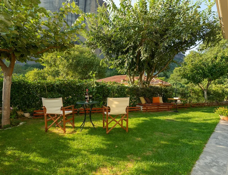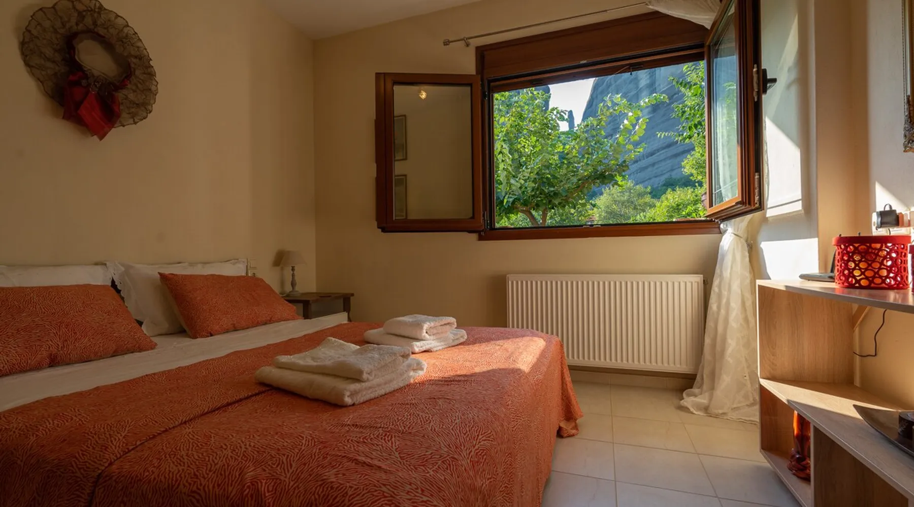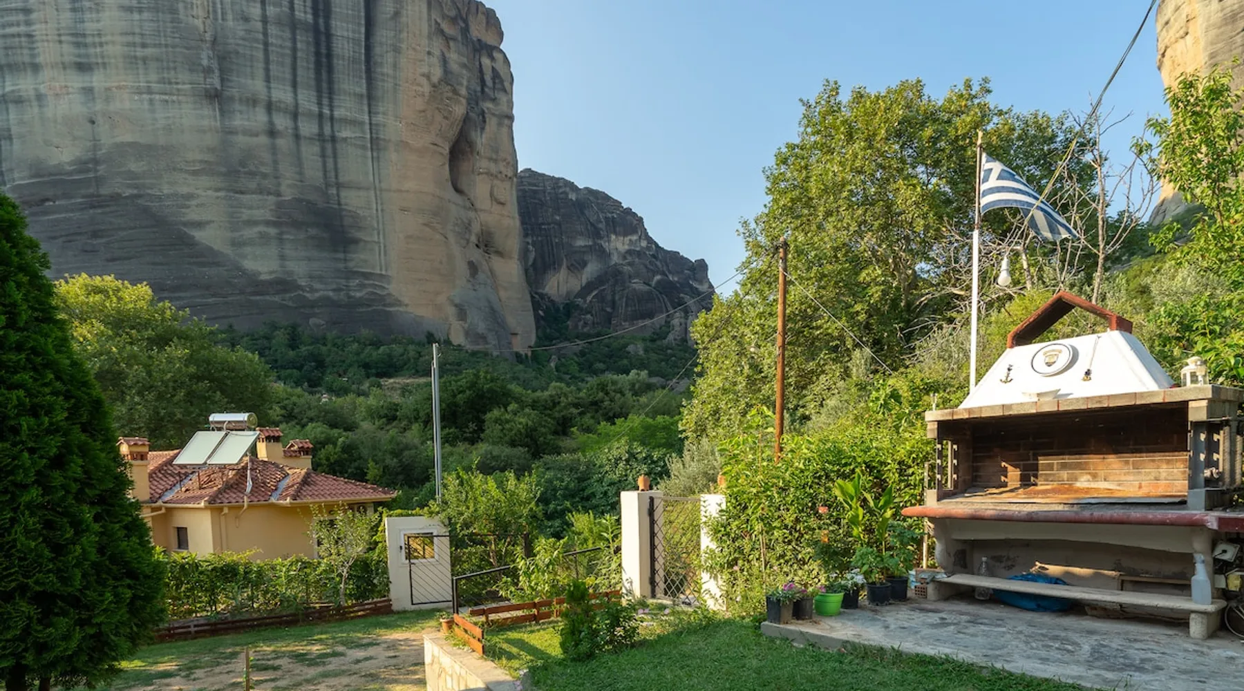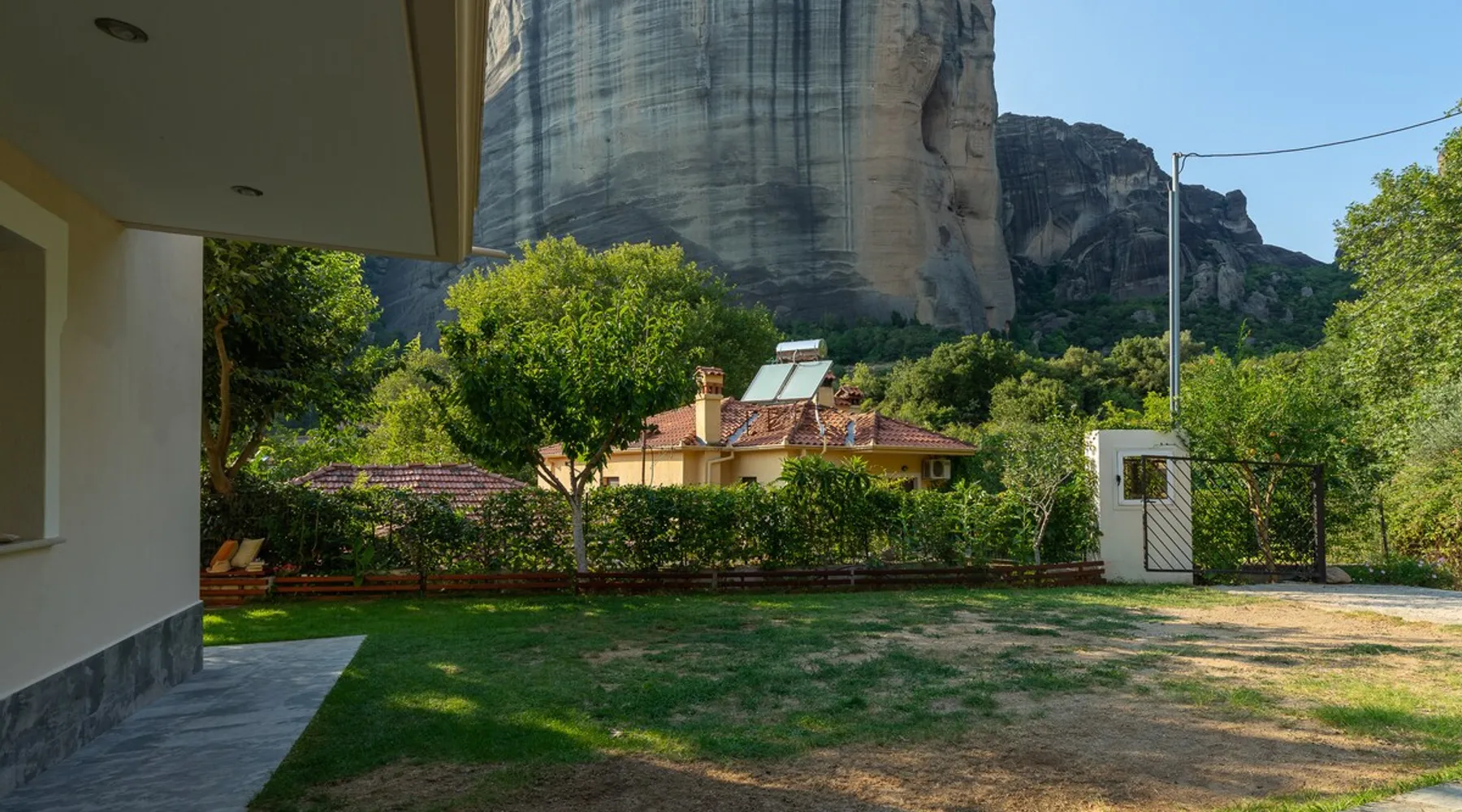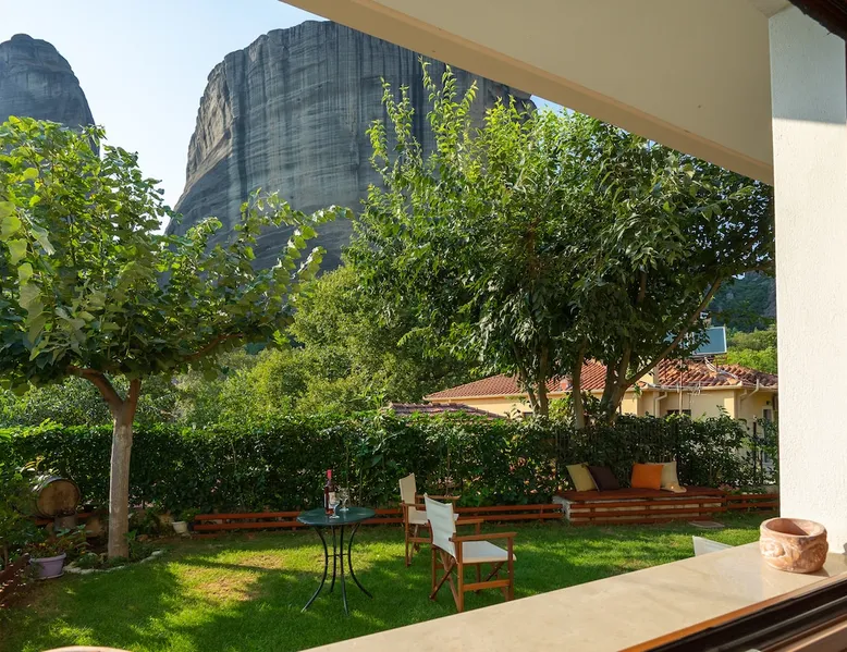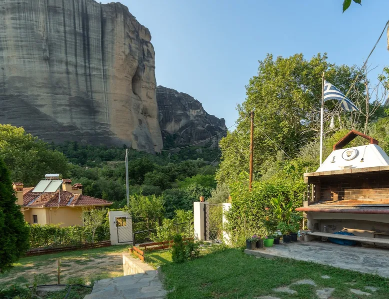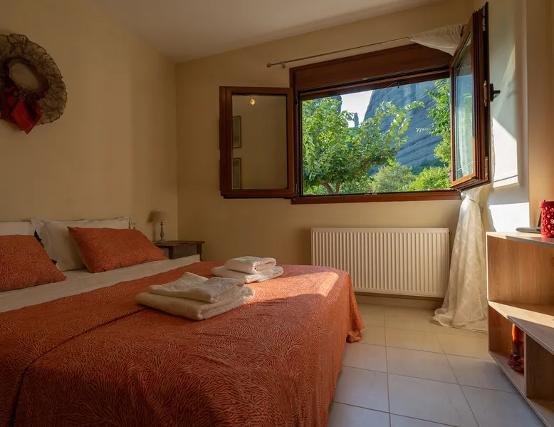 Meteora Nature sits at the foot of the Meteora in the midst of nature away from the sounds of the city, beneath the Agia Triada monastery. From the inside of the house the guest has the ability to see the cliff of Meteora . The visitor has the ability to enjoy breakfast with a panoramic view of the imposing cliffs of Meteora, with a special element of chirping birds and the sound of winds , creating an oasis of relaxation and connection with nature. The space The apartment is newly built, it consists of two bedrooms with double beds and bedside tables with lamps. One room has a closet and the other dresser. The living room with kitchen is open plan and has a living and sofa and work desk. The kitchen is equipped with an oven, microwave, toaster, kettle, coffee maker. In the outdoor area there is a table and a rest sofa. The house maintains a very cool temperature throughout summer. Guest access Guests will have access to all rooms. Registration Details 00000098940