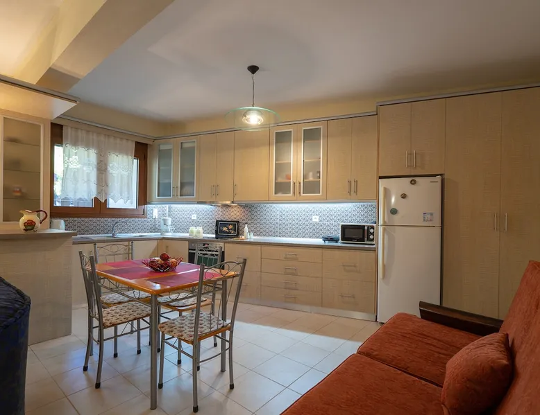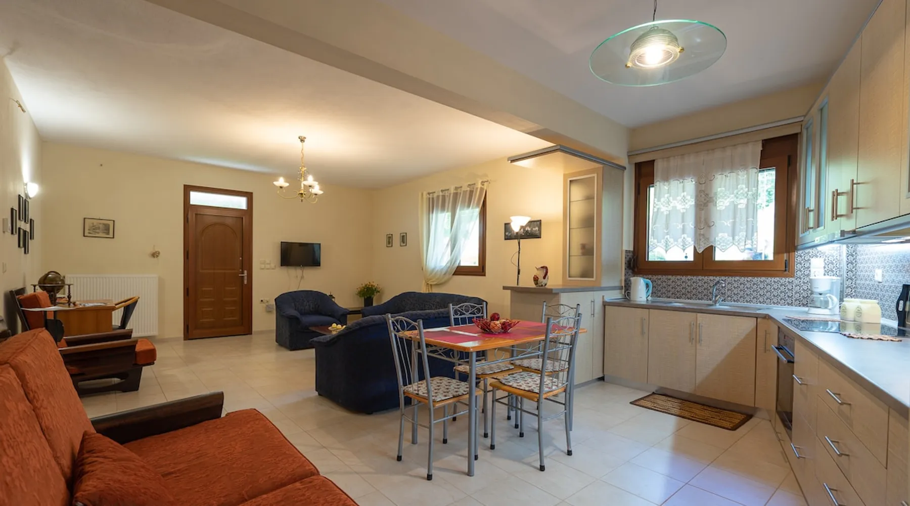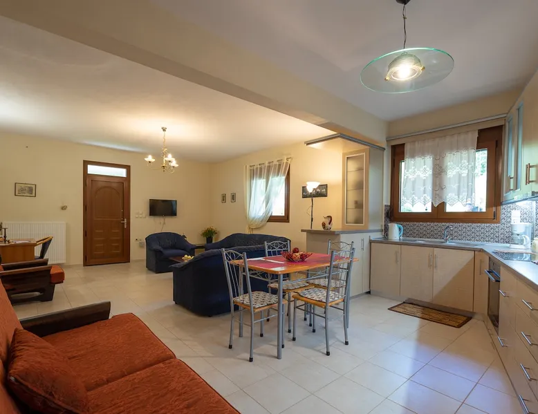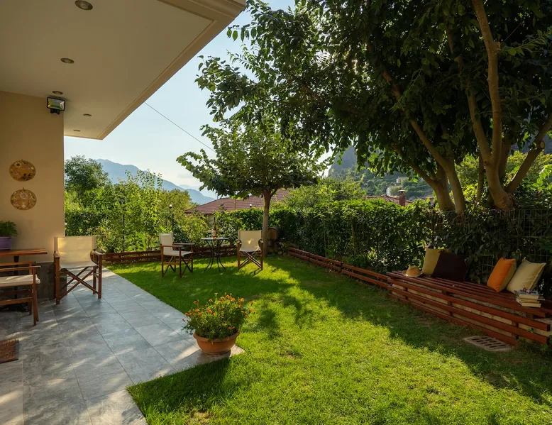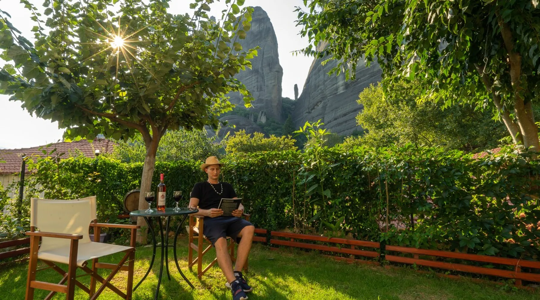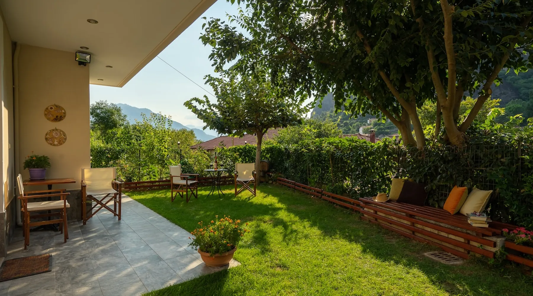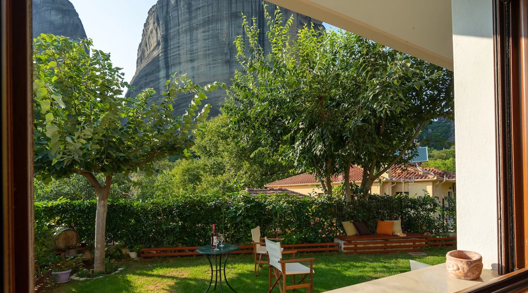 Meteora Nature sits at the foot of the Meteora in the midst of nature away from the sounds of the city, beneath the Agia Triada monastery. From the inside of the house the guest has the ability to see the cliff of Meteora . The visitor has the ability to enjoy breakfast with a panoramic view of the imposing cliffs of Meteora, with a special element of chirping birds and the sound of winds , creating an oasis of relaxation and connection with nature. The space The apartment is newly built, it consists of two bedrooms with double beds and bedside tables with lamps. One room has a closet and the other dresser. The living room with kitchen is open plan and has a living and sofa and work desk. The kitchen is equipped with an oven, microwave, toaster, kettle, coffee maker. In the outdoor area there is a table and a rest sofa. The house maintains a very cool temperature throughout summer. Guest access Guests will have access to all rooms. Registration Details 00000098940