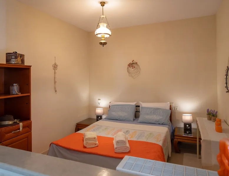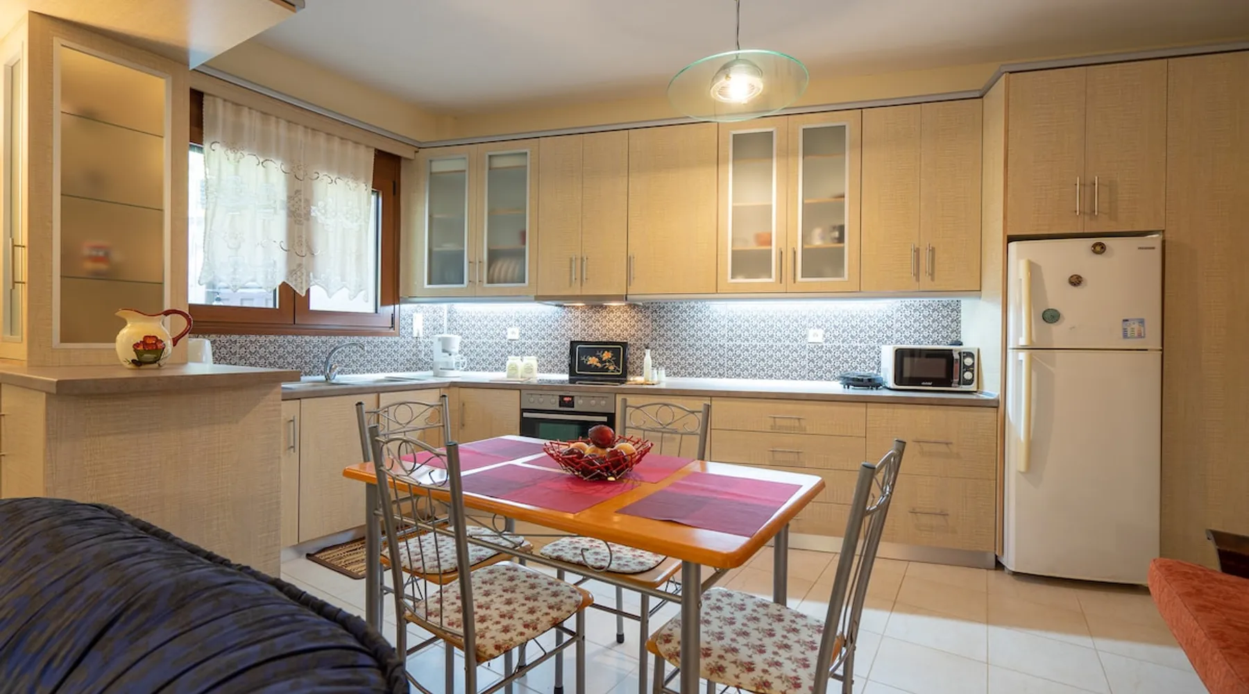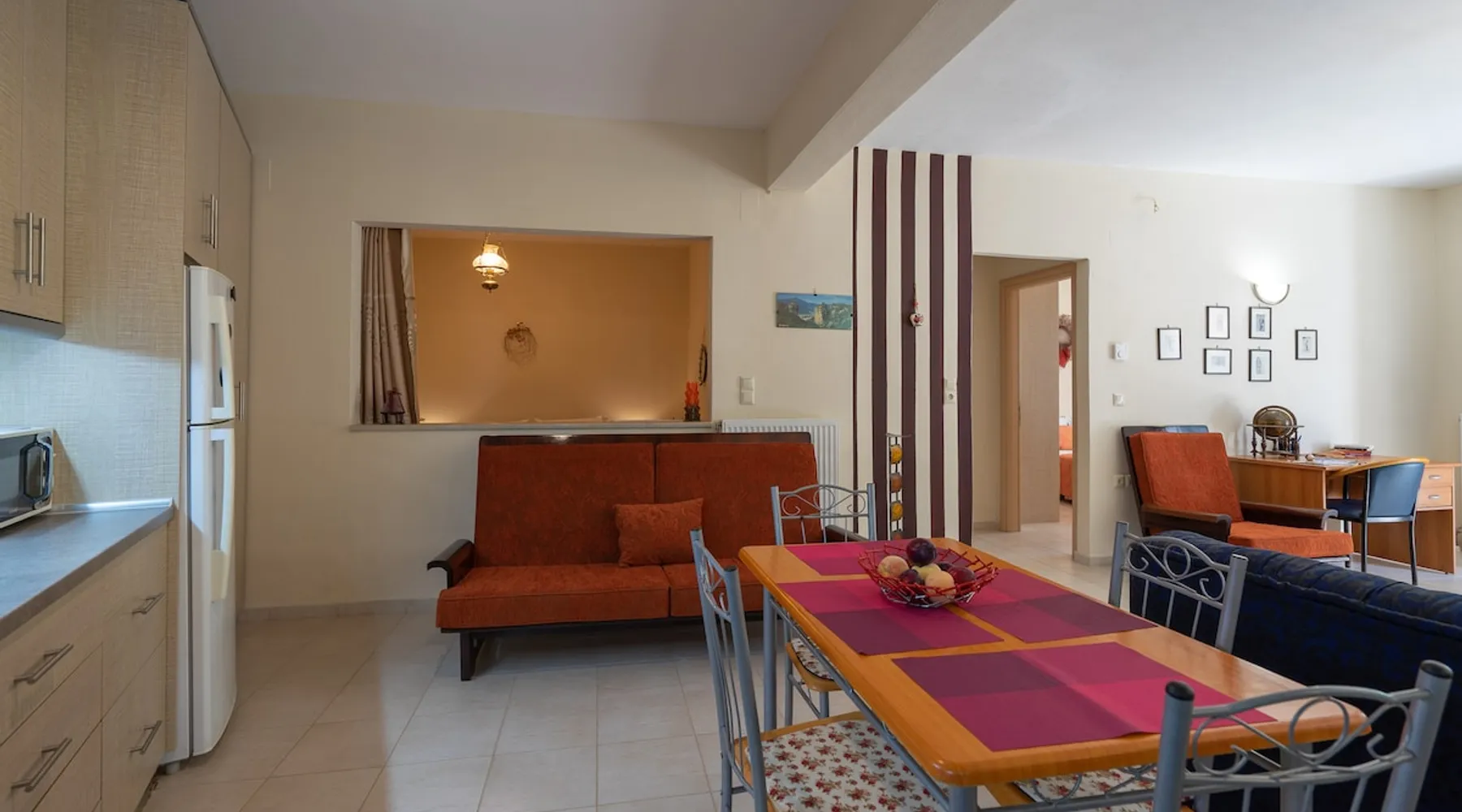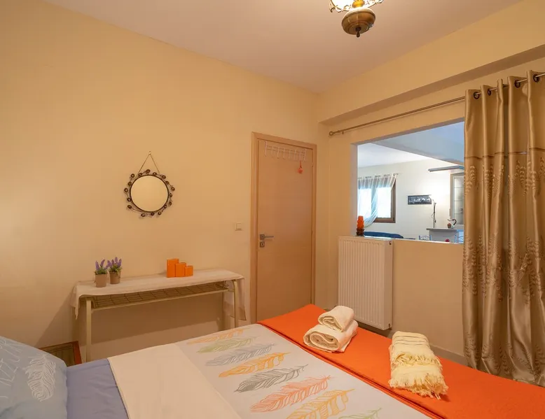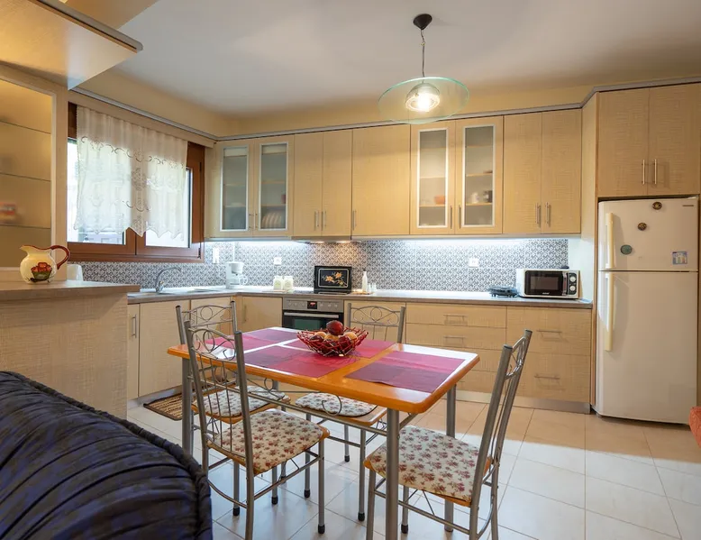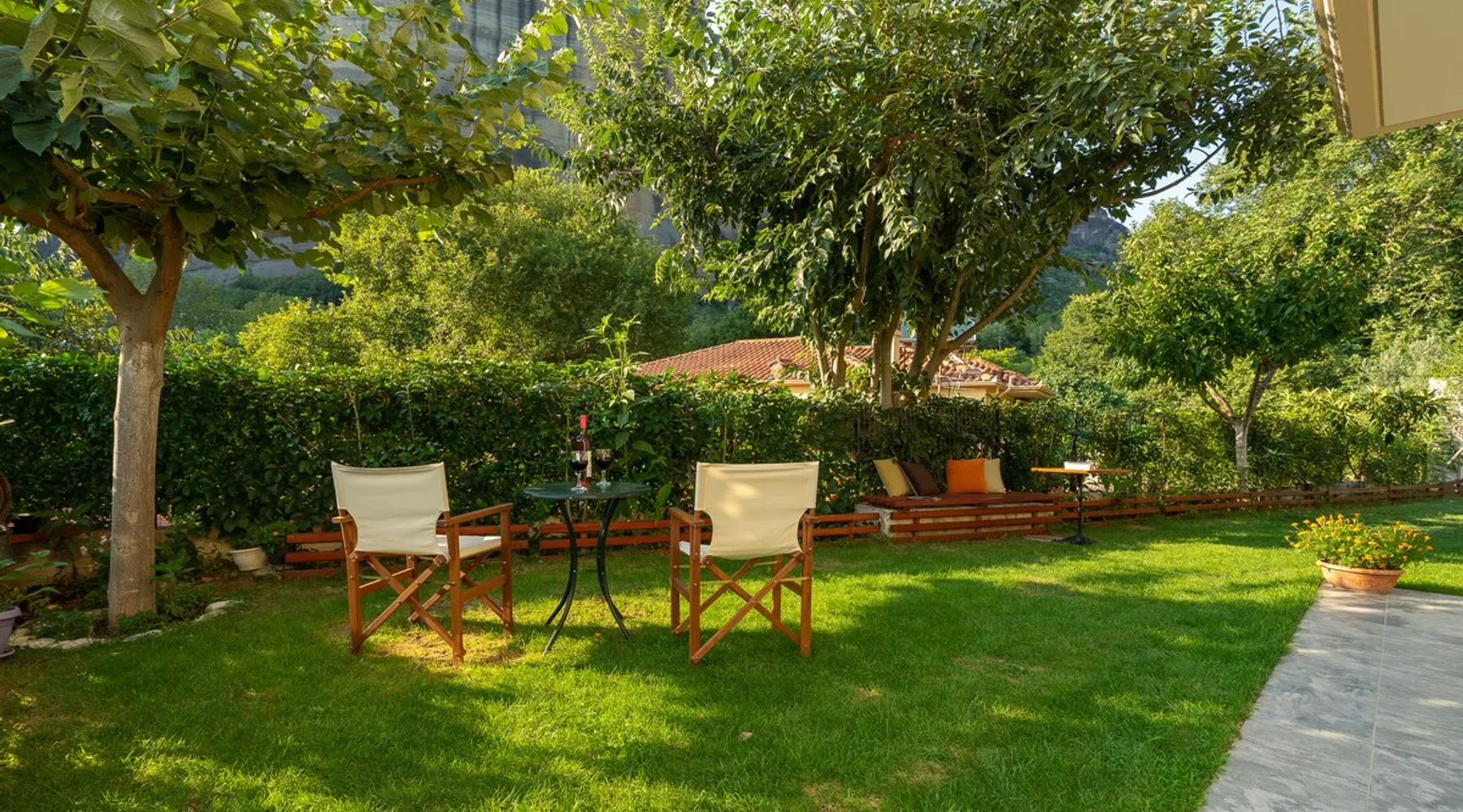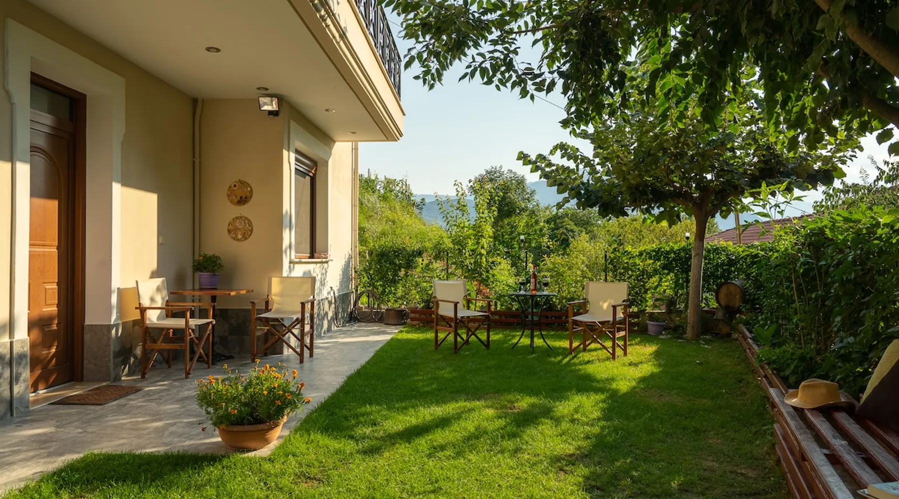 Meteora Nature sits at the foot of the Meteora in the midst of nature away from the sounds of the city, beneath the Agia Triada monastery. From the inside of the house the guest has the ability to see the cliff of Meteora . The visitor has the ability to enjoy breakfast with a panoramic view of the imposing cliffs of Meteora, with a special element of chirping birds and the sound of winds , creating an oasis of relaxation and connection with nature. The space The apartment is newly built, it consists of two bedrooms with double beds and bedside tables with lamps. One room has a closet and the other dresser. The living room with kitchen is open plan and has a living and sofa and work desk. The kitchen is equipped with an oven, microwave, toaster, kettle, coffee maker. In the outdoor area there is a table and a rest sofa. The house maintains a very cool temperature throughout summer. Guest access Guests will have access to all rooms. Registration Details 00000098940