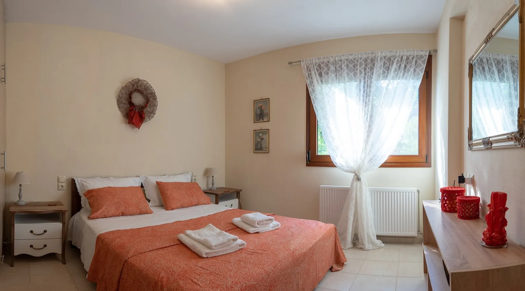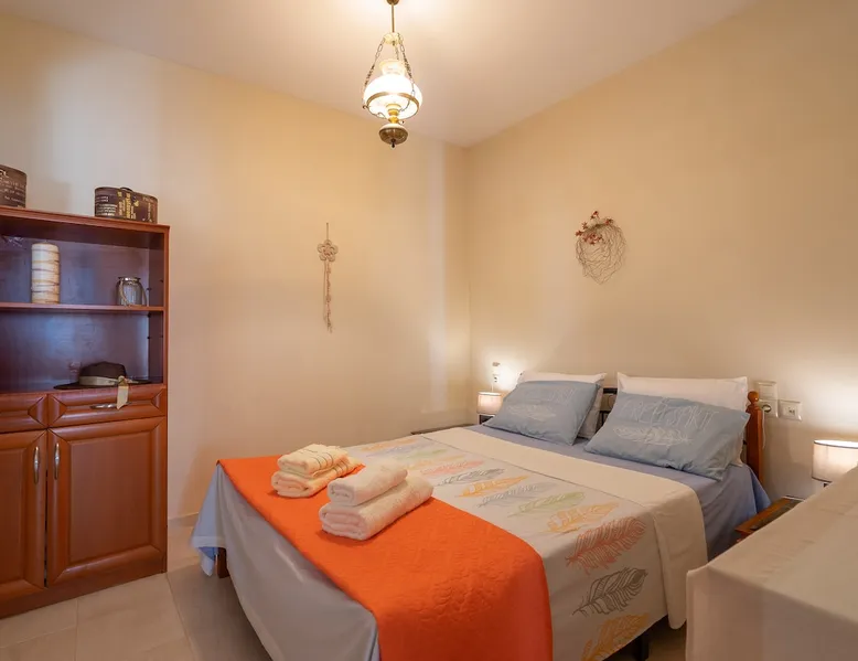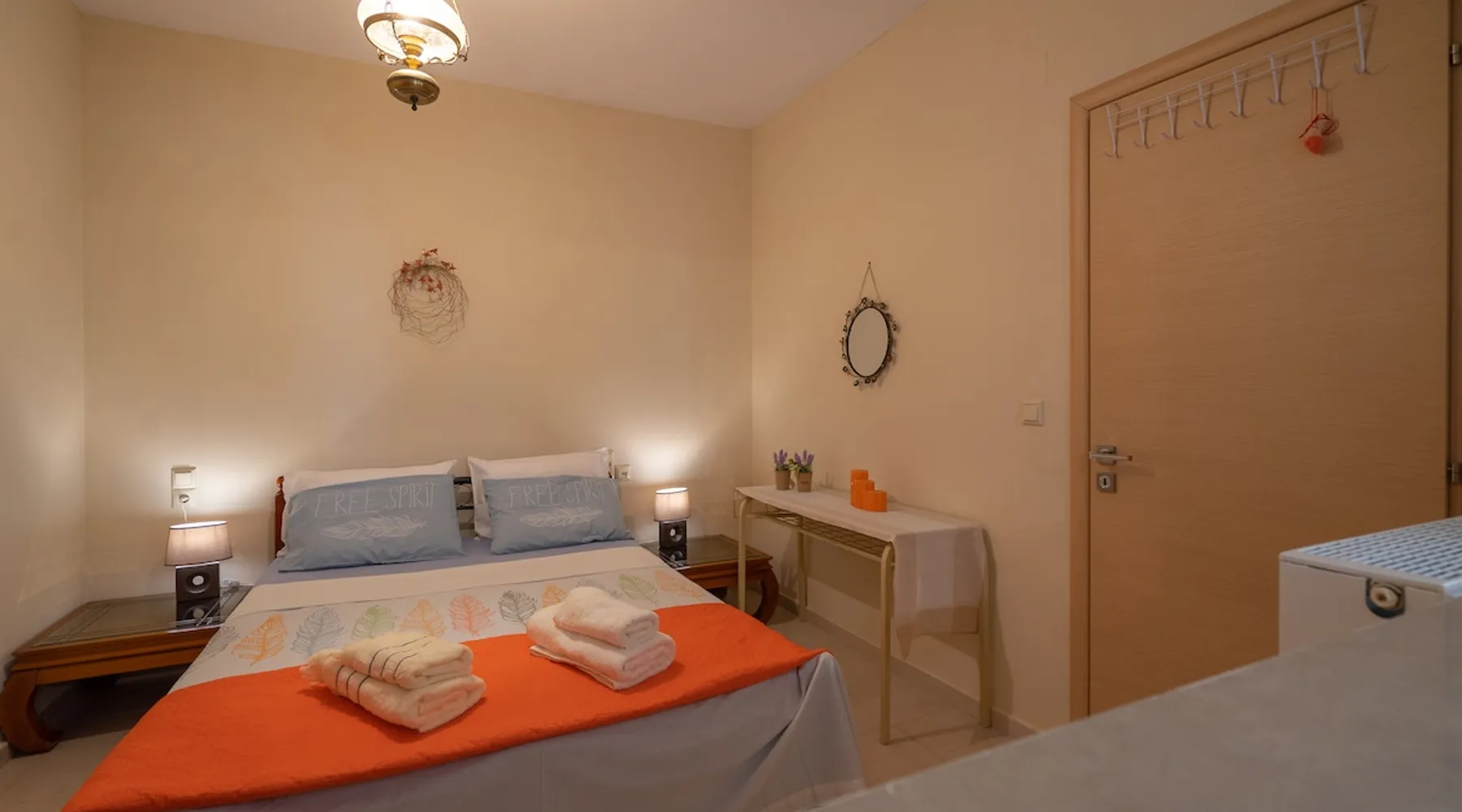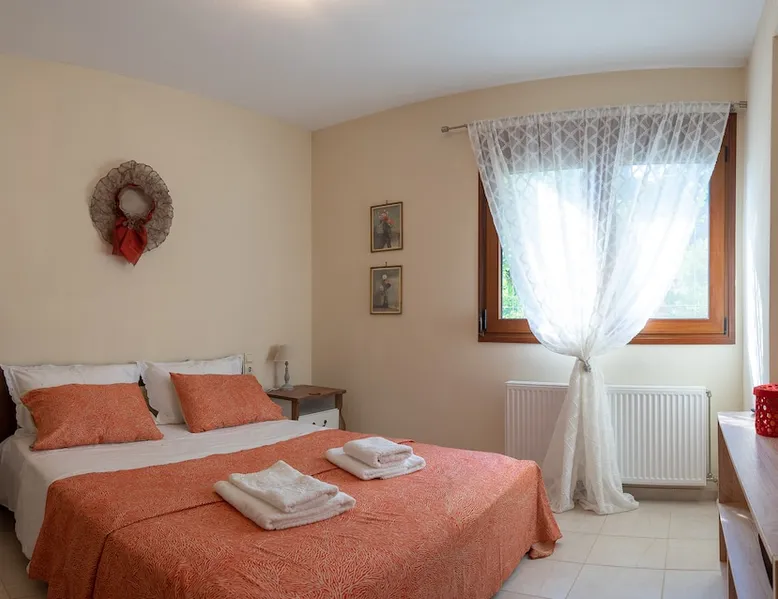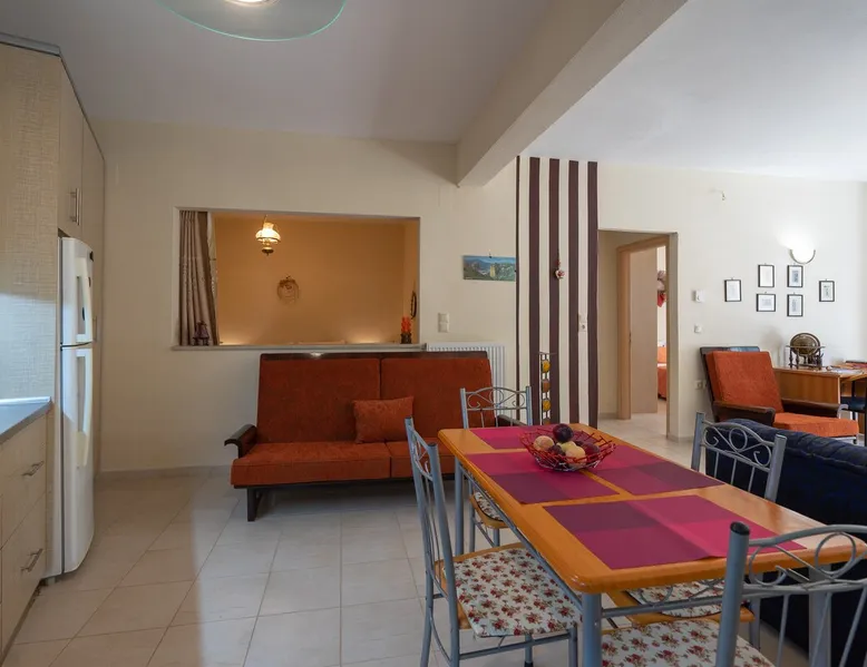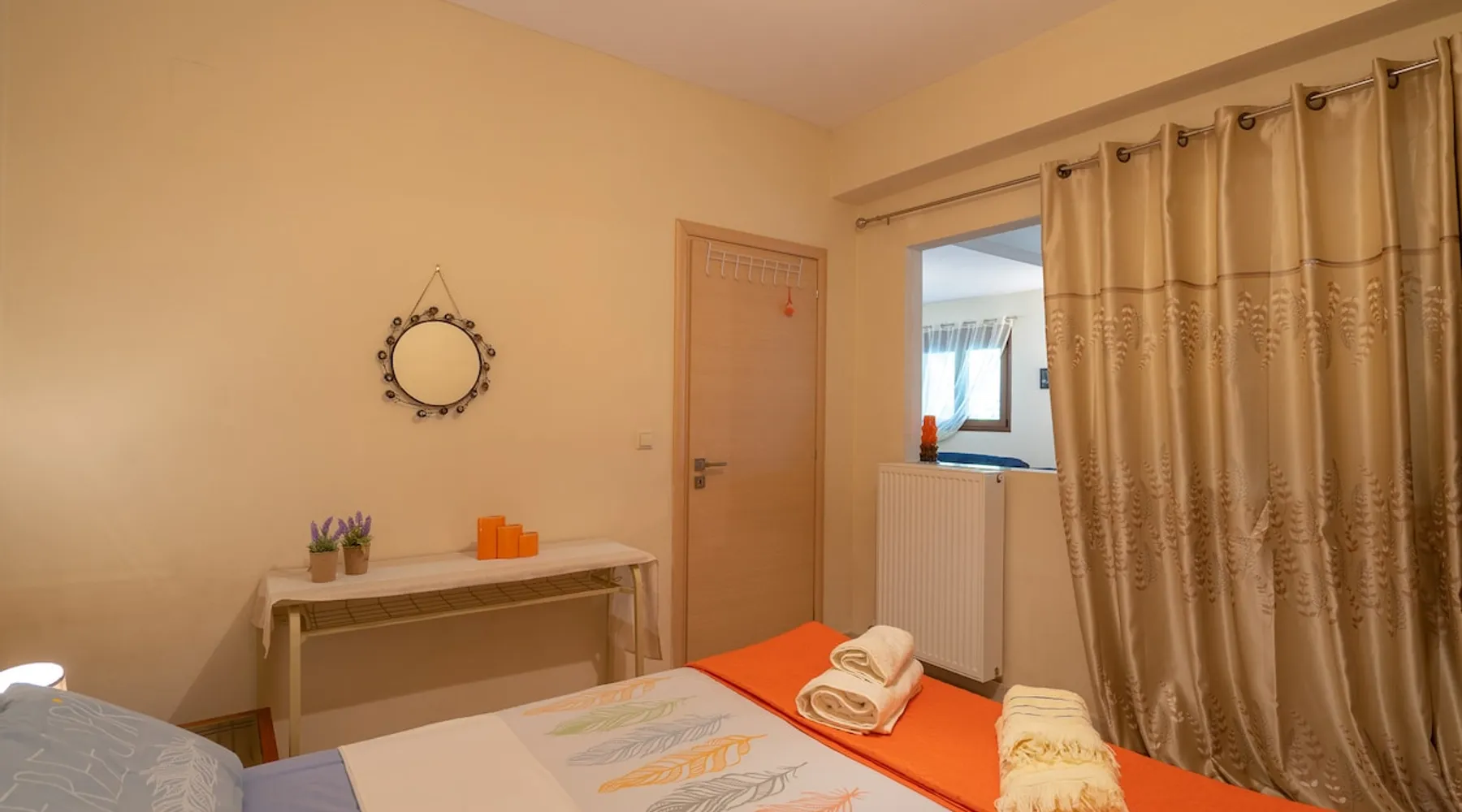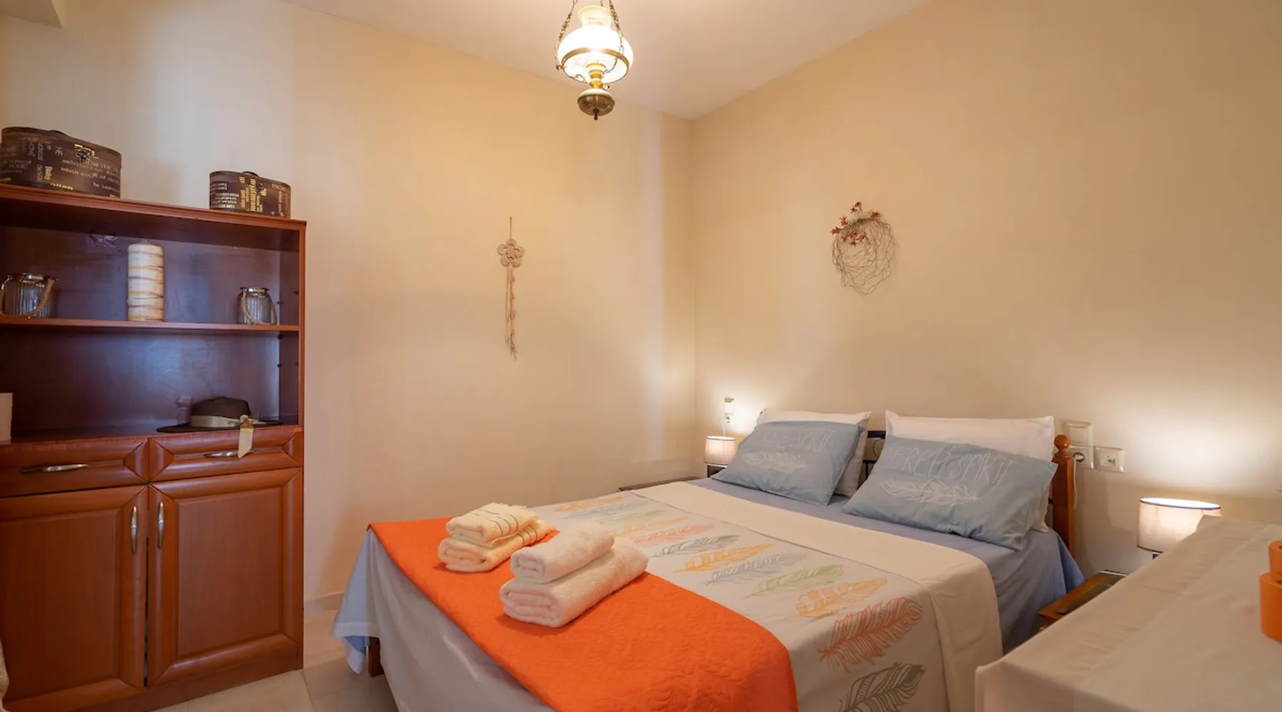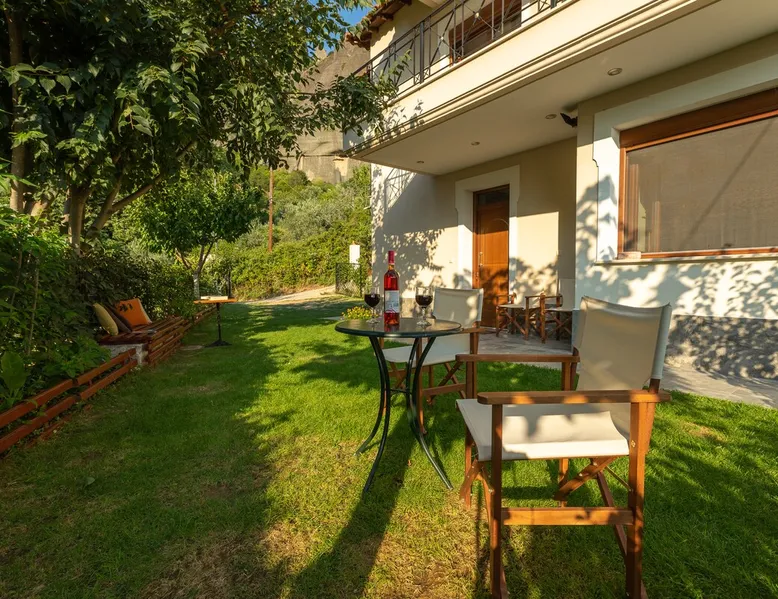 Meteora Nature sits at the foot of the Meteora in the midst of nature away from the sounds of the city, beneath the Agia Triada monastery. From the inside of the house the guest has the ability to see the cliff of Meteora . The visitor has the ability to enjoy breakfast with a panoramic view of the imposing cliffs of Meteora, with a special element of chirping birds and the sound of winds , creating an oasis of relaxation and connection with nature. The space The apartment is newly built, it consists of two bedrooms with double beds and bedside tables with lamps. One room has a closet and the other dresser. The living room with kitchen is open plan and has a living and sofa and work desk. The kitchen is equipped with an oven, microwave, toaster, kettle, coffee maker. In the outdoor area there is a table and a rest sofa. The house maintains a very cool temperature throughout summer. Guest access Guests will have access to all rooms. Registration Details 00000098940
