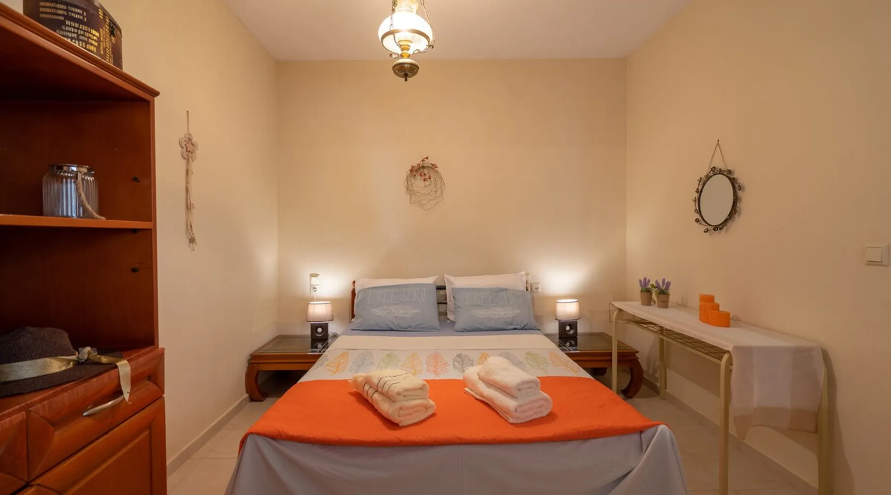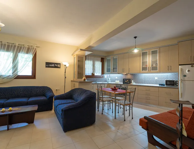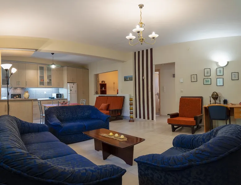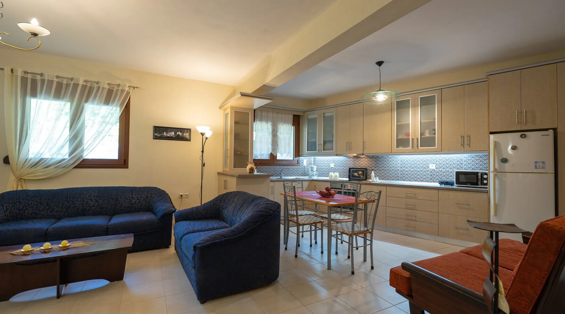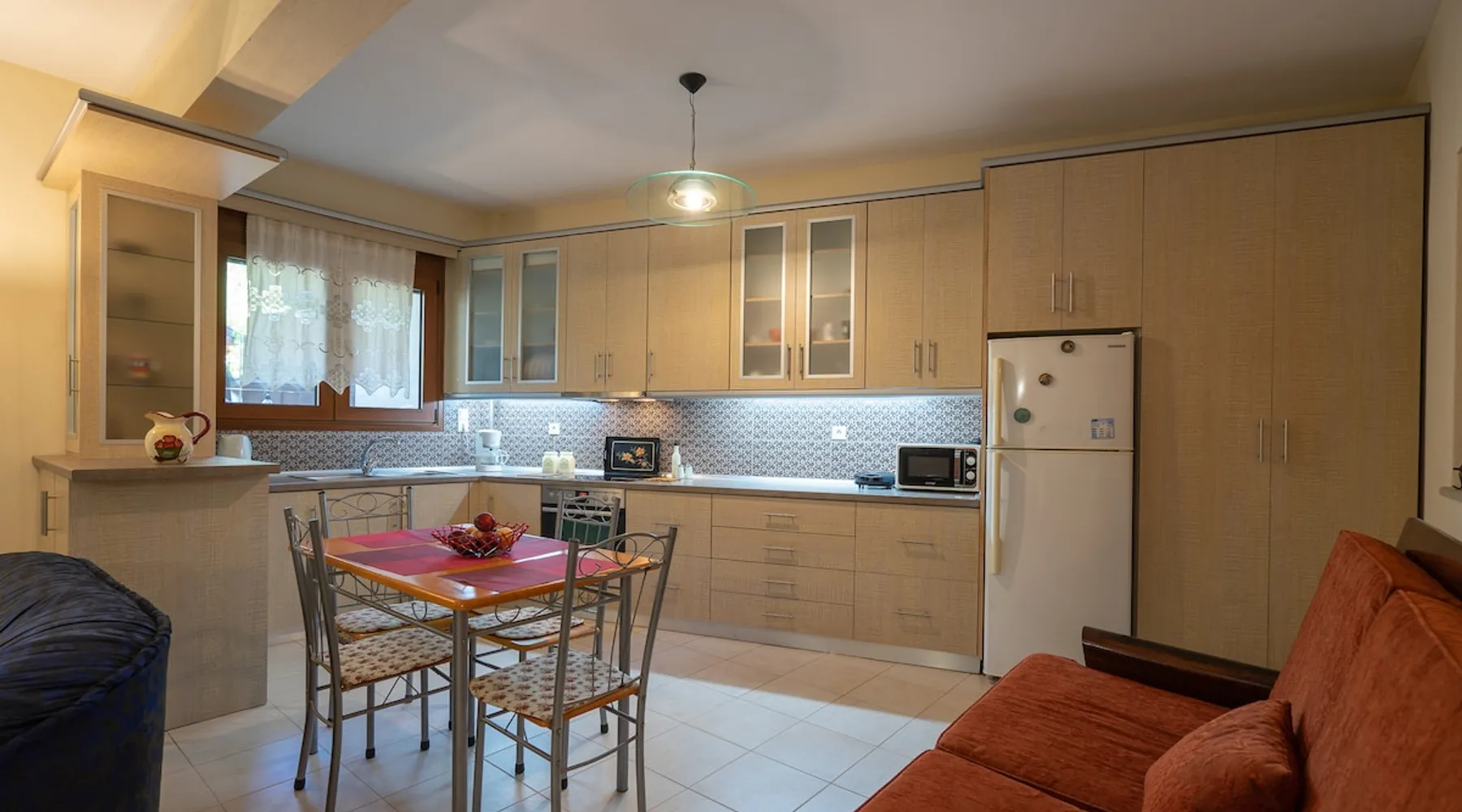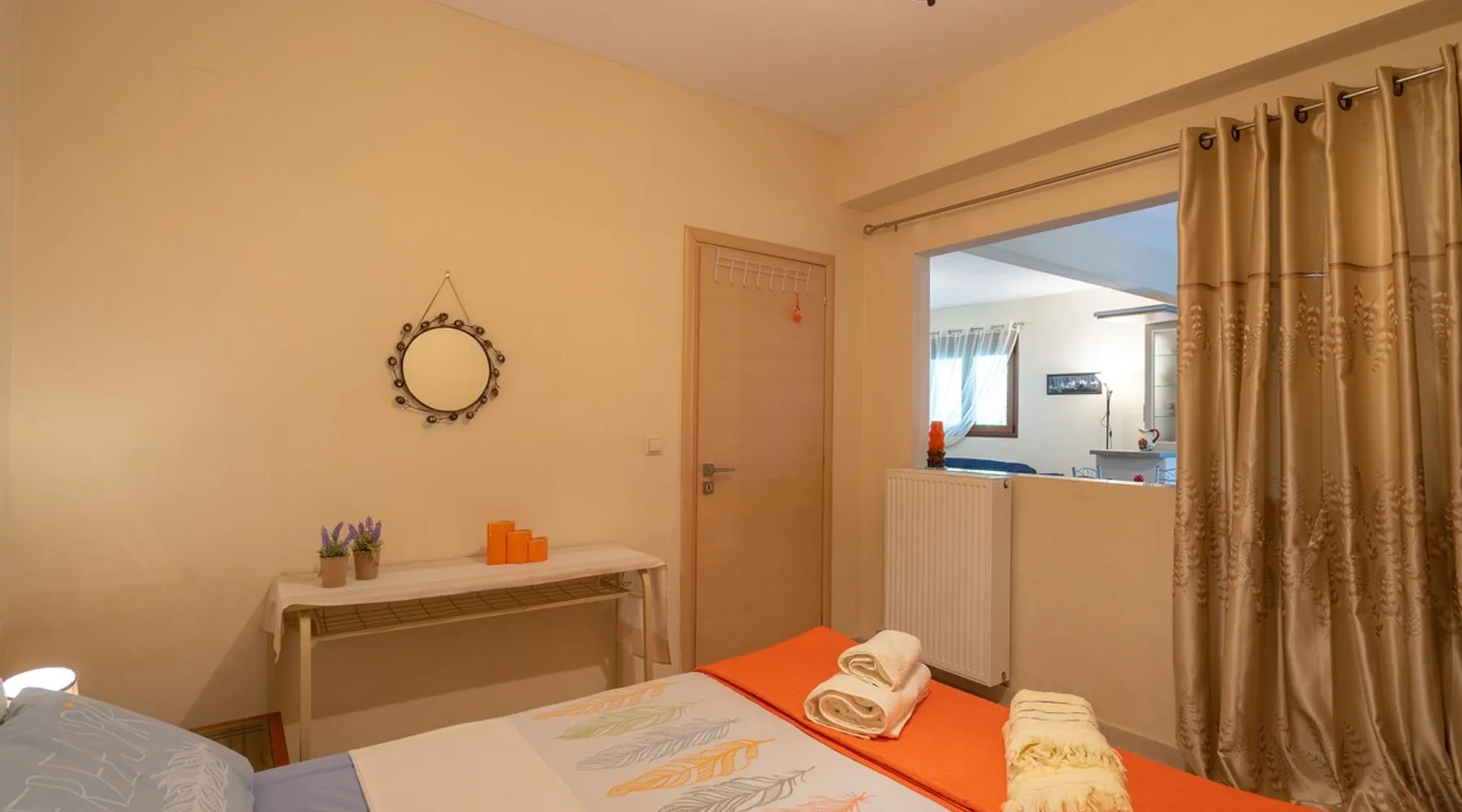 Meteora Nature sits at the foot of the Meteora in the midst of nature away from the sounds of the city, beneath the Agia Triada monastery. From the inside of the house the guest has the ability to see the cliff of Meteora . The visitor has the ability to enjoy breakfast with a panoramic view of the imposing cliffs of Meteora, with a special element of chirping birds and the sound of winds , creating an oasis of relaxation and connection with nature. The space The apartment is newly built, it consists of two bedrooms with double beds and bedside tables with lamps. One room has a closet and the other dresser. The living room with kitchen is open plan and has a living and sofa and work desk. The kitchen is equipped with an oven, microwave, toaster, kettle, coffee maker. In the outdoor area there is a table and a rest sofa. The house maintains a very cool temperature throughout summer. Guest access Guests will have access to all rooms. Registration Details 00000098940