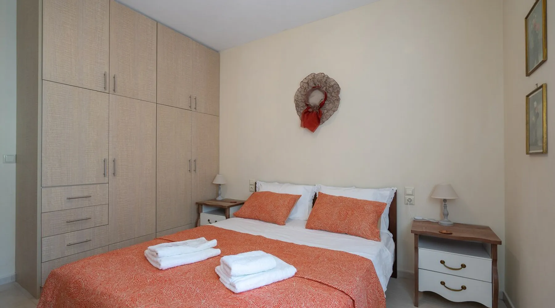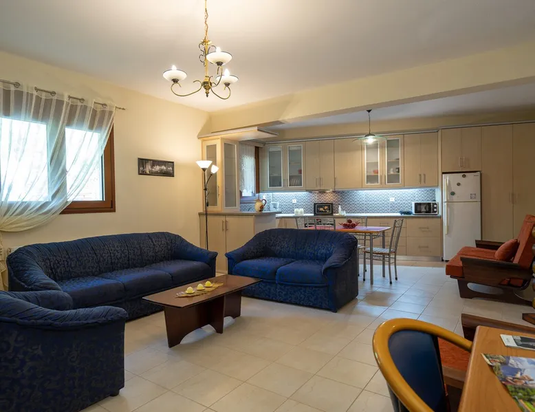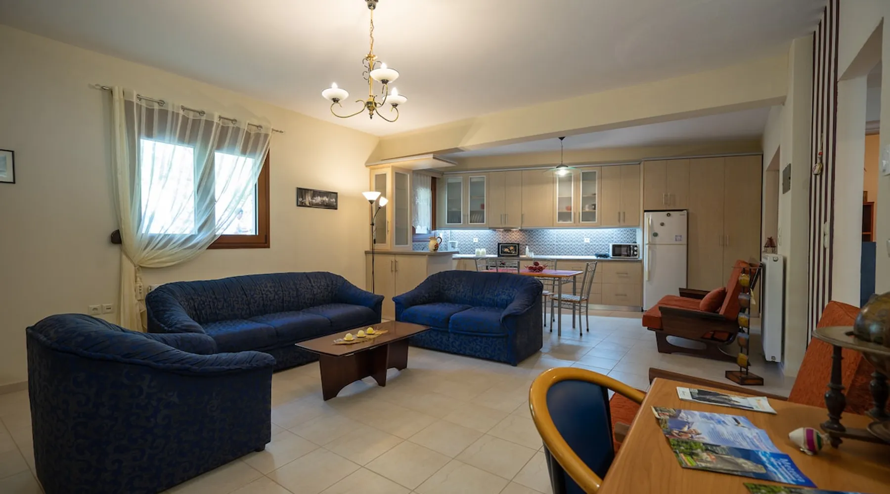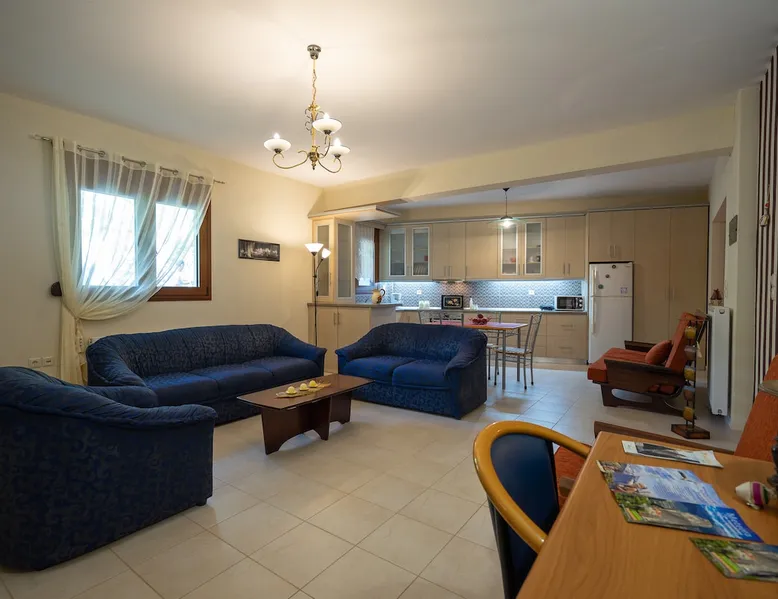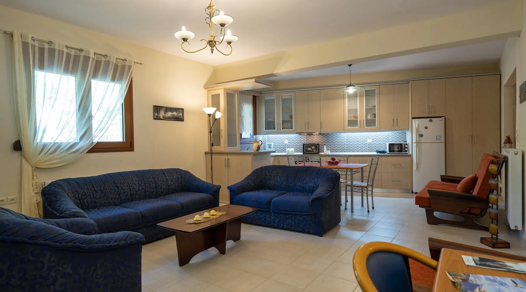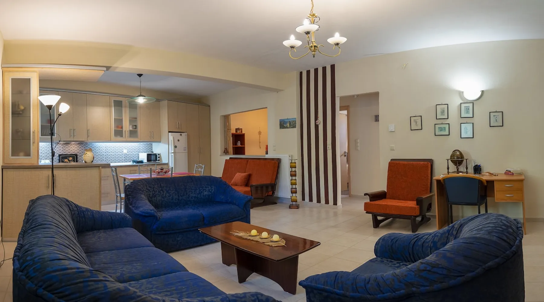 Meteora Nature sits at the foot of the Meteora in the midst of nature away from the sounds of the city, beneath the Agia Triada monastery. From the inside of the house the guest has the ability to see the cliff of Meteora . The visitor has the ability to enjoy breakfast with a panoramic view of the imposing cliffs of Meteora, with a special element of chirping birds and the sound of winds , creating an oasis of relaxation and connection with nature. The space The apartment is newly built, it consists of two bedrooms with double beds and bedside tables with lamps. One room has a closet and the other dresser. The living room with kitchen is open plan and has a living and sofa and work desk. The kitchen is equipped with an oven, microwave, toaster, kettle, coffee maker. In the outdoor area there is a table and a rest sofa. The house maintains a very cool temperature throughout summer. Guest access Guests will have access to all rooms. Registration Details 00000098940